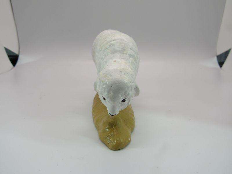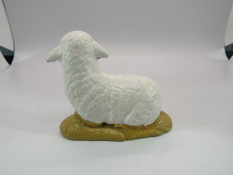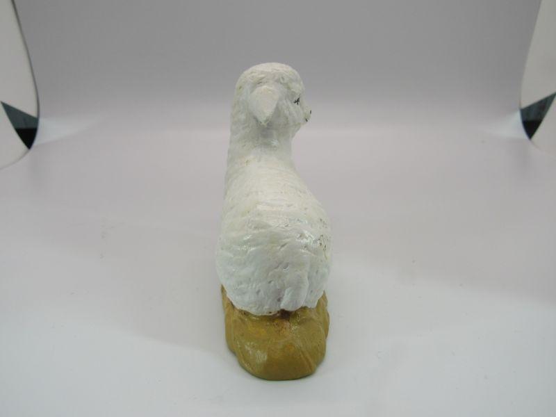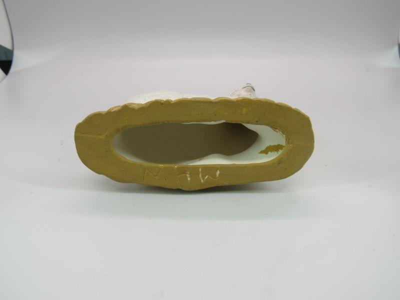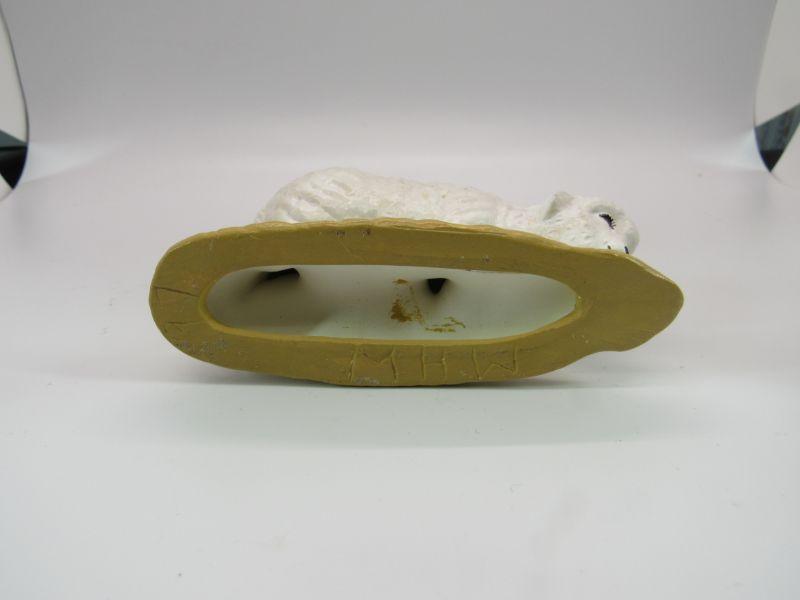 Pair of white lamb figurines. Ceramic figurines are hollow. One standing on laying down. Initials MHW on the bottom. Good condition. #499a36