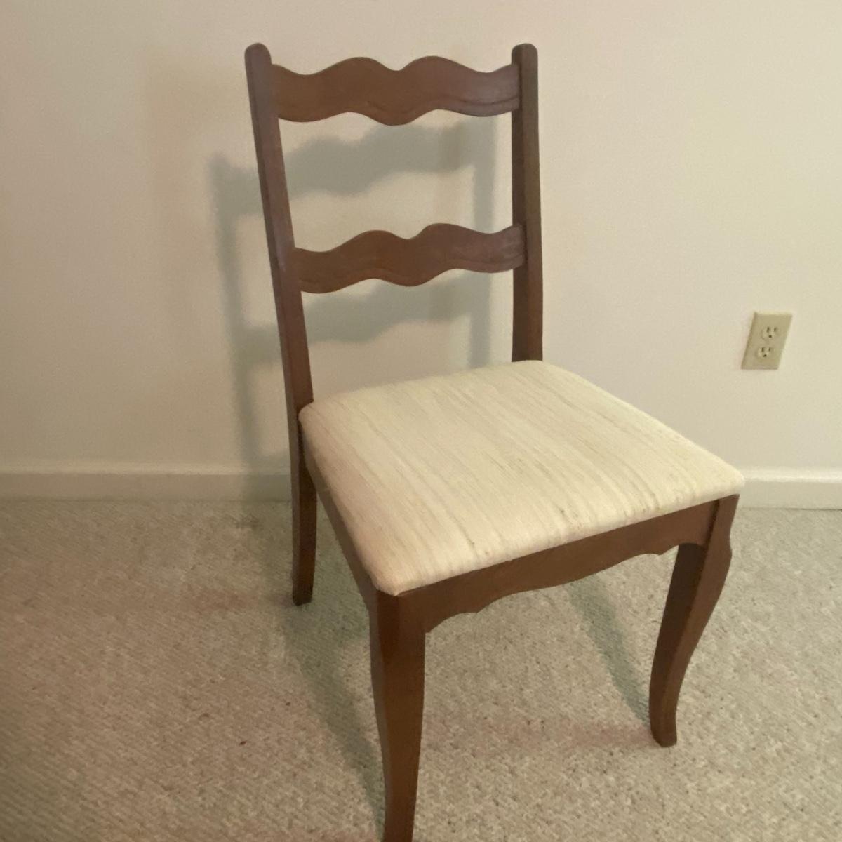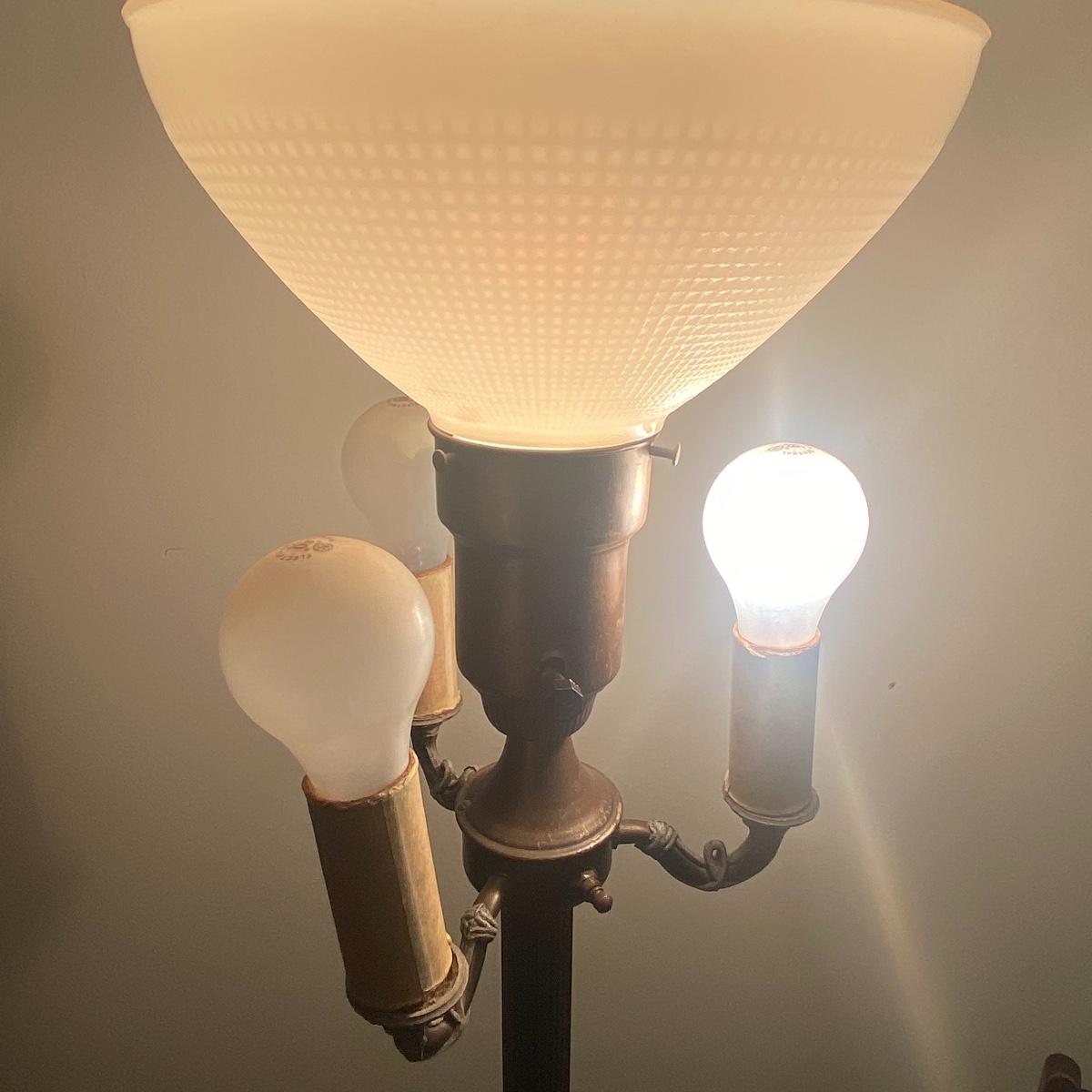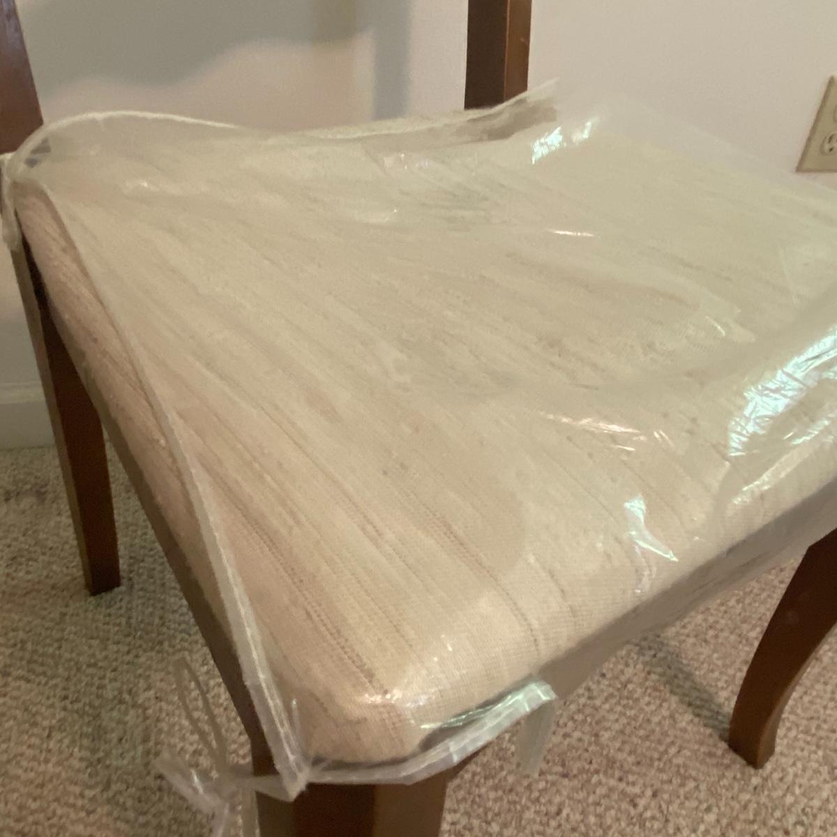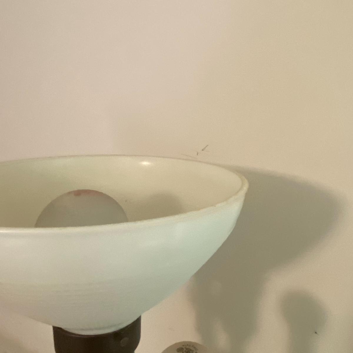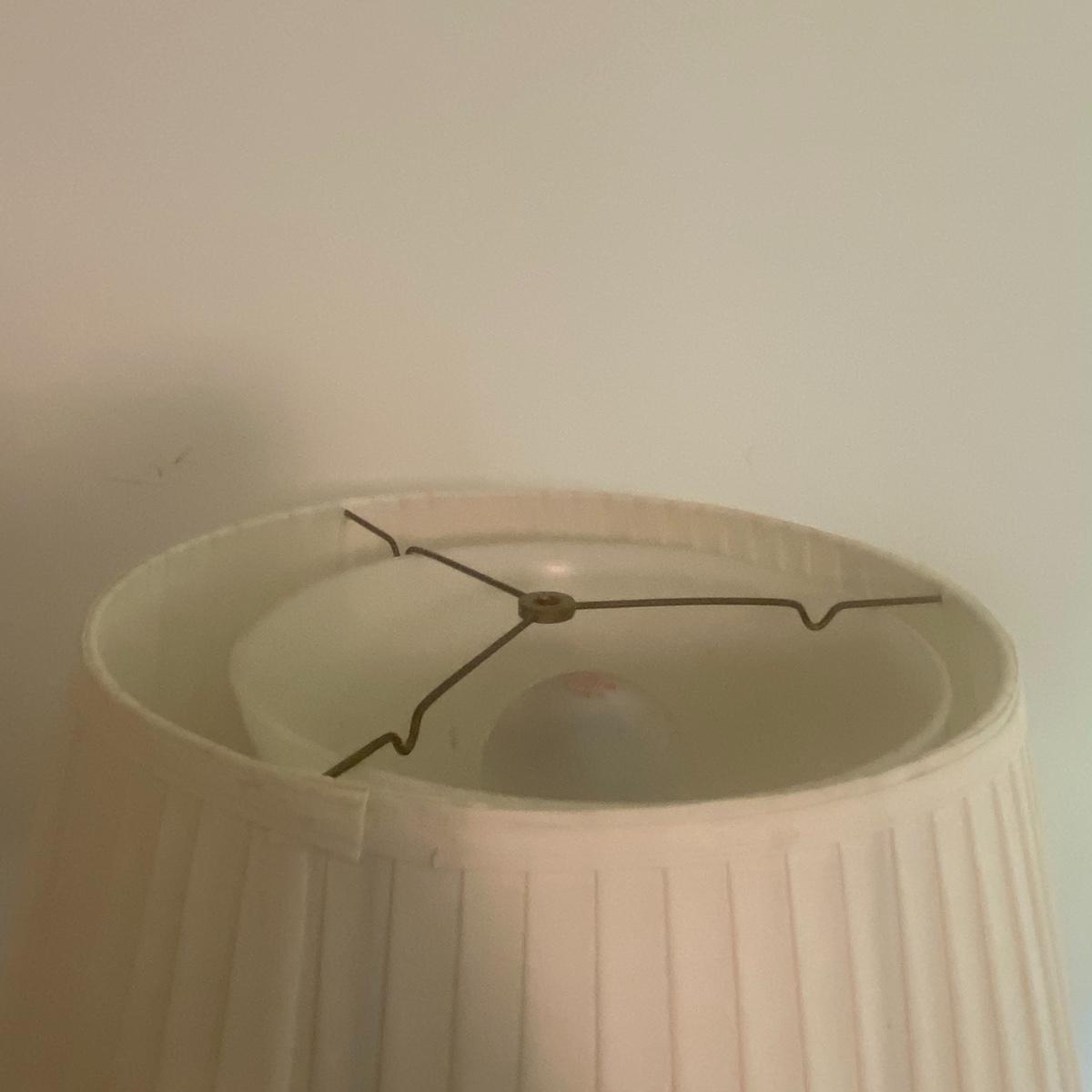 This lot includes a unique floor lamp with different lighting settings for any preference! Lamp includes large white shade. See photos. Lamp stands 61.5” tall. Two dining chairs match with cute curved wooden designs. Matching seat padding as well, one chair includes plastic seat cover. See photos. Measurements for the chairs are 18”x16”x17”. Including the back, chairs stand 32.5” tall. Local pickup only.