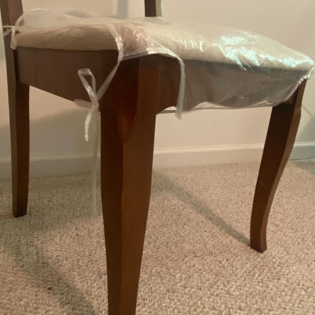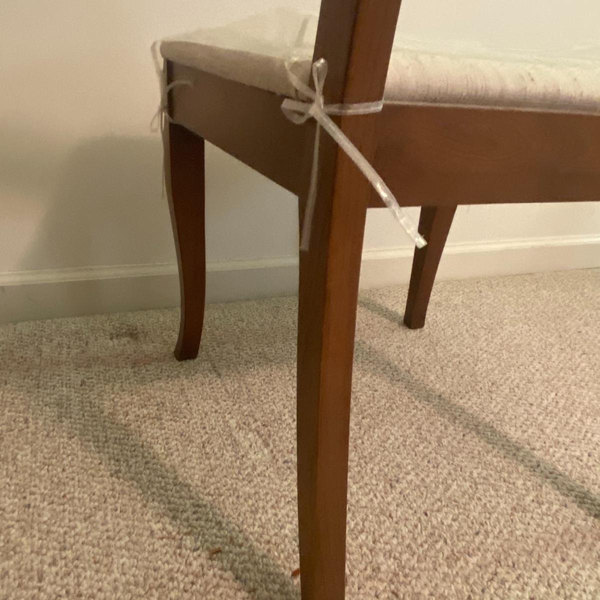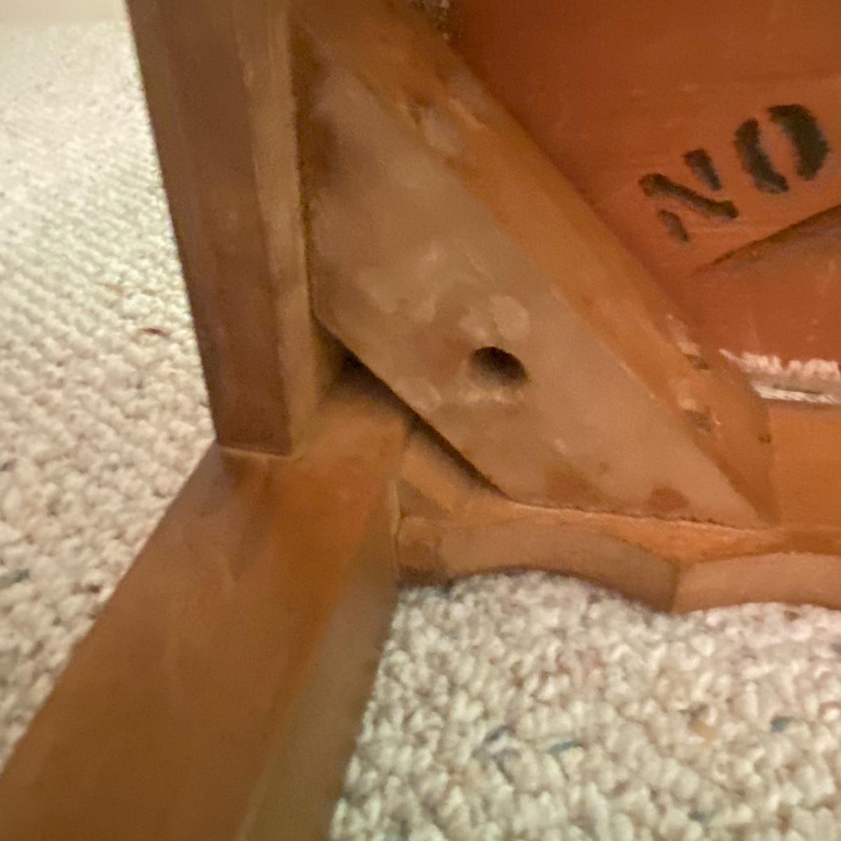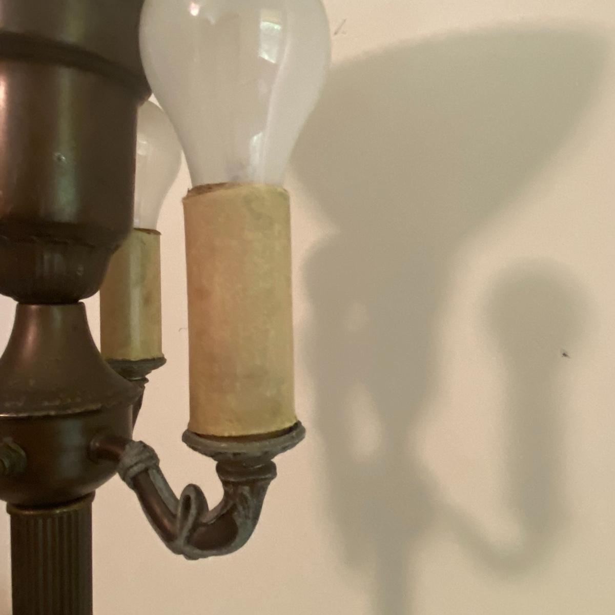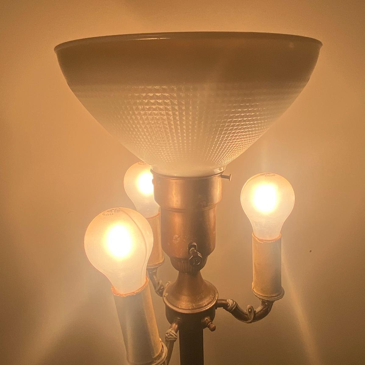 This lot includes a unique floor lamp with different lighting settings for any preference! Lamp includes large white shade. See photos. Lamp stands 61.5” tall. Two dining chairs match with cute curved wooden designs. Matching seat padding as well, one chair includes plastic seat cover. See photos. Measurements for the chairs are 18”x16”x17”. Including the back, chairs stand 32.5” tall. Local pickup only.