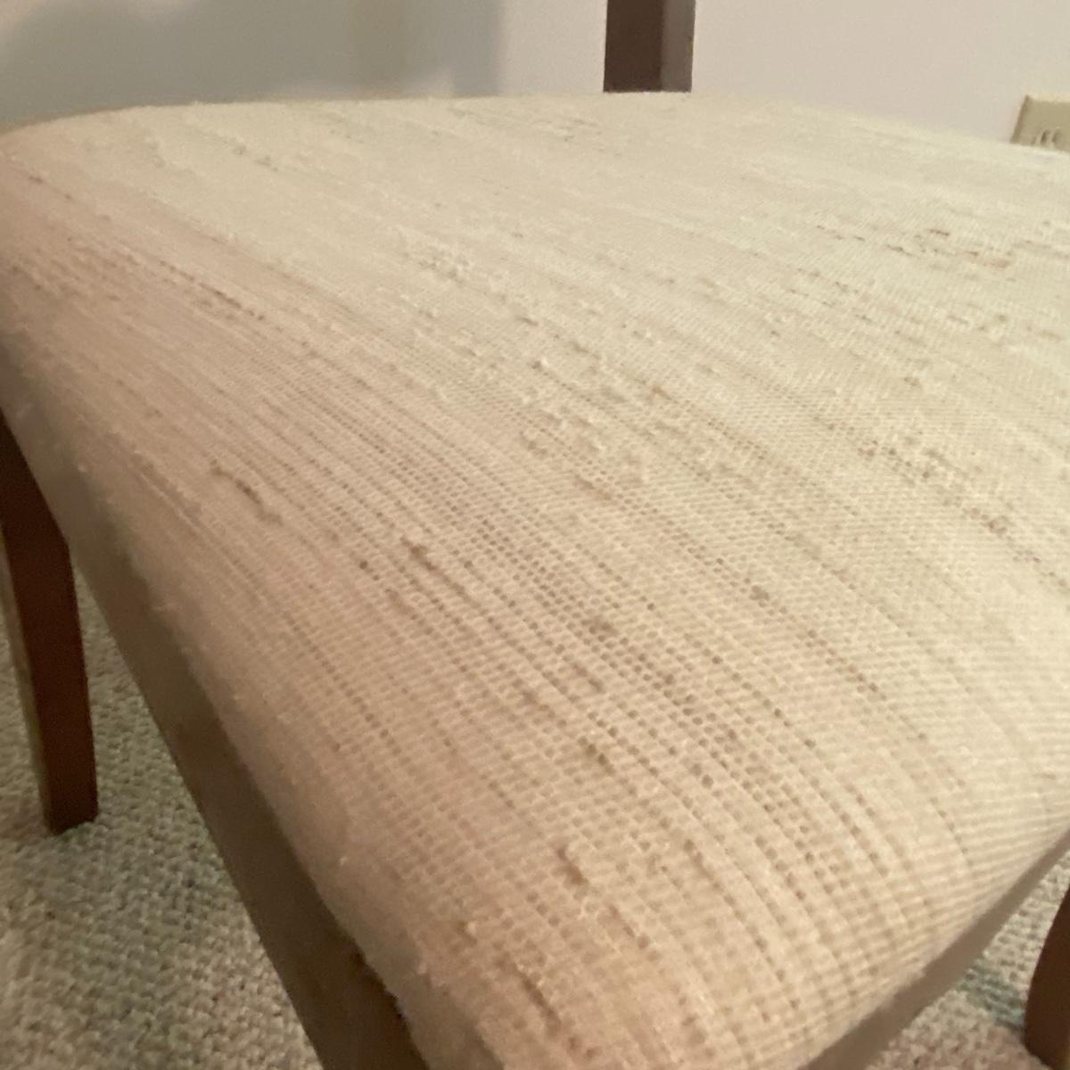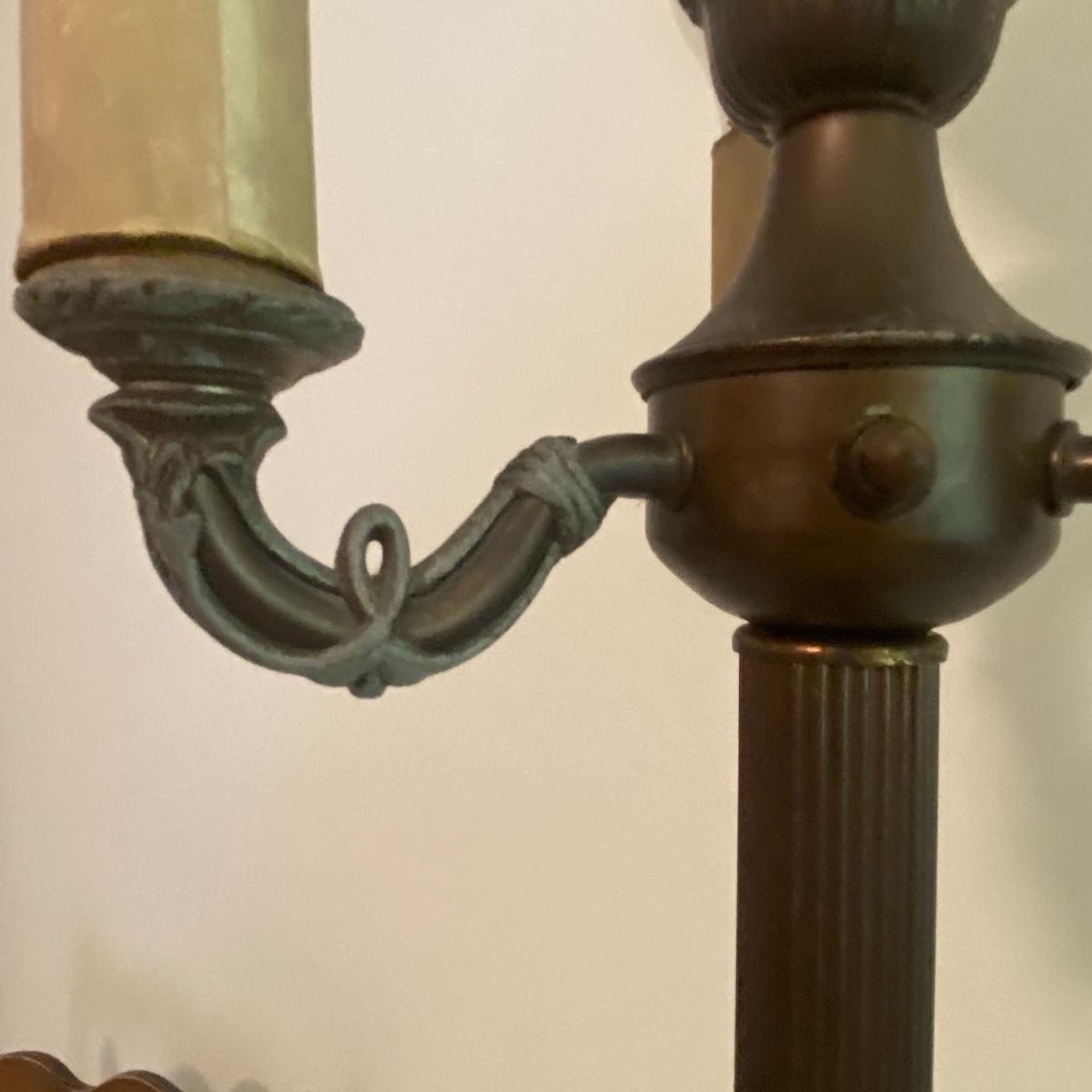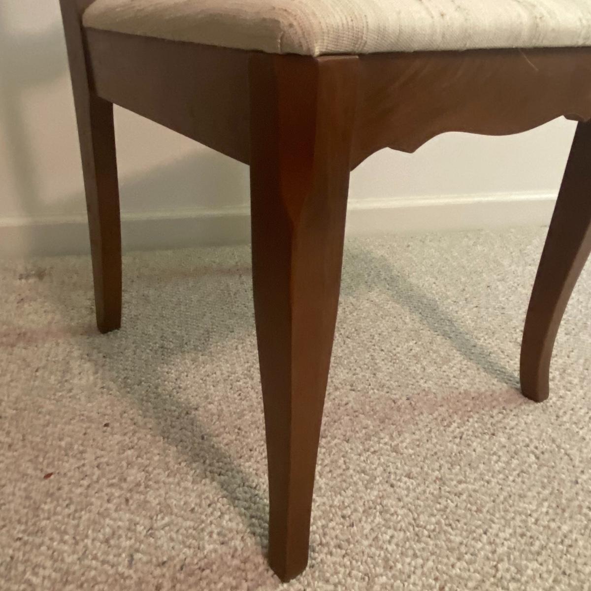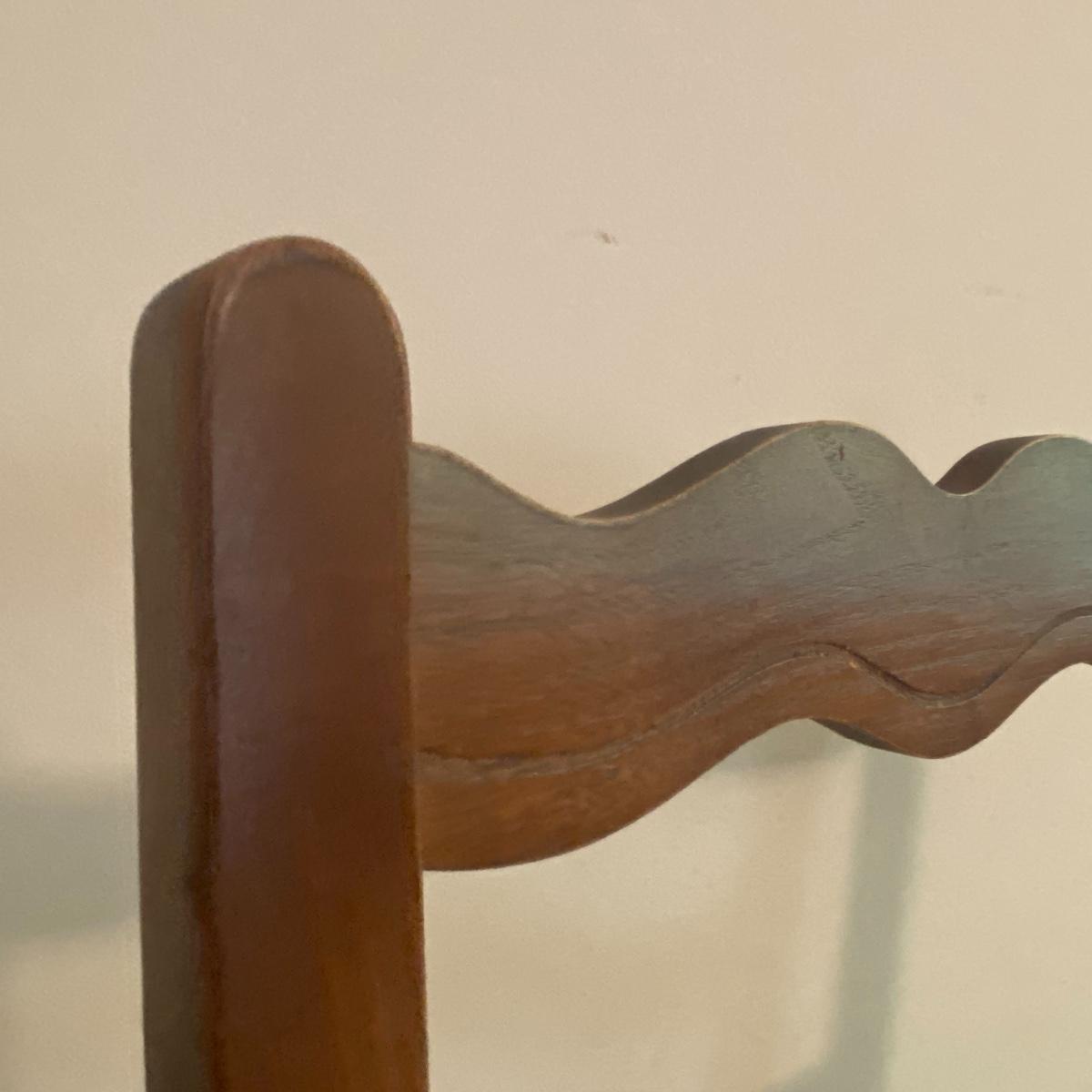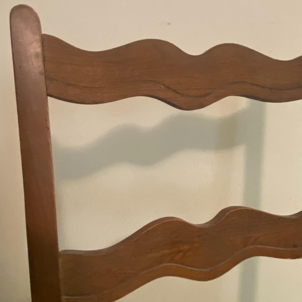 This lot includes a unique floor lamp with different lighting settings for any preference! Lamp includes large white shade. See photos. Lamp stands 61.5” tall. Two dining chairs match with cute curved wooden designs. Matching seat padding as well, one chair includes plastic seat cover. See photos. Measurements for the chairs are 18”x16”x17”. Including the back, chairs stand 32.5” tall. Local pickup only.