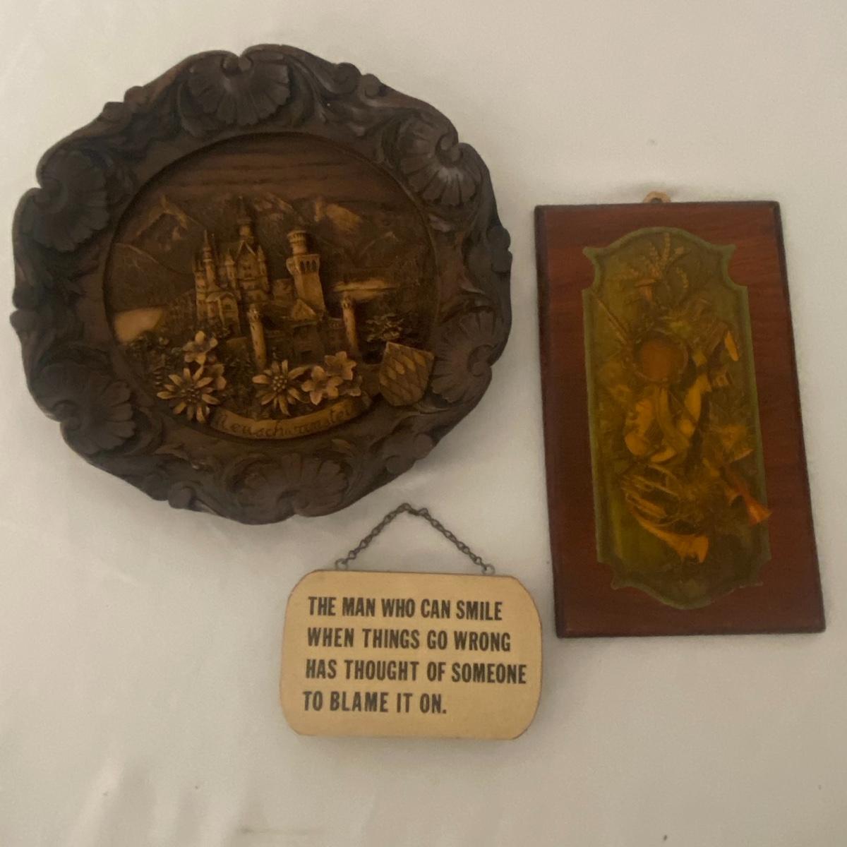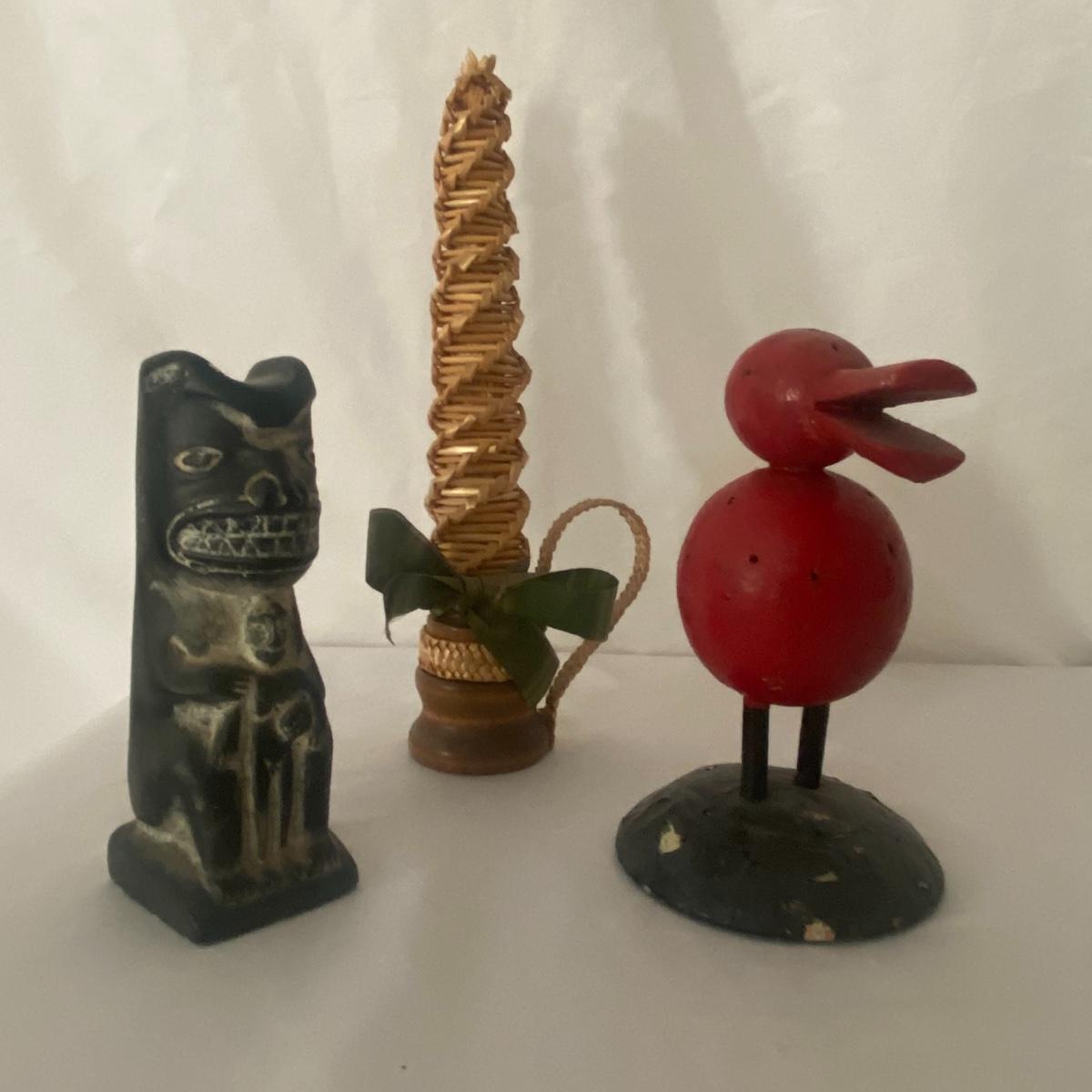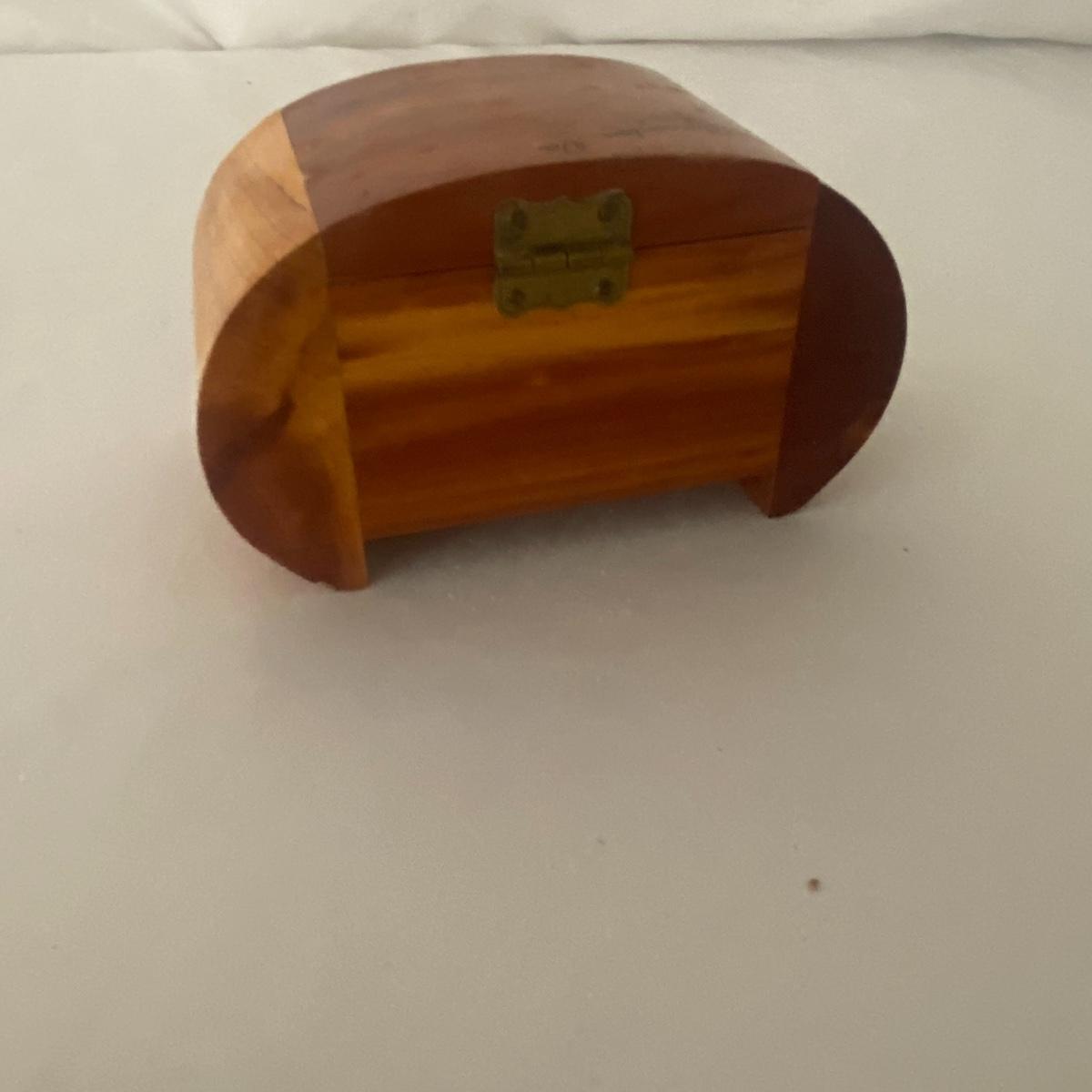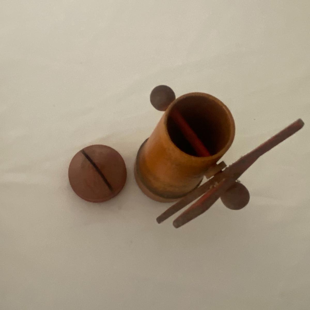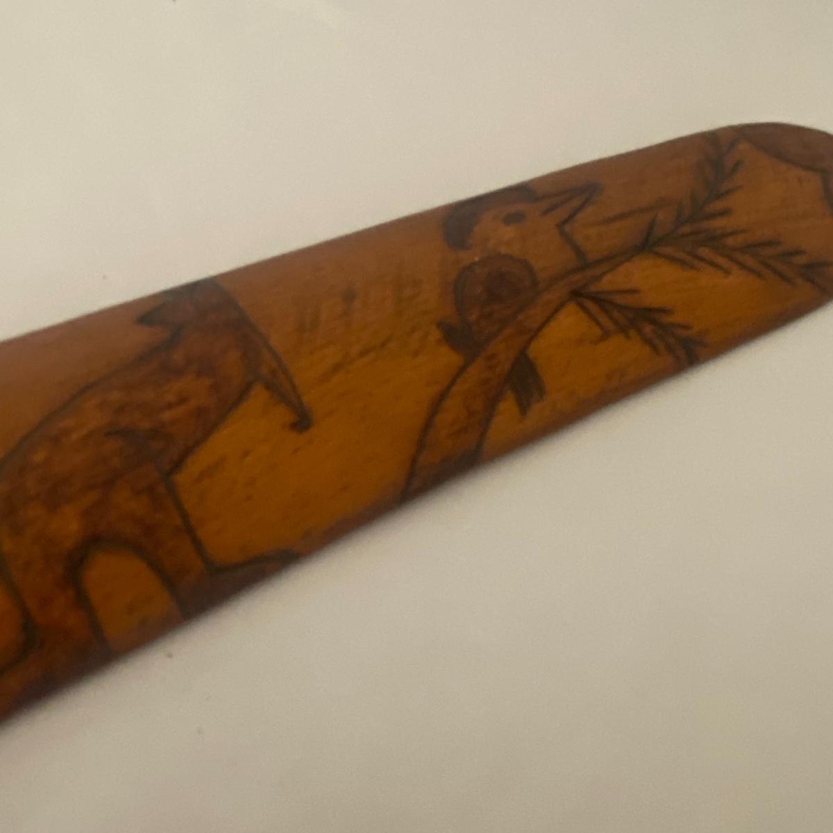 Enjoy this lot of many unique wood pieces! Lot includes wooden napkin holder, salt and pepper shakers, and table center pieces. Wooden wall art, a boomerang, and a small windmill coin bank included as well! See photos. See photos of adorable wooden boxes, larger box with a fabulous design and red lining measures 10.5”x5.5”. Local pickup only.