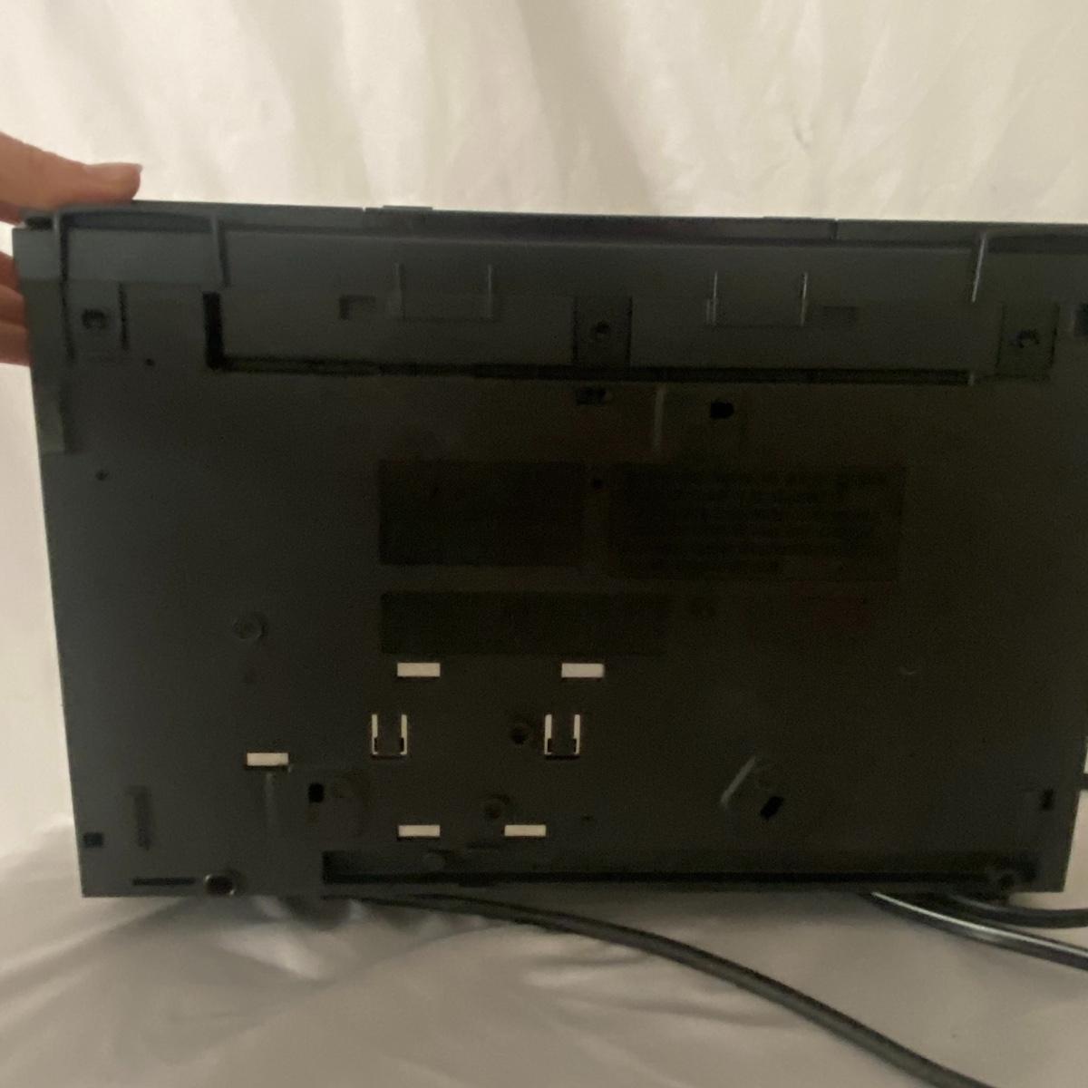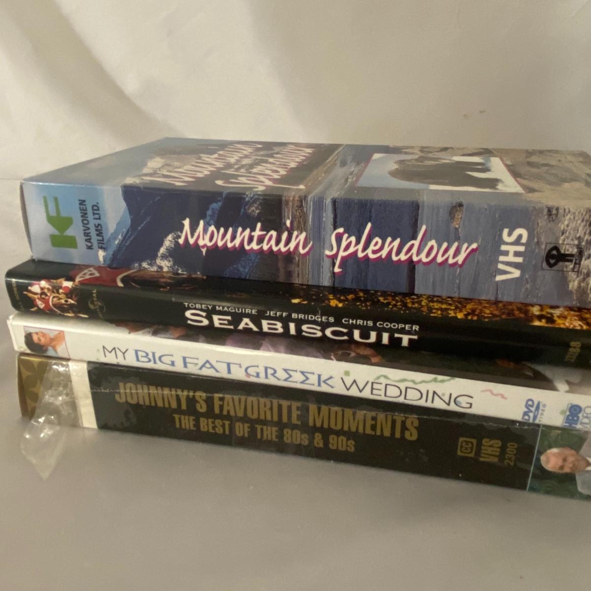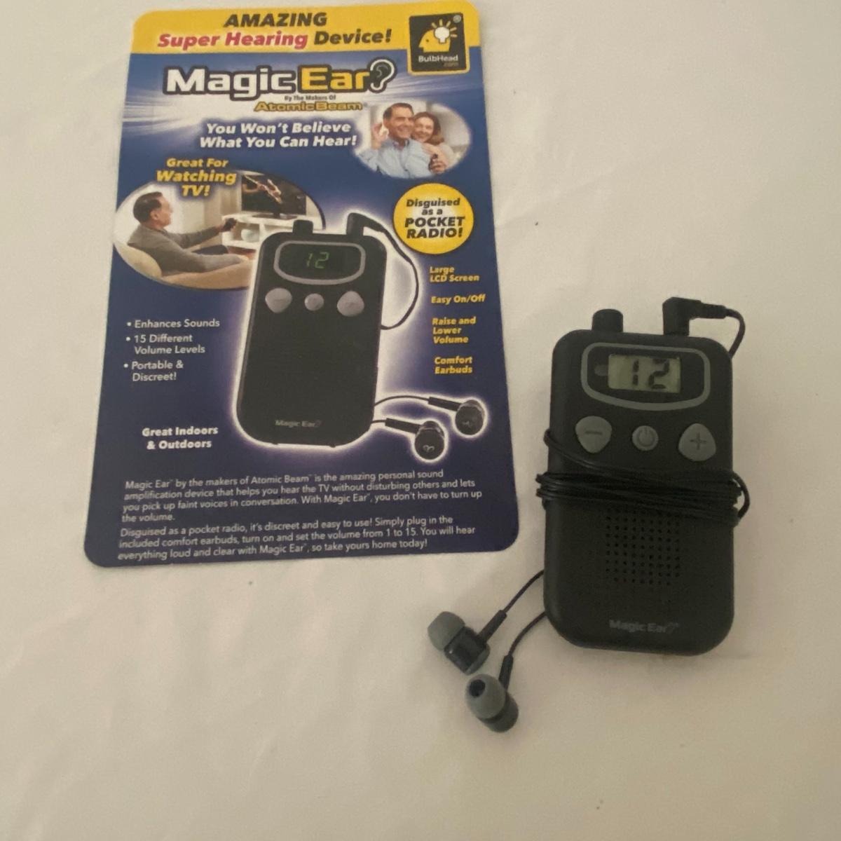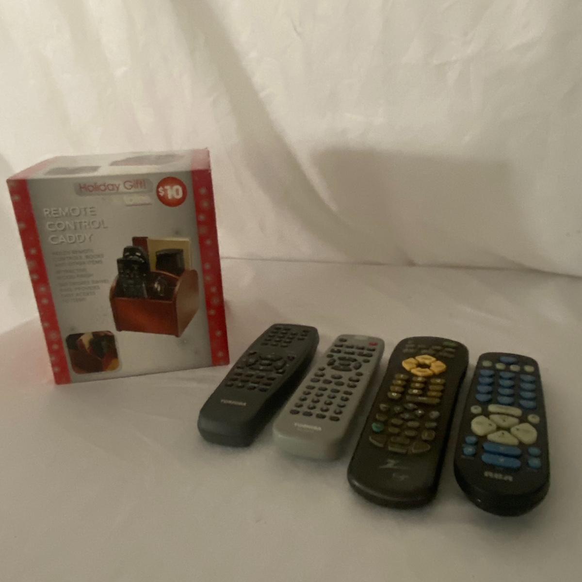 Lot includes silver Toshiba DVD player, turns on when tested. Second black Toshiba VCR player that turns on when tested. Manuals and remotes included, see photos. Blank VCRs for recording are included. DVDs are in their case and included in this lot, see photos! Packaged remote control caddy included to help organization! MagicEar hearing device included as well. Local pickup only. See photos.