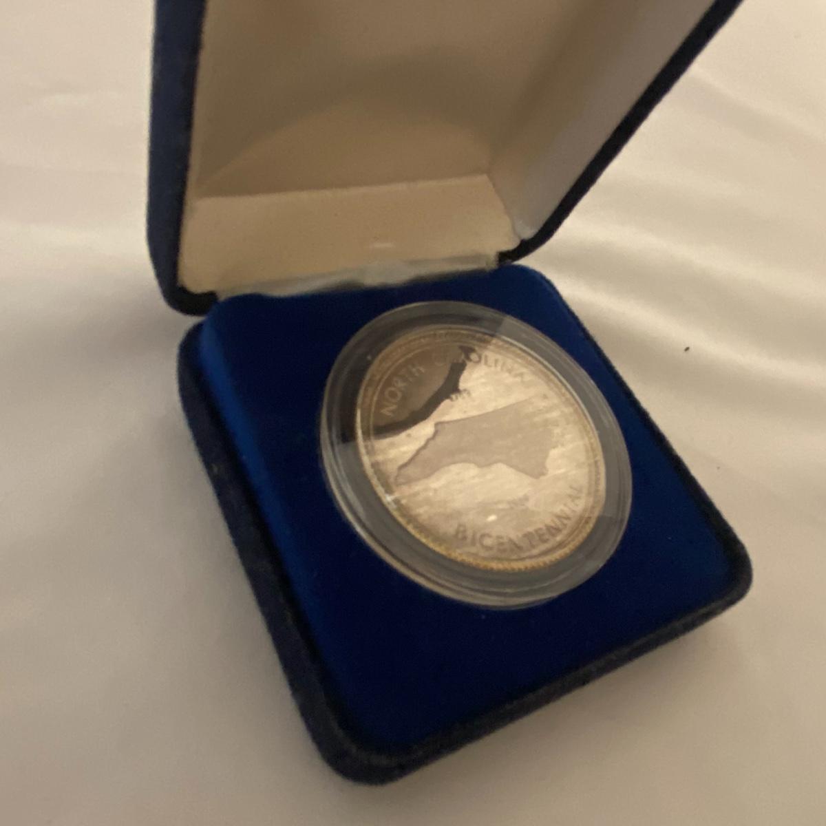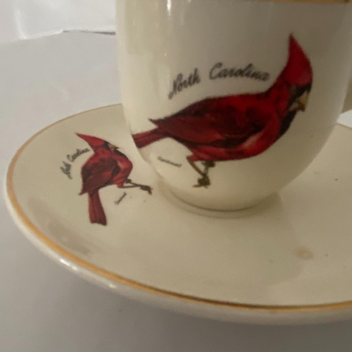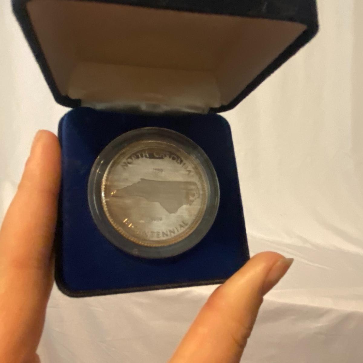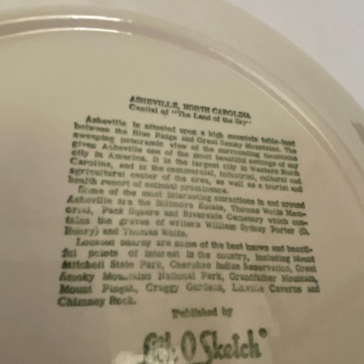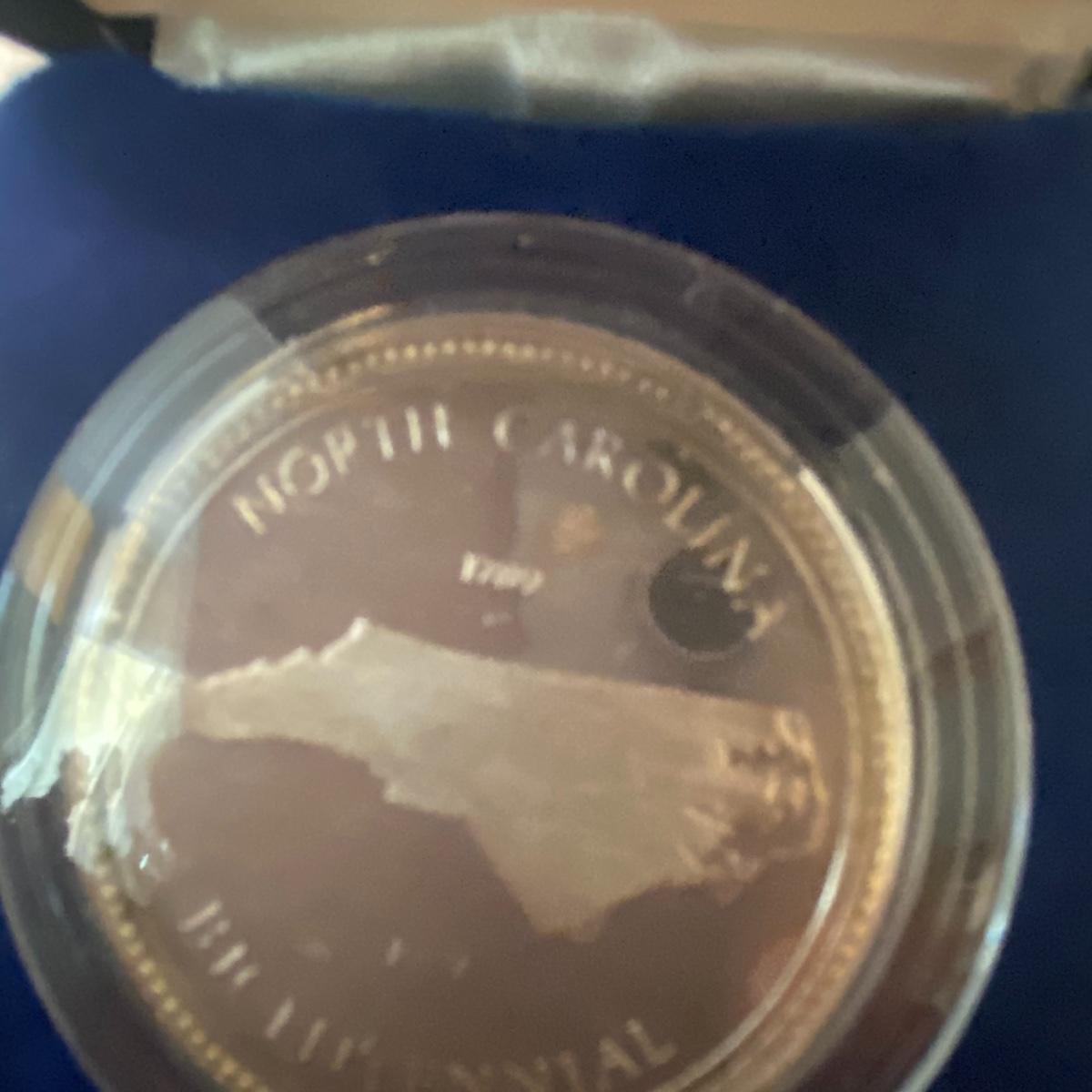 Charming North Carolina lot will bring decor and historical talking points into your home! 1789-1989 North Carolina Bicentennial medal included. The medal is made of fine silver. Enclosed in its protective case and sits in its own box. See photos Two pieces of North Carolina art included, a framed North Carolina cross stitch map with highlights from across the state. Measurements are 21.5”x12.5”. North Carolina tile included, see photos. Small cardinal North Carolina tea cup and plate included. Asheville North Carolina land of the sky landmark highlights plate with a diameter of 10”,see photos. North Carolina by Whitecap Books included in this lot as well.