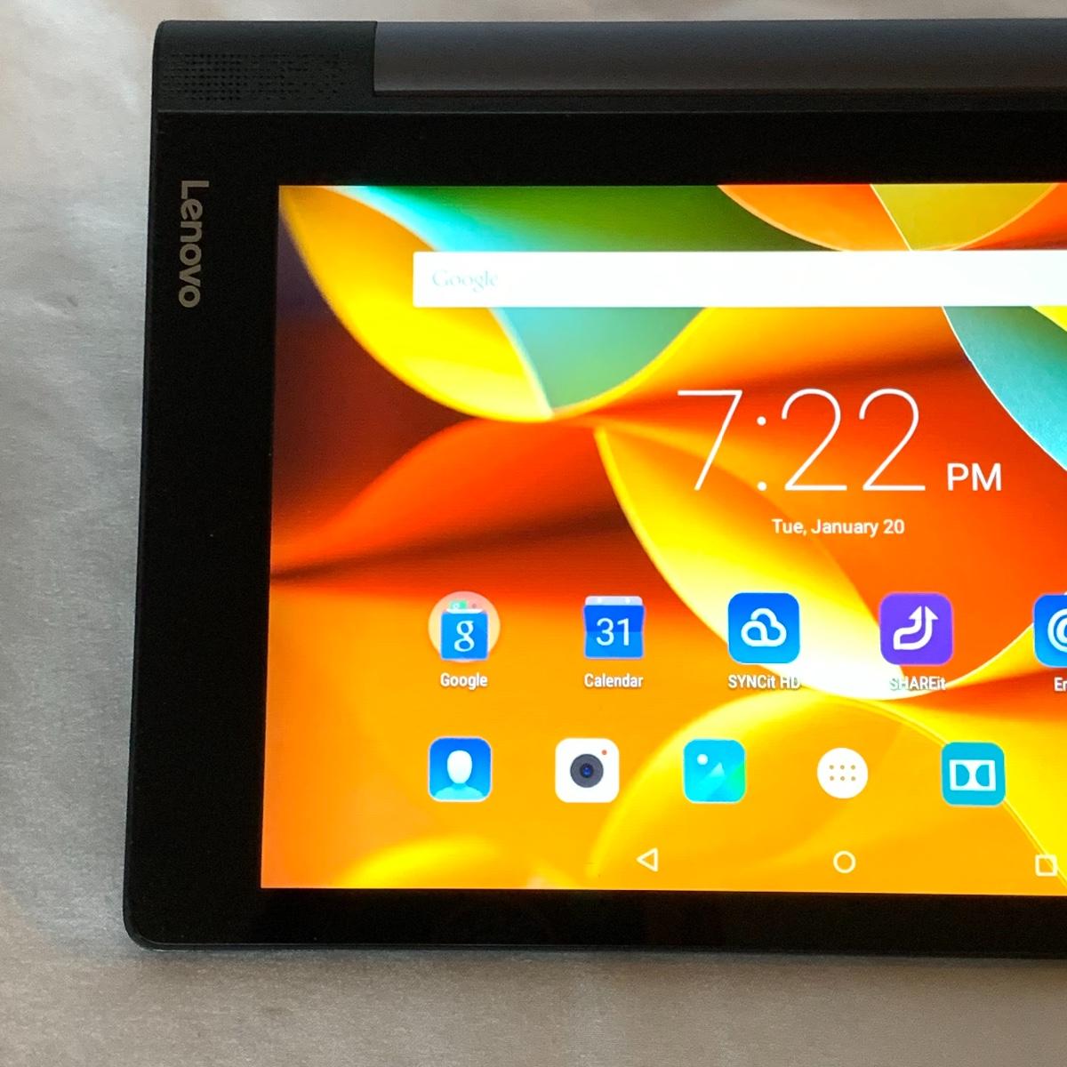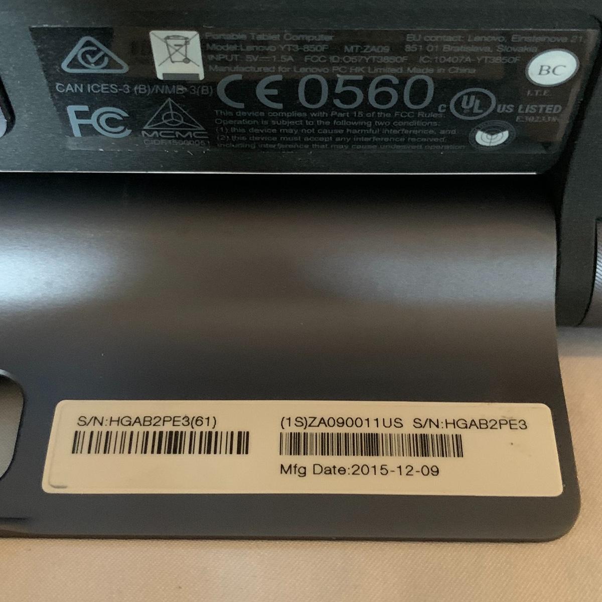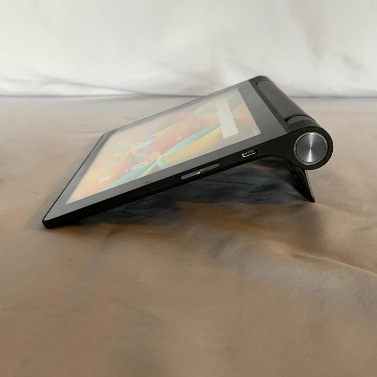 This Lenovo Yoga Portable Tablet Computer appears to be in excellent condition. It has just a few tiny scratches on the screen, but otherwise looks like new. Its model is: Lenovo YT3-850F. It turns on an everything appears to function perfectly. It has a camera and a retractable stand. There is a port for a headphone set to be plugged in. There is not a power cord included and will require a Micro USB cable to charge it, which can easily be found online or you probably already have one at home for another device. The tablet measures 8.25” x 6”. Shipping available.