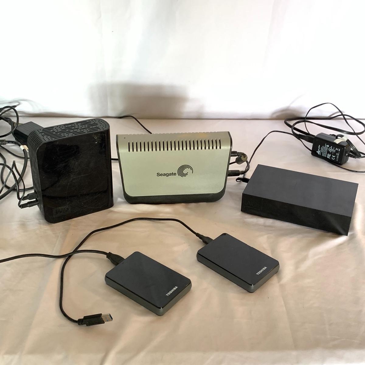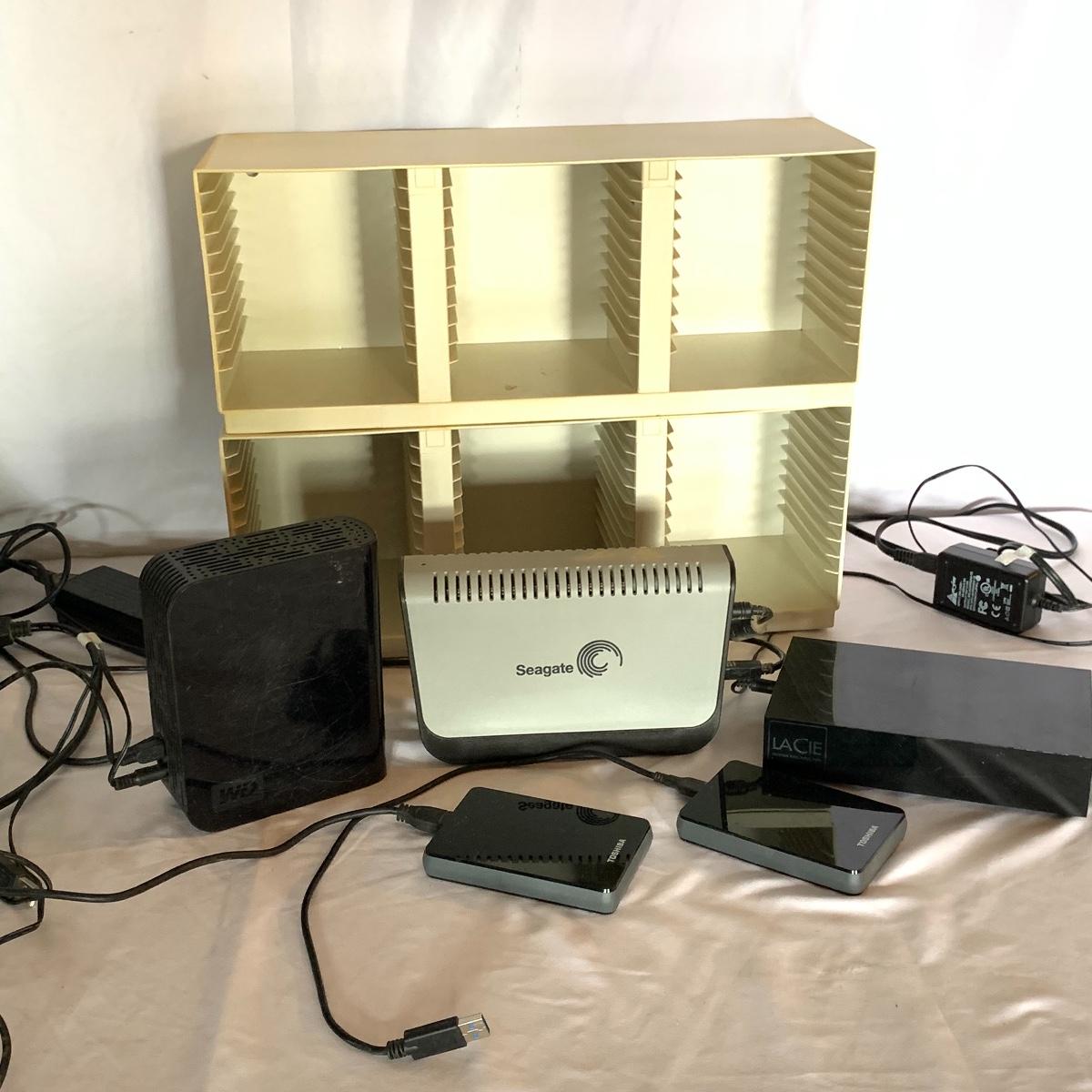 Lot 59 - External Hard Drives: Seagate, Toshiba, LaCie, & WD w/ CD Jewel Case Storage