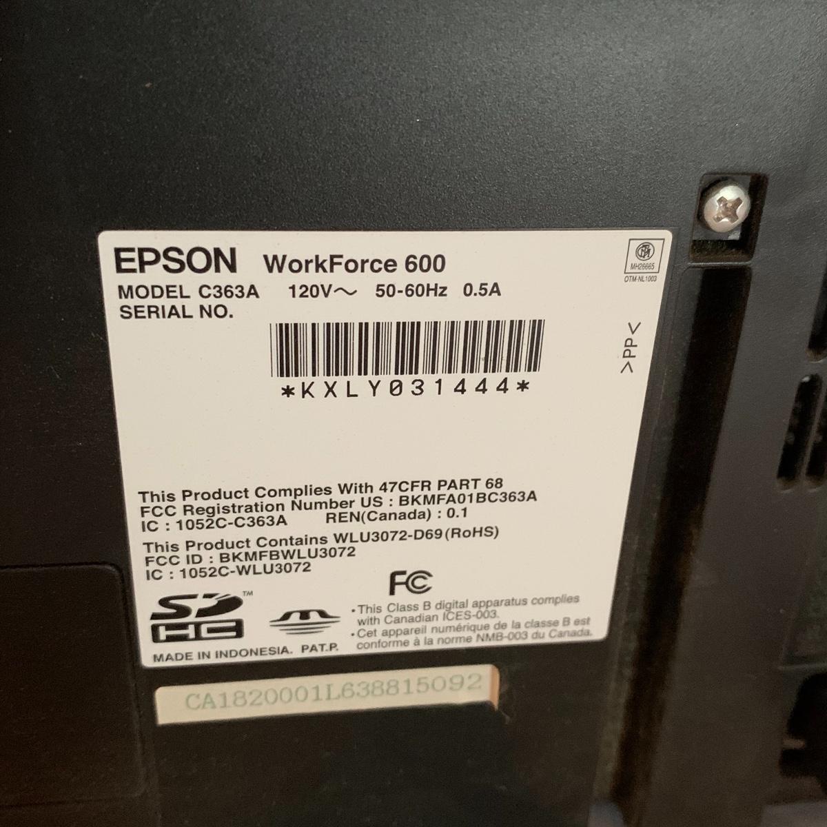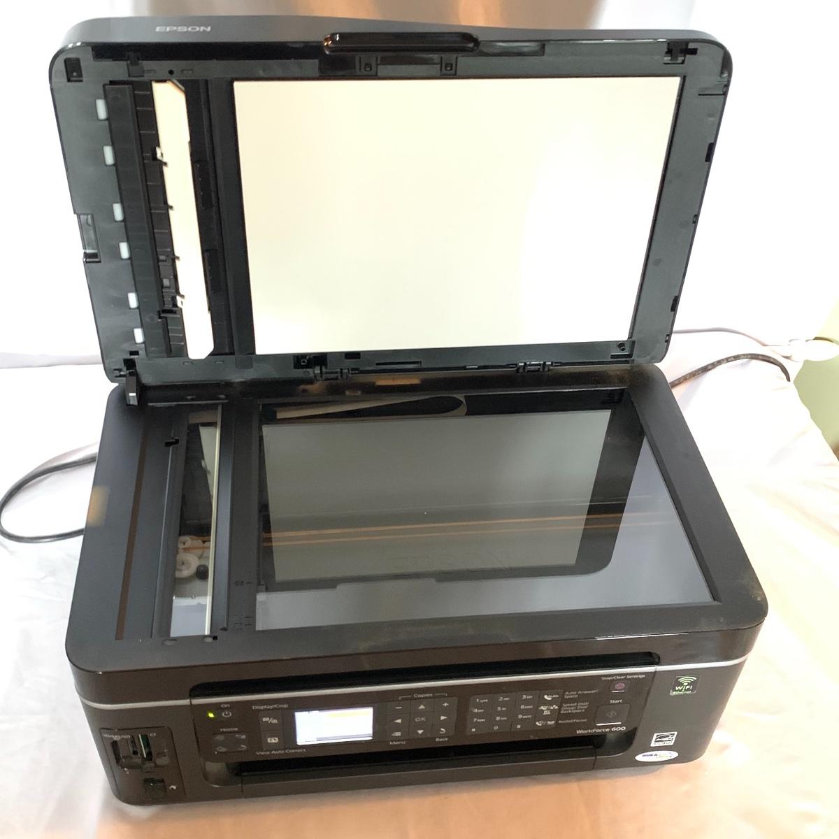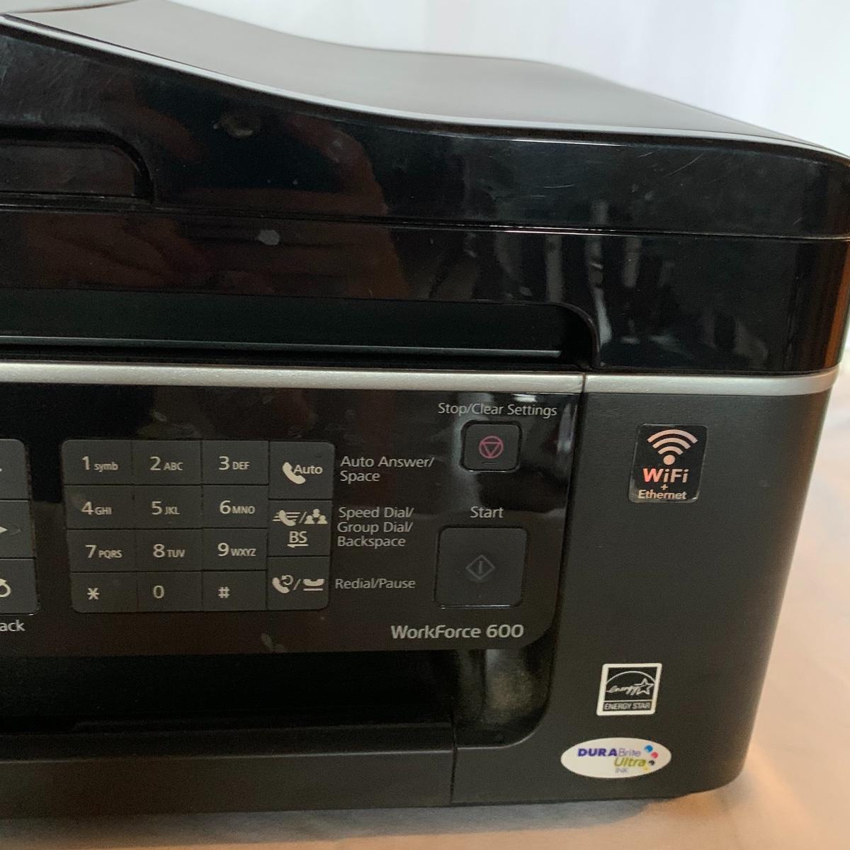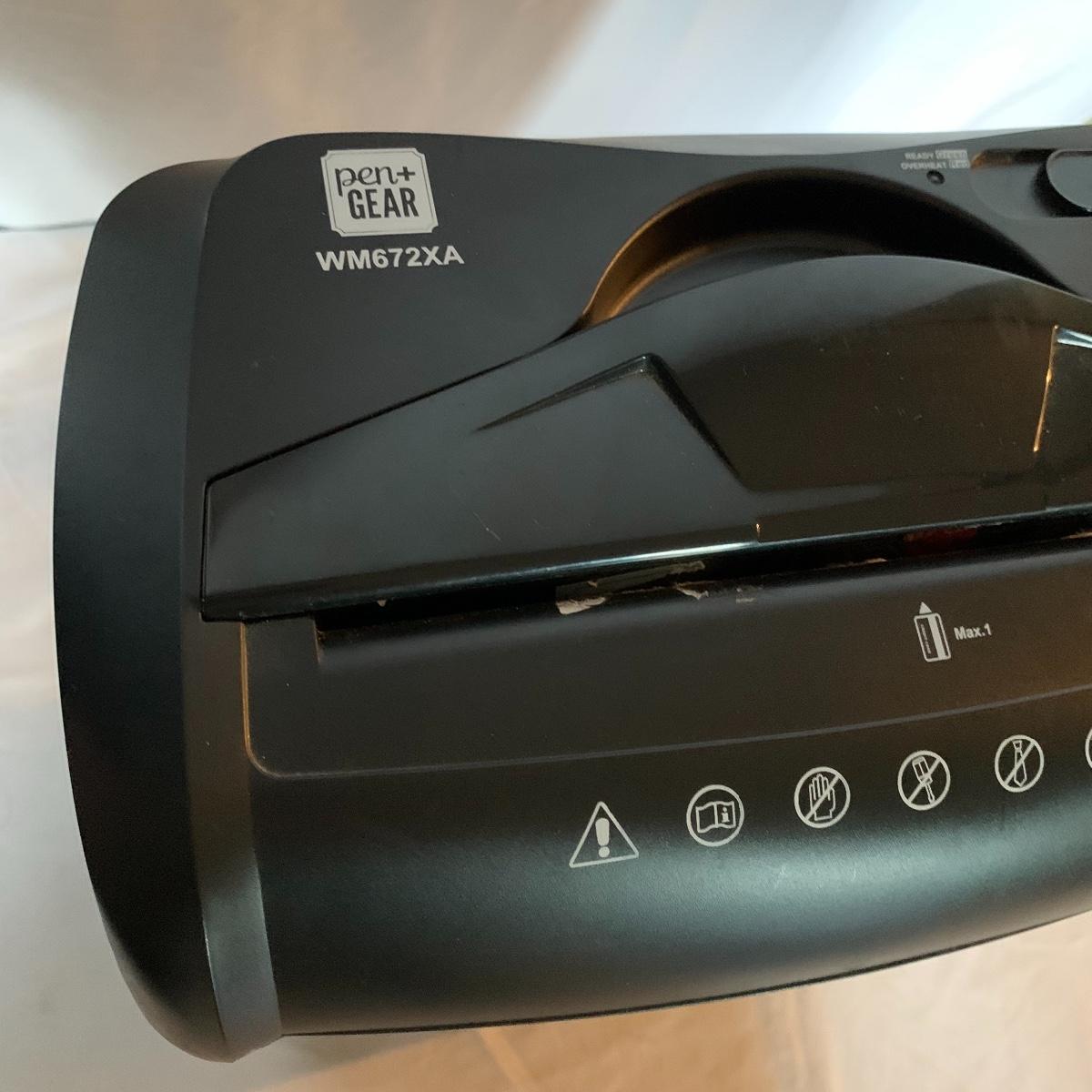 Set up your office with these office electronic necessities. There is an Epson WorkForce 600 All-In-One printer. It has wireless printing, scanning, copying, and faxing functions. When plugged in the screen turned on and it appears to function. It has collected a little bit of dust, but otherwise appears to be in excellent condition. The printer comes with a network installation guide. There is also a Pen & Gear WM672XA paper and credit card shredder. It is capable of shredding up to 6 sheets of paper at a time. When plugged in, it powered on and made a sound, so seems to function. There is also a box of shredder lubricant sheets included to help with maintenance of the shredder. Local pickup only.
