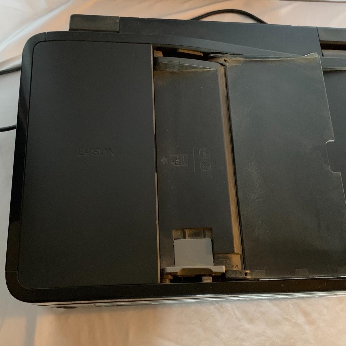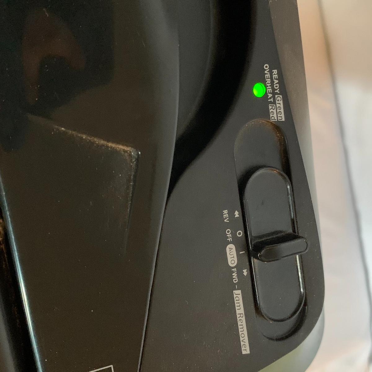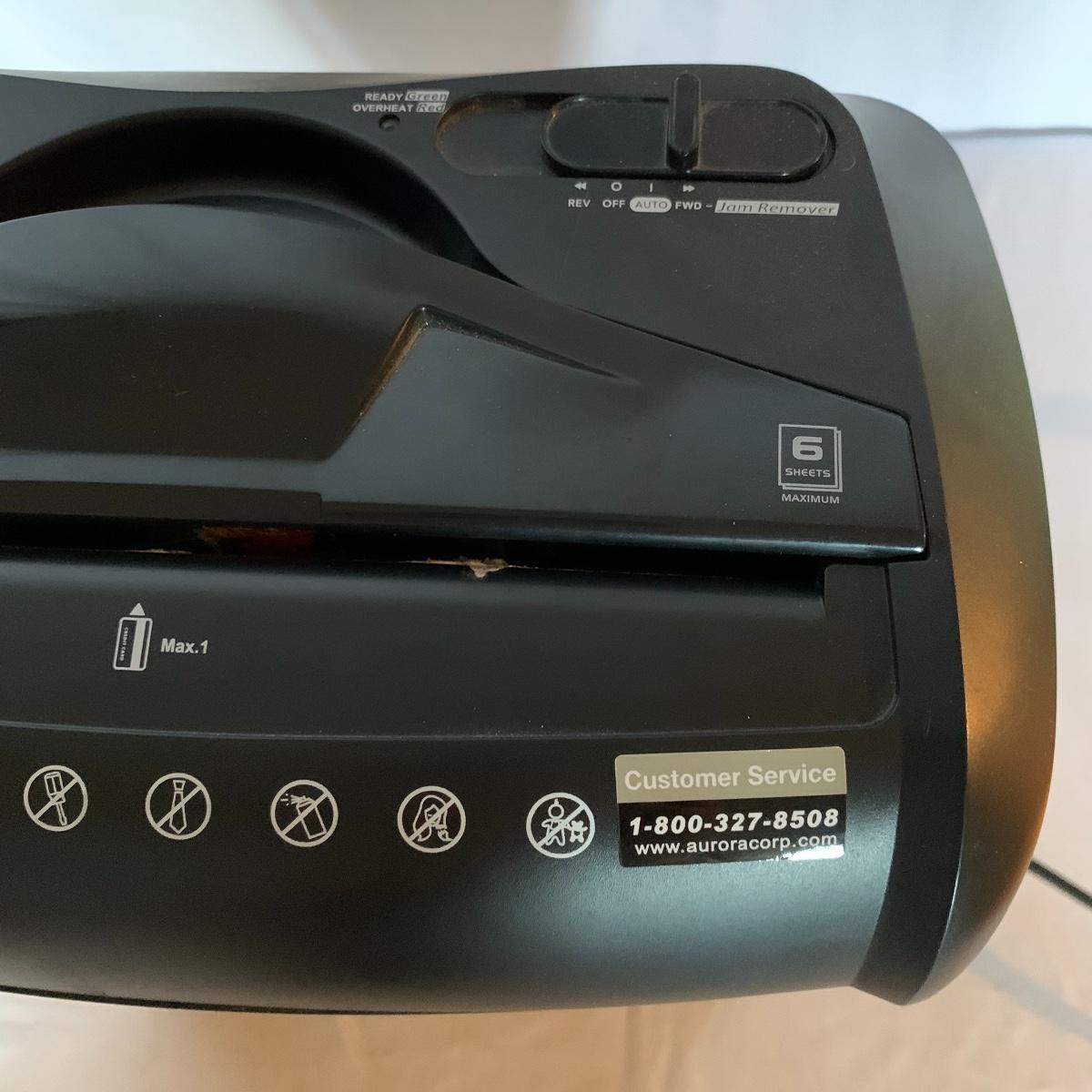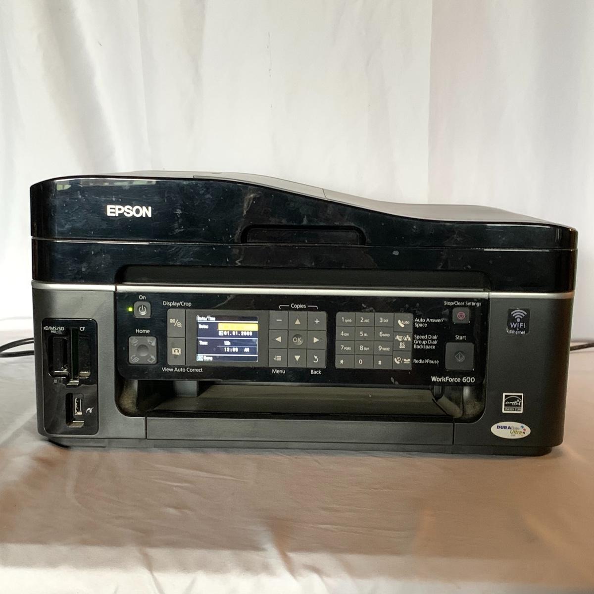 Set up your office with these office electronic necessities. There is an Epson WorkForce 600 All-In-One printer. It has wireless printing, scanning, copying, and faxing functions. When plugged in the screen turned on and it appears to function. It has collected a little bit of dust, but otherwise appears to be in excellent condition. The printer comes with a network installation guide. There is also a Pen & Gear WM672XA paper and credit card shredder. It is capable of shredding up to 6 sheets of paper at a time. When plugged in, it powered on and made a sound, so seems to function. There is also a box of shredder lubricant sheets included to help with maintenance of the shredder. Local pickup only.