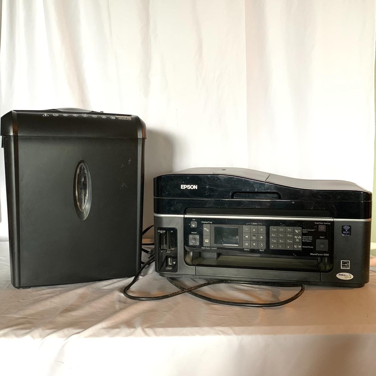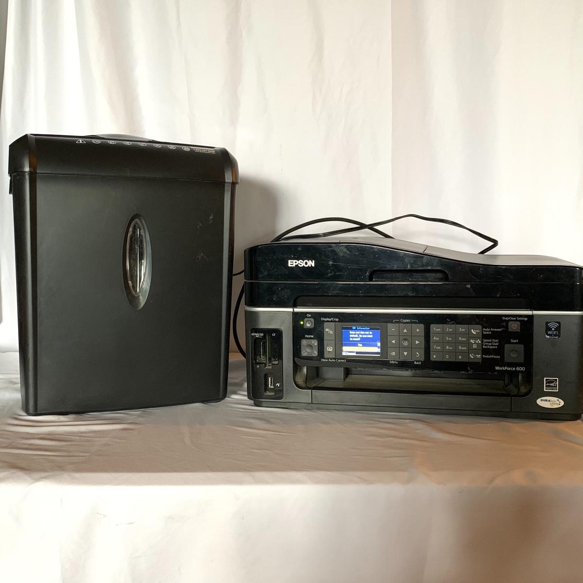 Lot 63 - Epson WorkForce 600 All-In-One Printer and Pen & Gear WM672XA Shredder