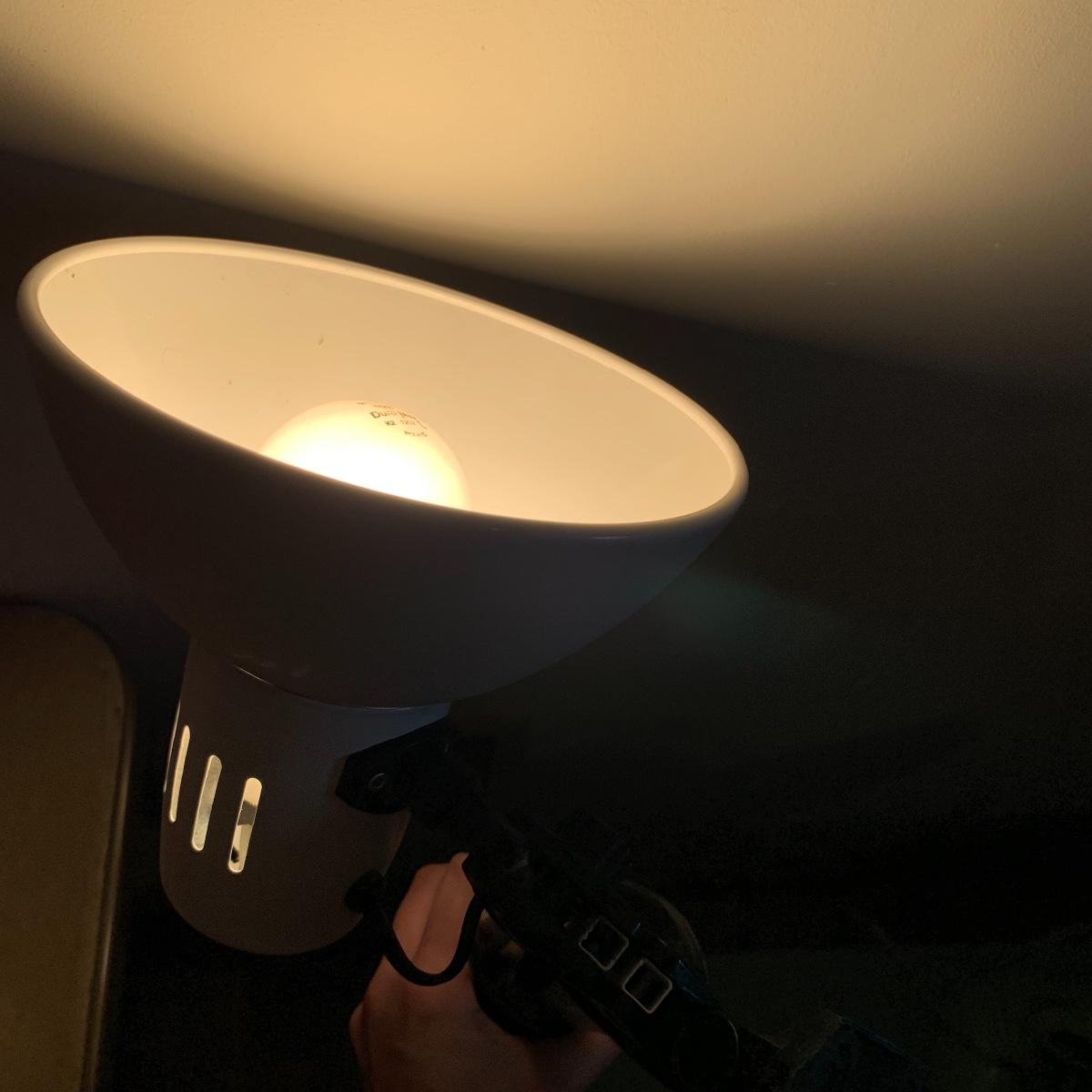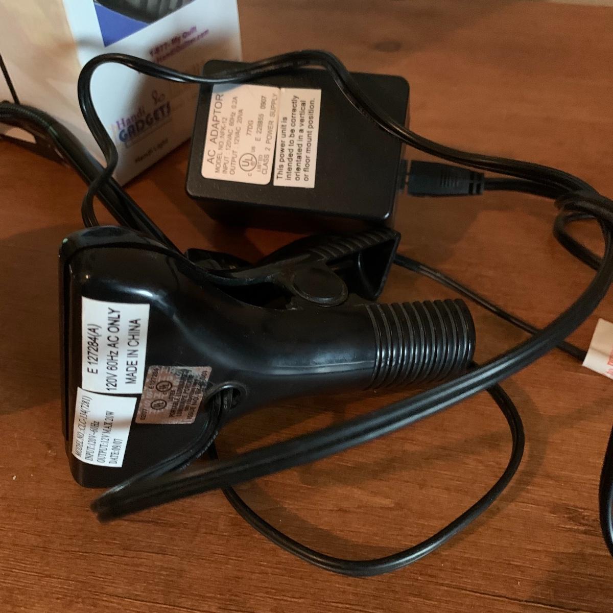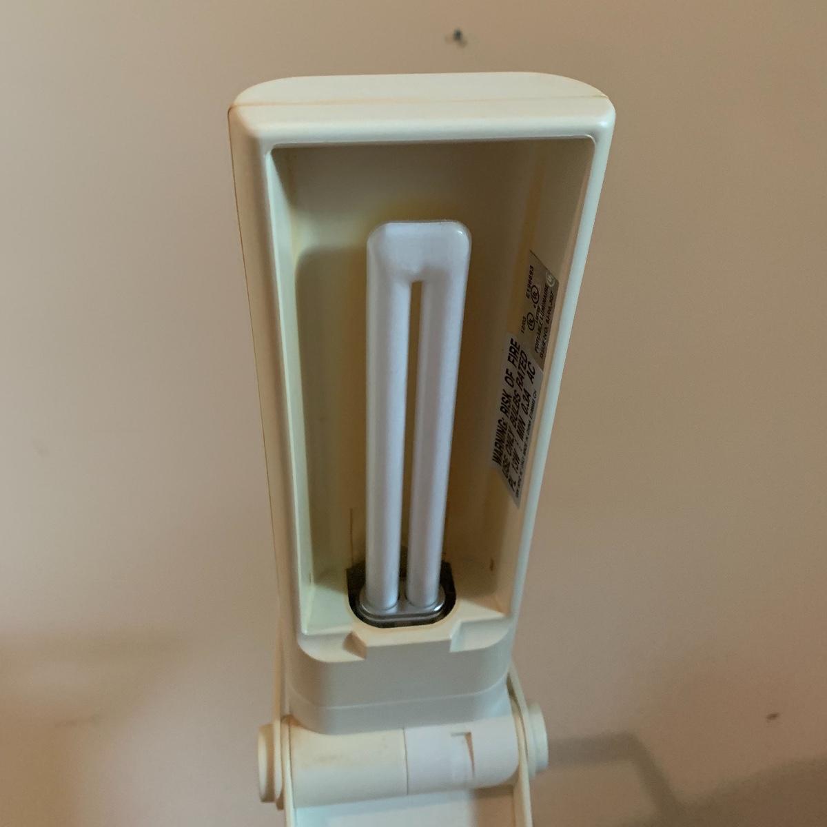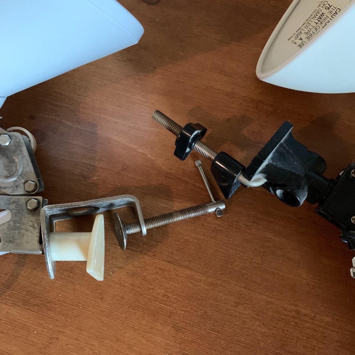 In this lot you’ll find a variety of 9 different desk lamps. One is a Daylight lamp that opens to turn on and closes to turn off. It has a handle and is about 13” tall when closed. It has a long lightbulb in it that is still burning brightly! There are two Mainstays brand 14” black desk lamps that are still new in their original packaging. There is a 17.5” Handi Gadgets Handi Light with a halogen bulb that is a clip on lamp. It currently functions well when plugged in, with a nice bright light. There are four long hinged lamps. Three are white and clamp/screw on to a base. One is missing the clamp/screw part and needs a replacement. There is also a hinged black lamp. When all the way open it is about 35”. It functioned when plugged in. It’s mount is not attached, but included. The final lamp is a 7.5” white cylindrical lamp that functions. Local pickup only.