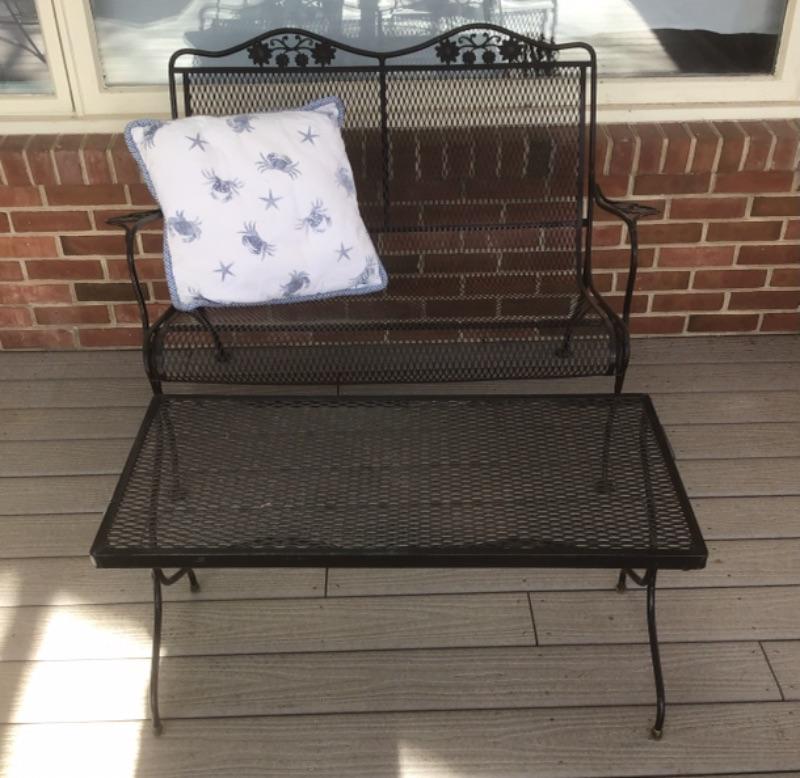 L - 650 Wrought Iron 2 Seat Bench with Coffee Table
