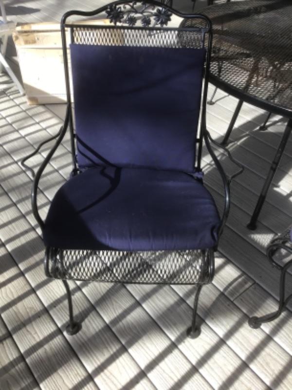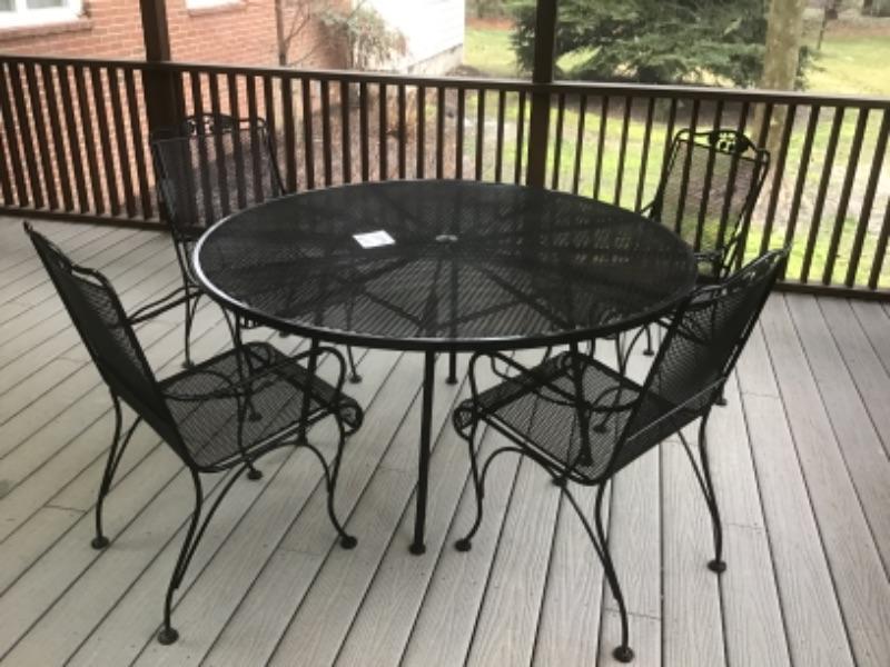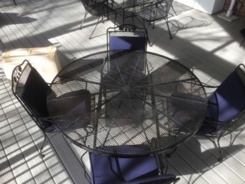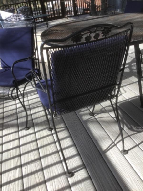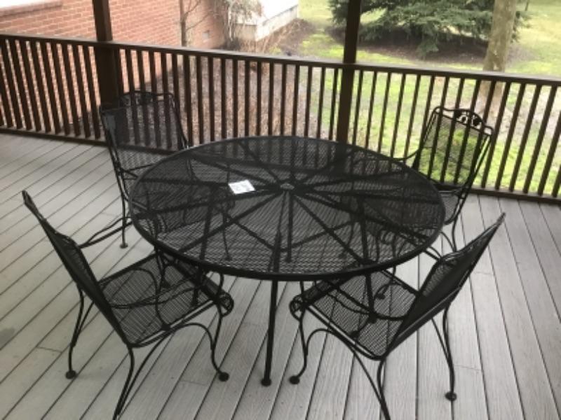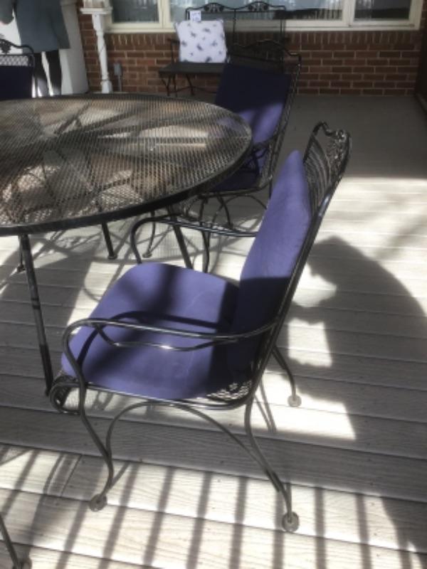 L - 651 Large Wrought Iron Table and 4 Arm Chairs with Cushions