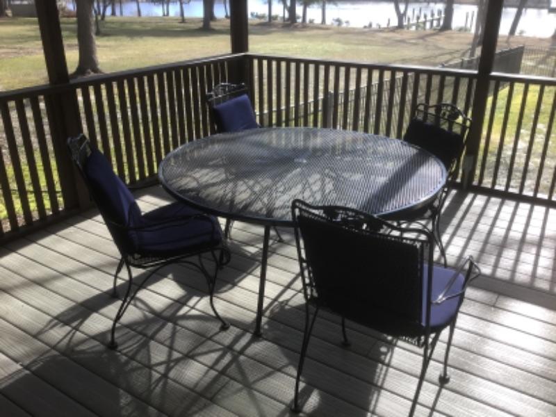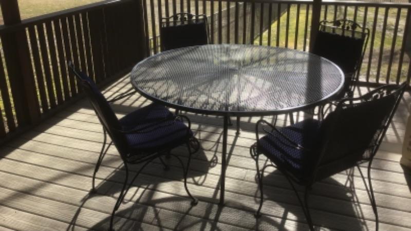 L - 651    Large Wrought Iron Table and 4 Arm Chairs with Cushions