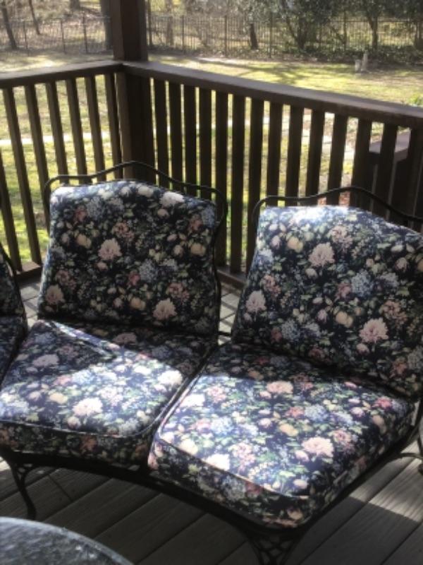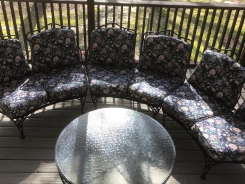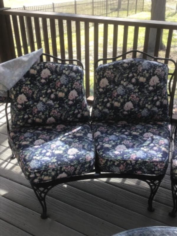 3 pc. Curved Sectional Wrought Iron Sofa with Cushions and additional fabric -