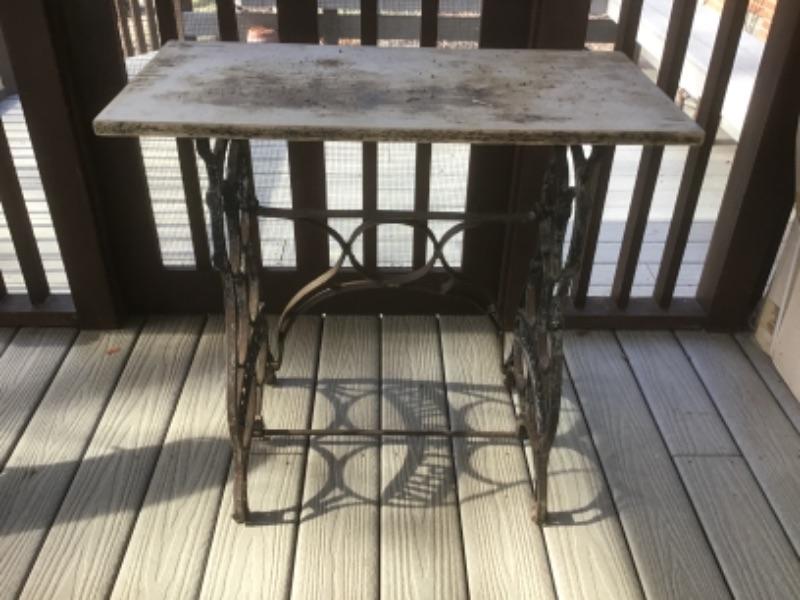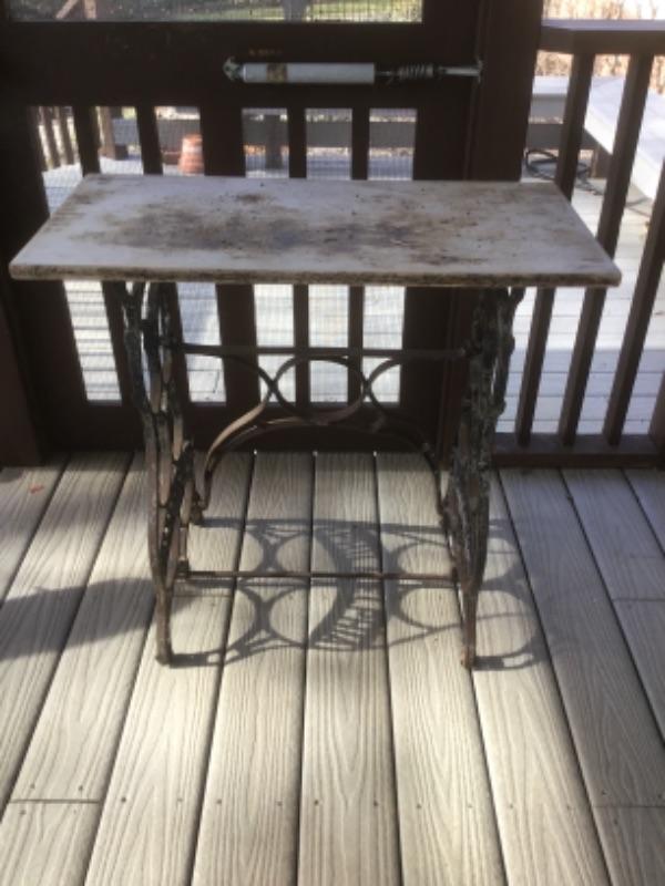 Vintage Wrought Iron Philadelphia Sewing Table Frame with Wood Top -