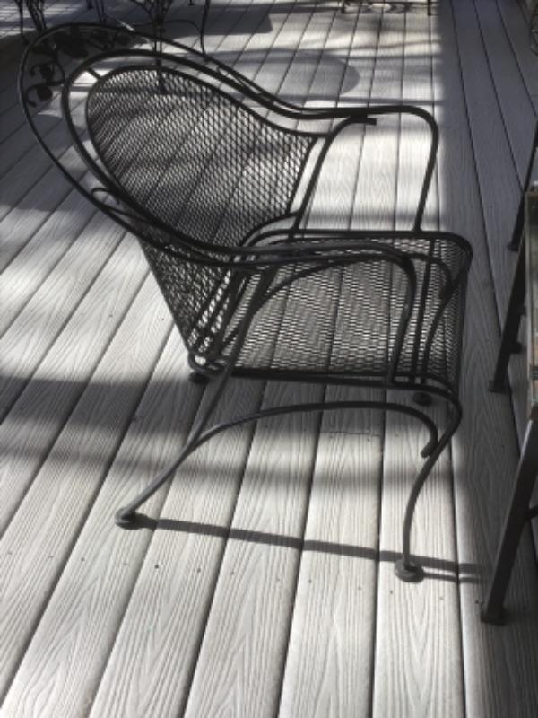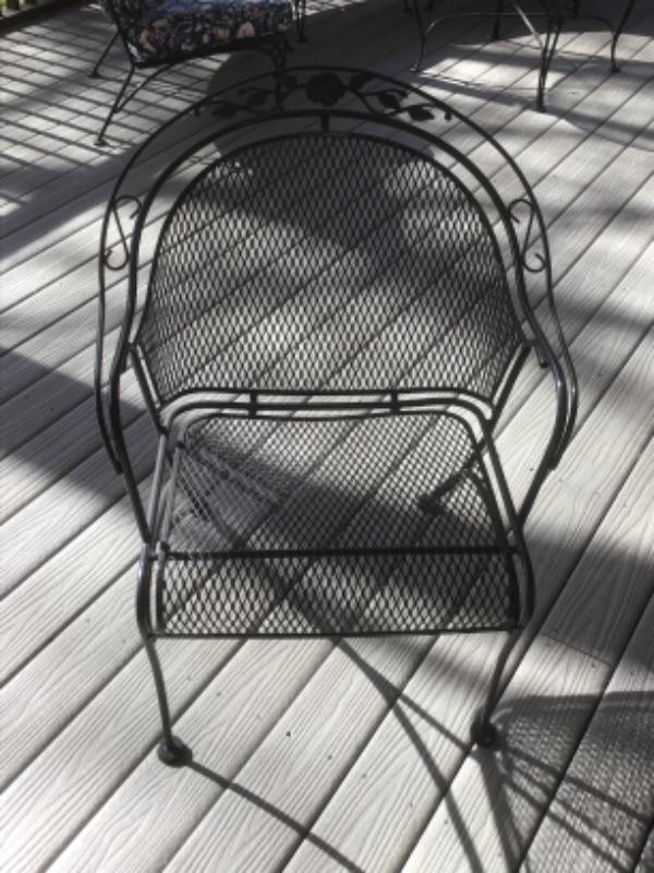 Wrought Iron Arm Chairs, each measures - 32” Tall x 26” Wide x 18” Seat Depth x 17” Floor to Seat