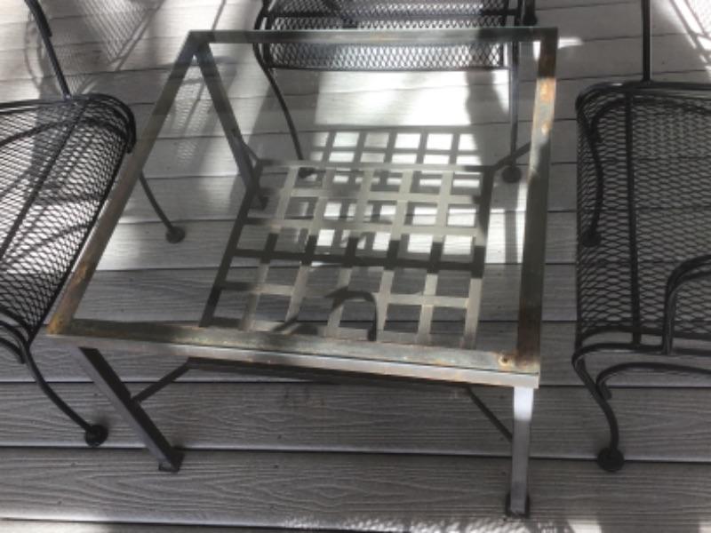 Wrought Iron Table with Glass Top measures - 26.75” Sq. X 19” Tall