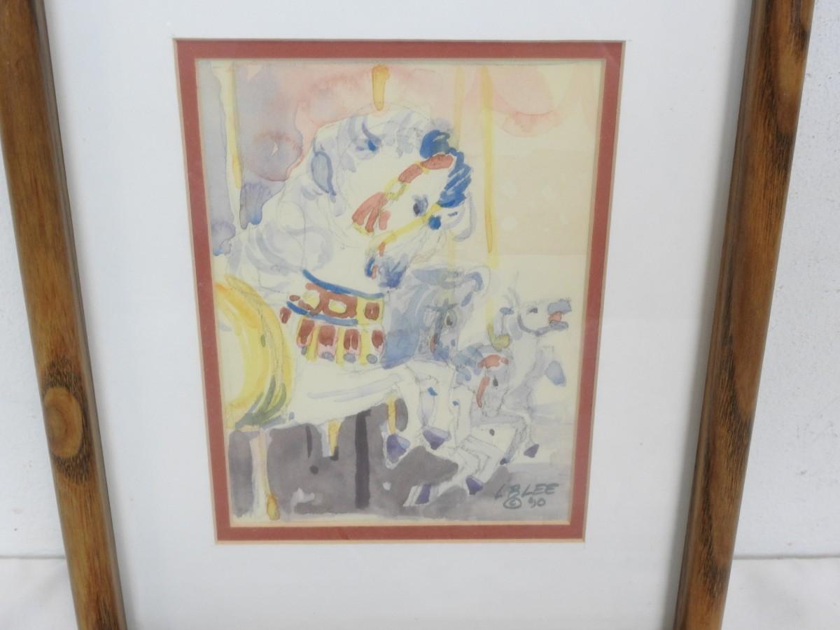 L B Lee Carousel, 1990 Watercolor Painting, 8 3/4x10 3/4