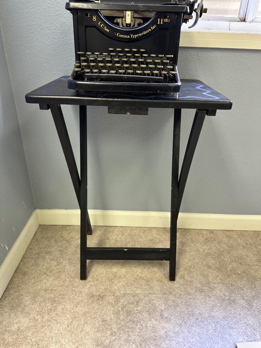 L C SMITH & CORONA VINTAGE TYPEWRITER AND SMALL TABLE