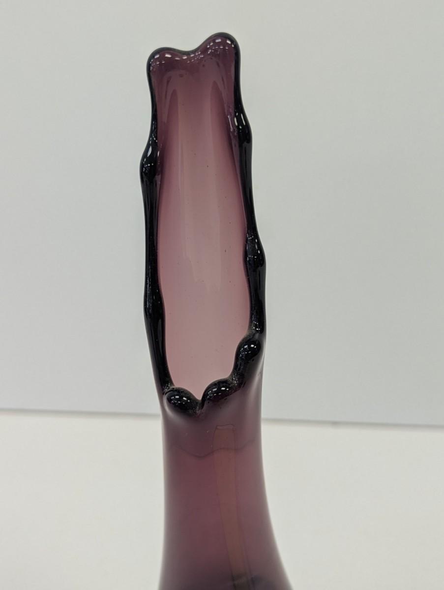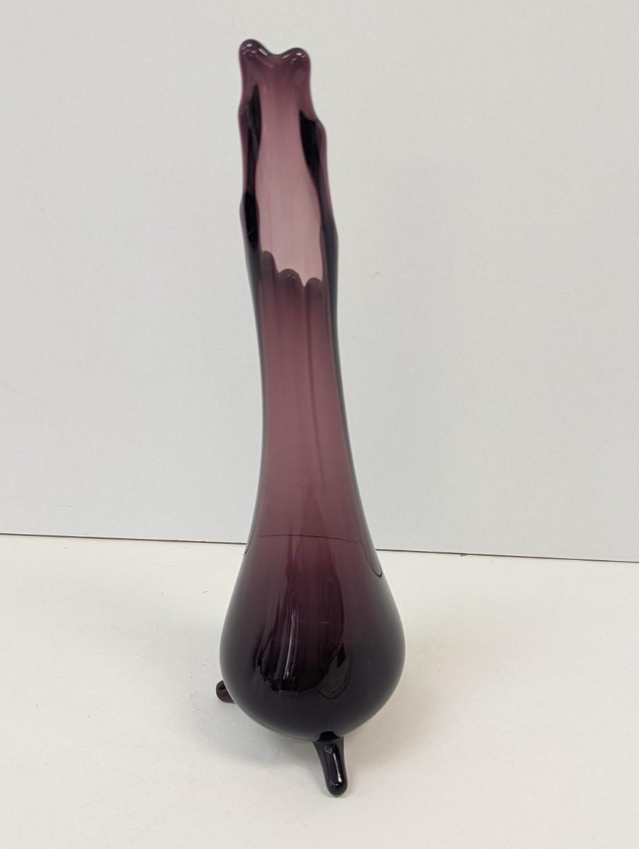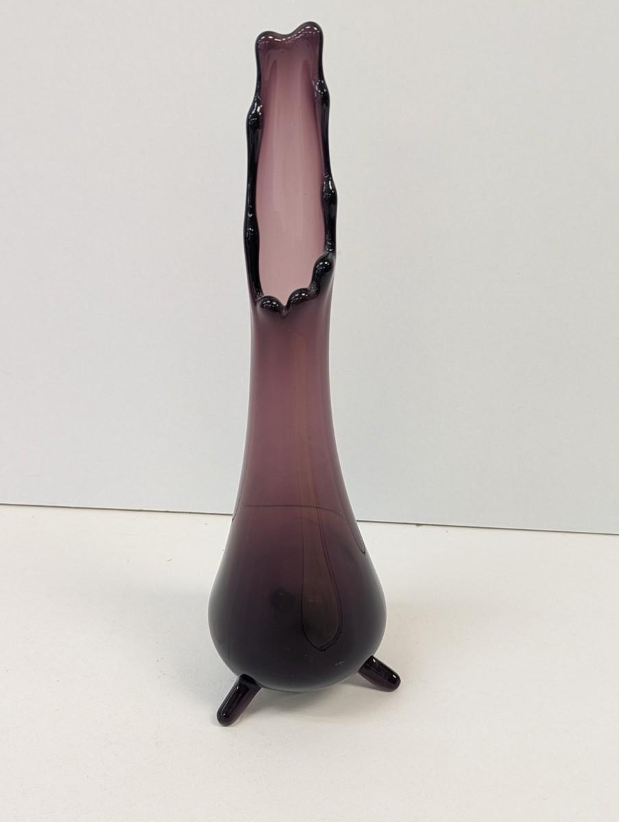 L. E. Smith Amethyst 3 Toed Glass Swung Vase 12" Tall