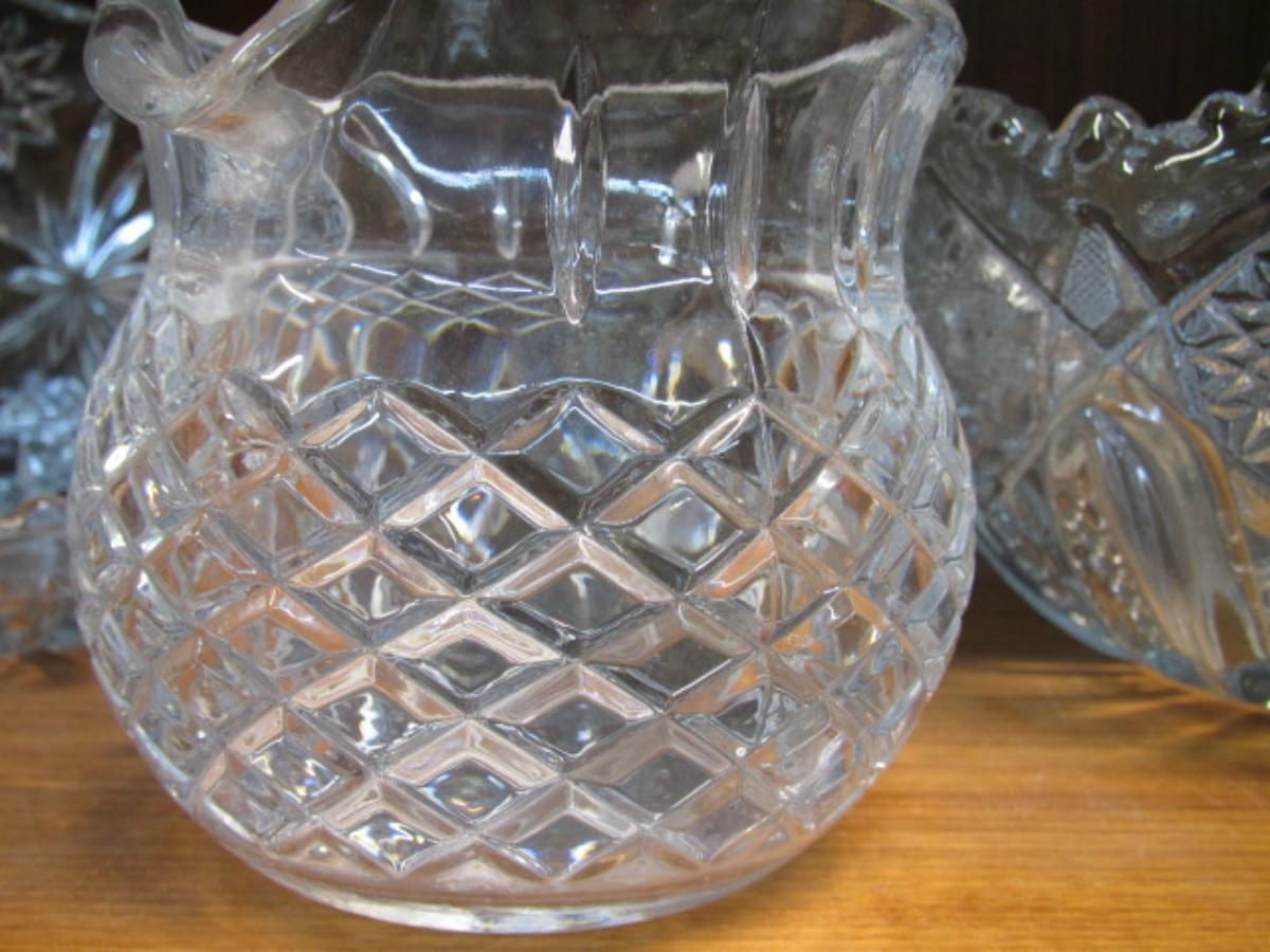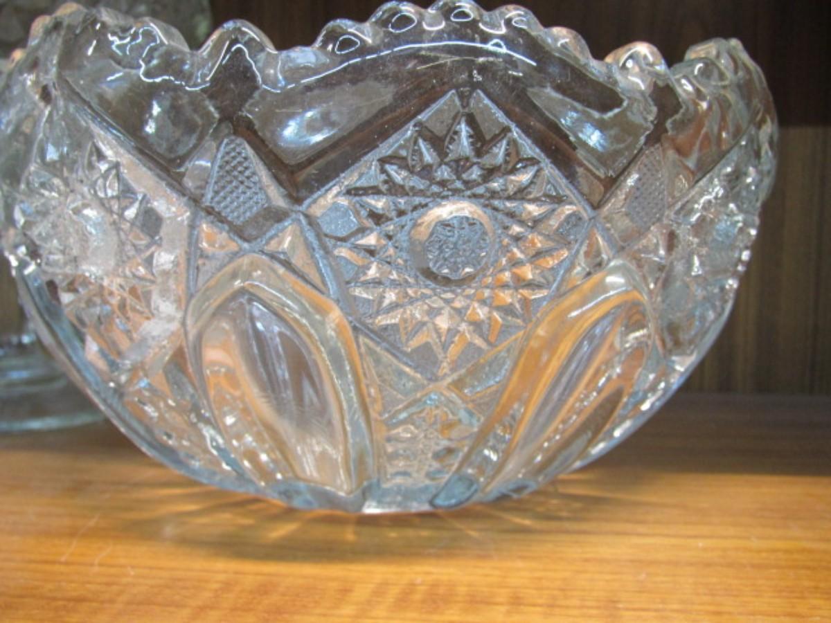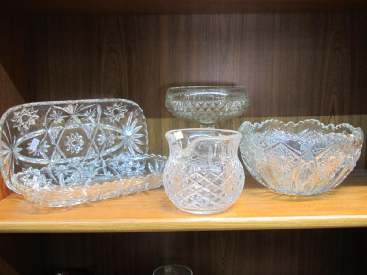 L E Smith Pinwheels Serving Bowl Anchor Hocking Rectangular Tray Cut Glass Small Pitcher & Candy Dish Pedestal