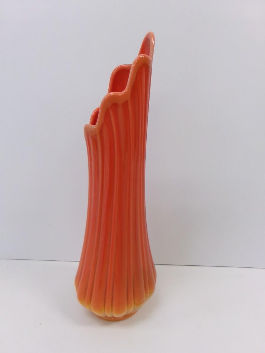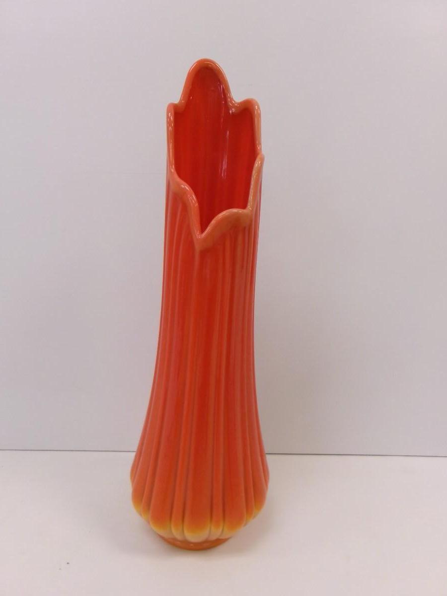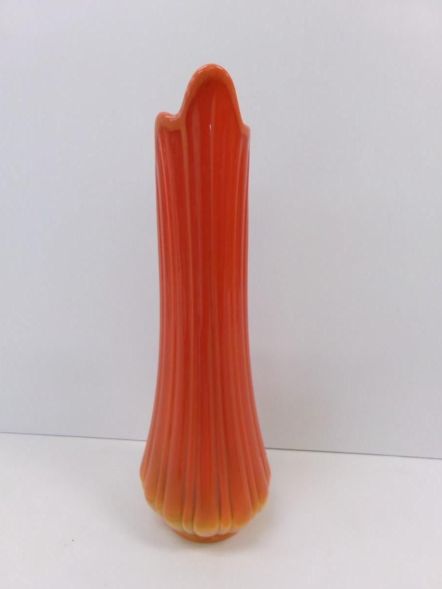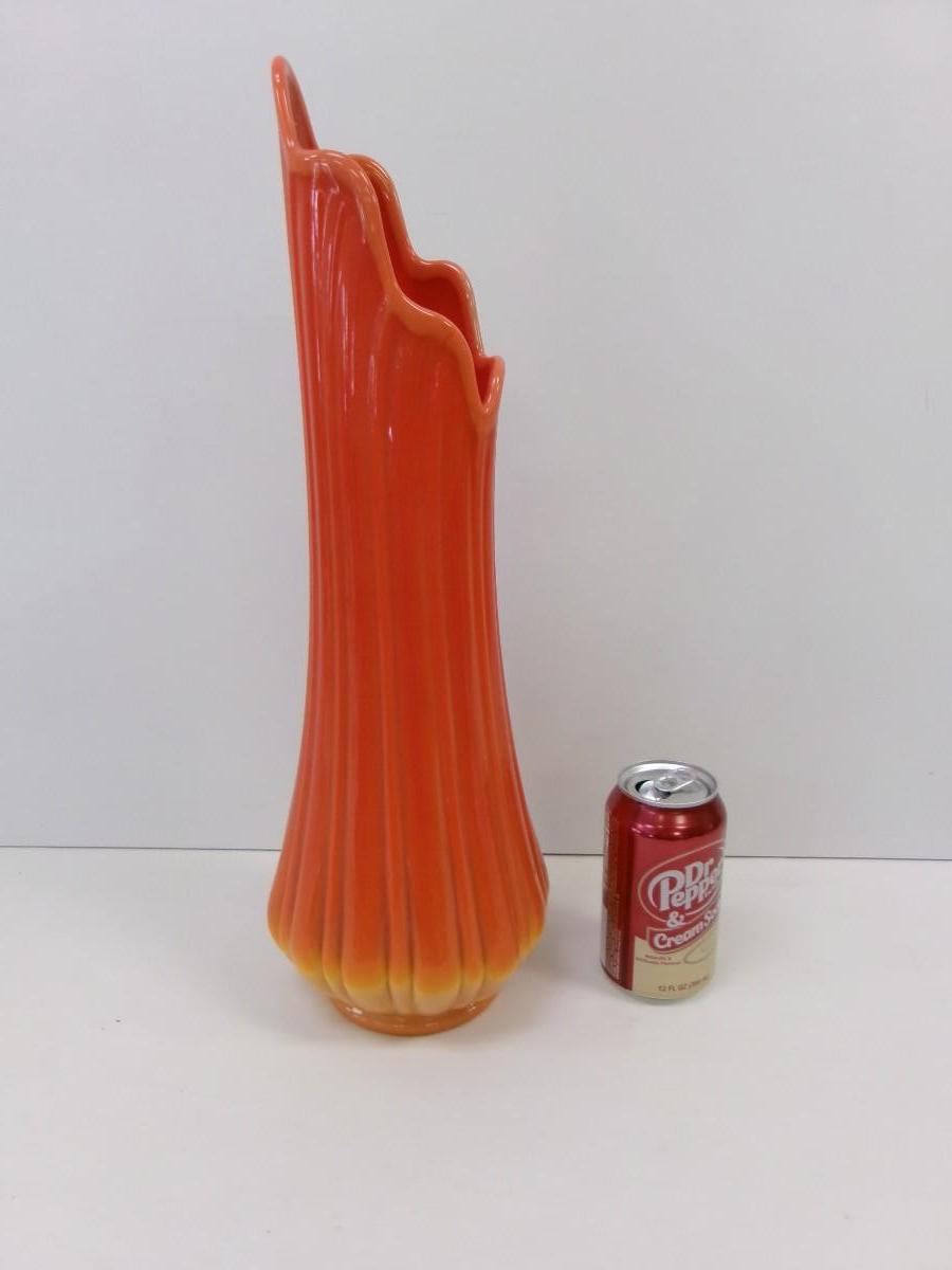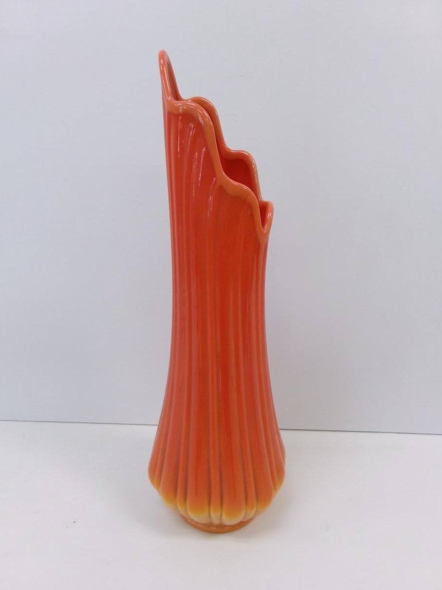 L. E. Smith Simplicity Bittersweet Ribbed Pattern Swung Tall Yellow & Orange Glass Vase Approx 18" Tall #18