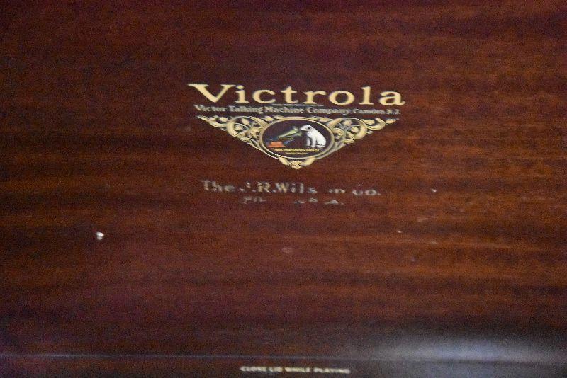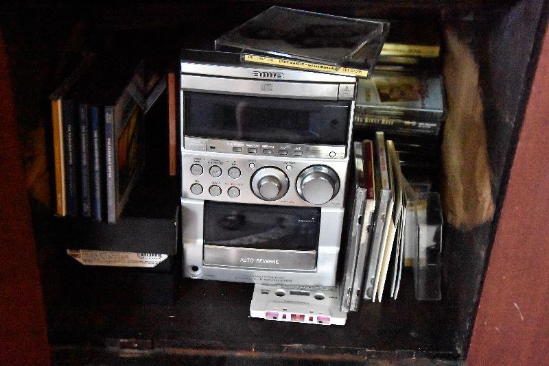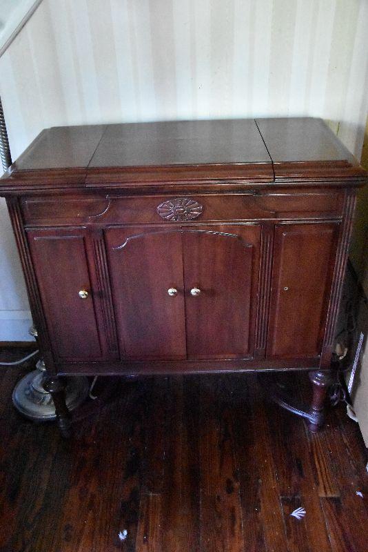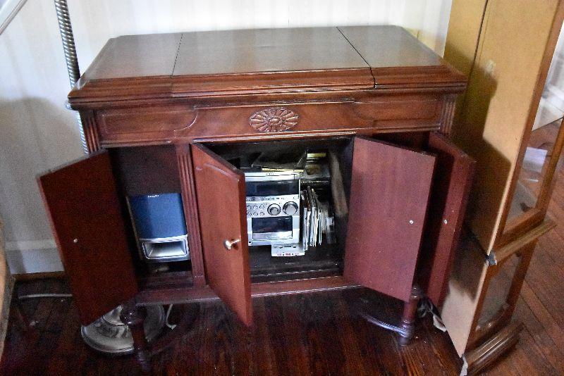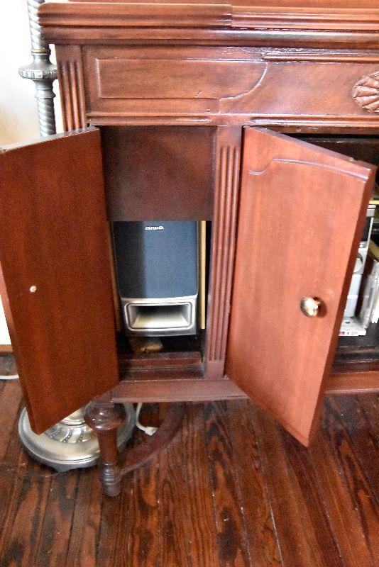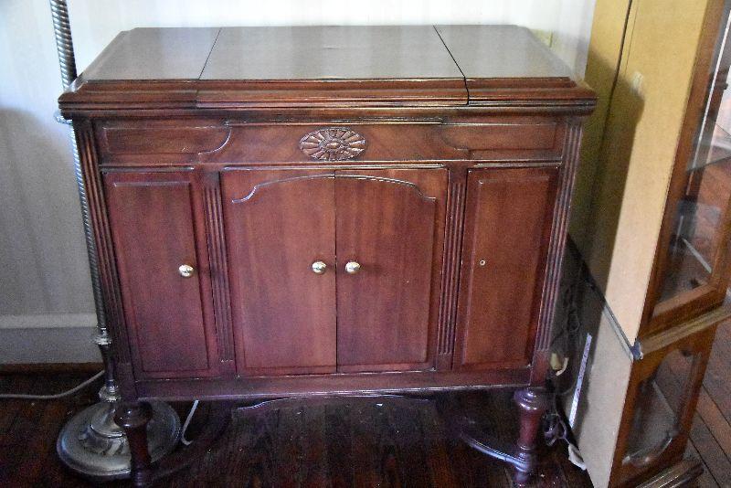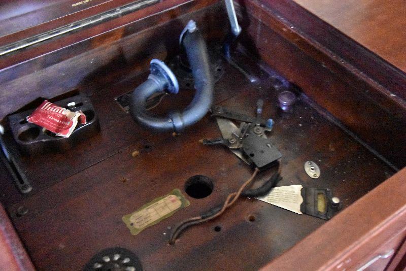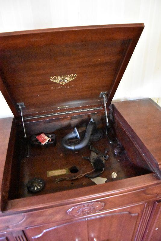 L Lot 101: Vintage Victrola Stereo Cabinet with Contents