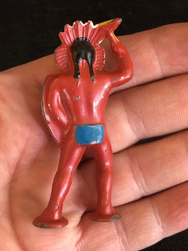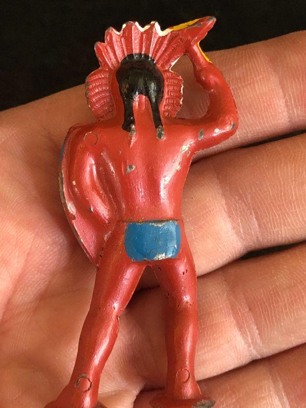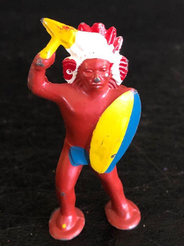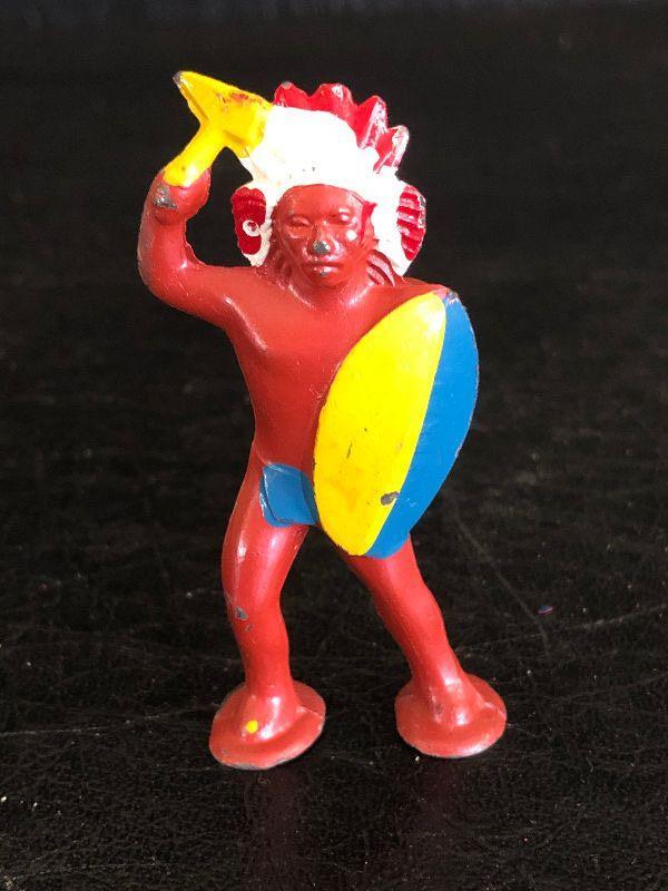 Vintage lead toy Indian with hatchet and shield. Very good condition.