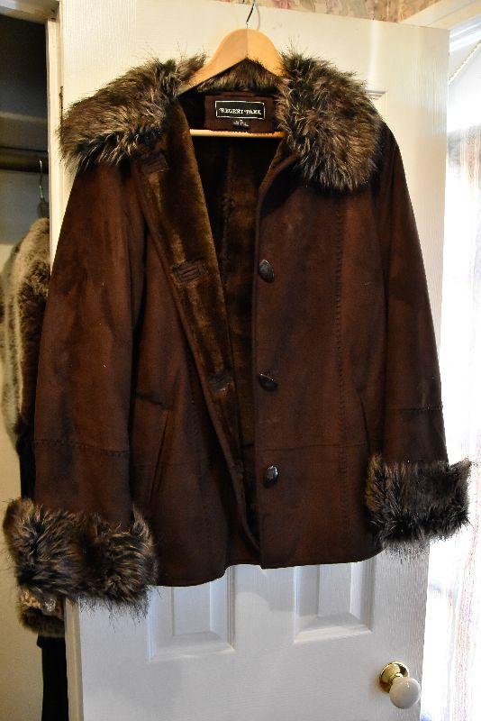 L Lot 112: Women's Coat with Faux Fur Neck and Cuffs