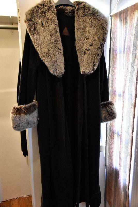 L Lot 113: Women's Long Coat with Faux Fur Neck and Cuffs