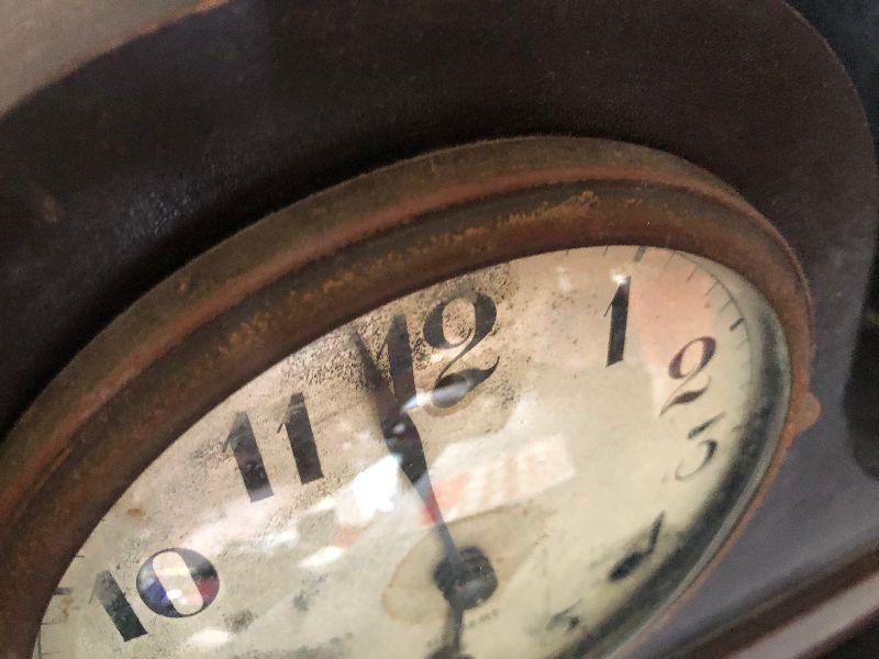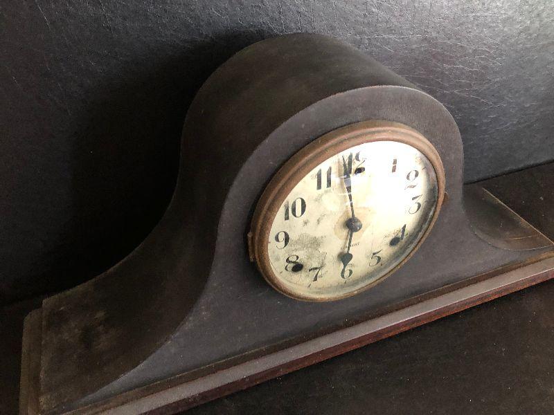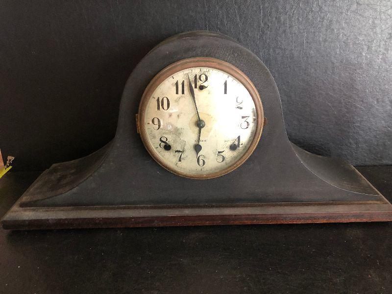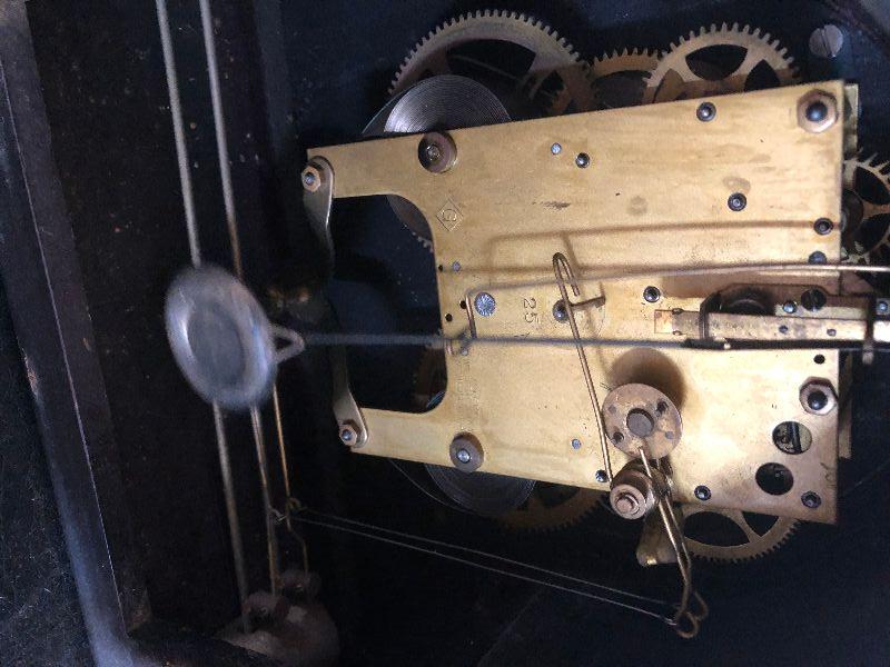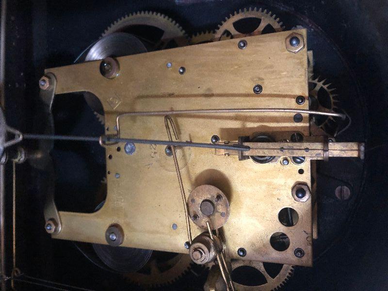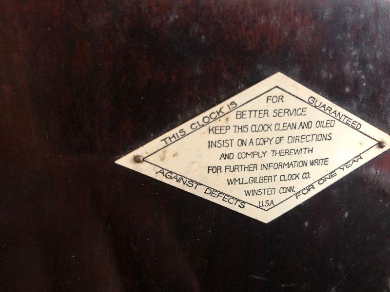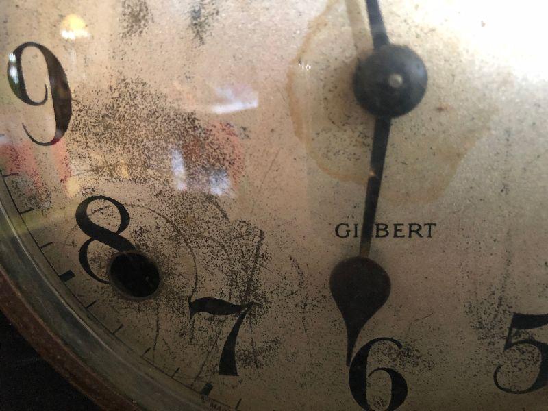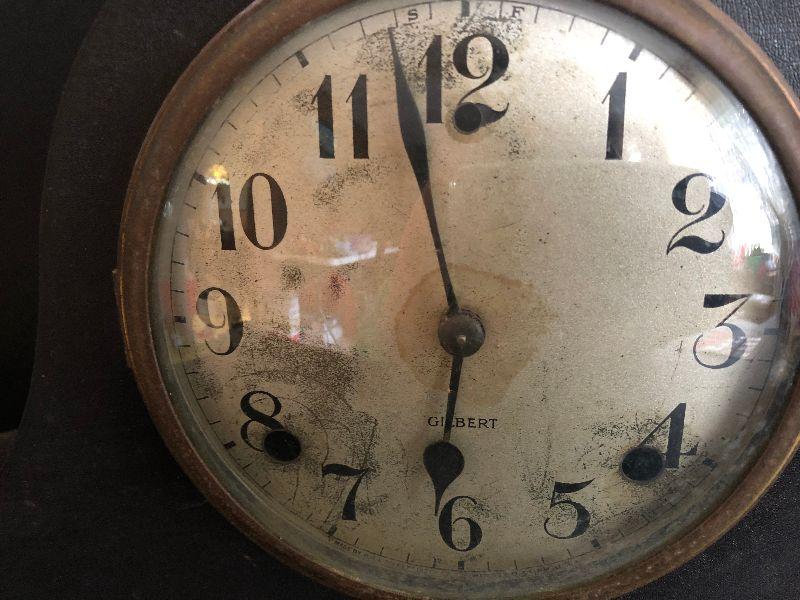 Wm. L. Gilbert mantle clock, some finish loss, and clock face needs cleaning. Untested.