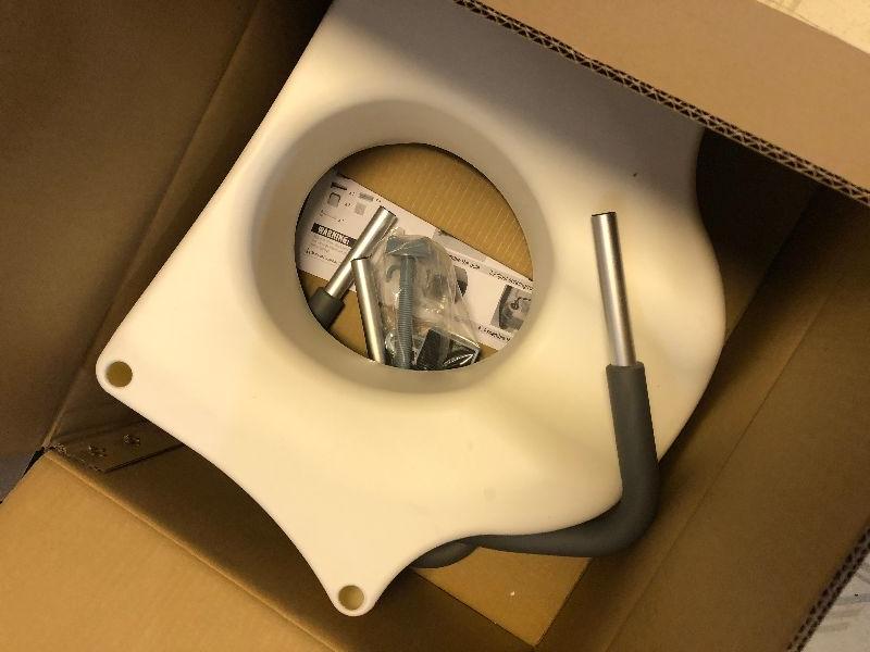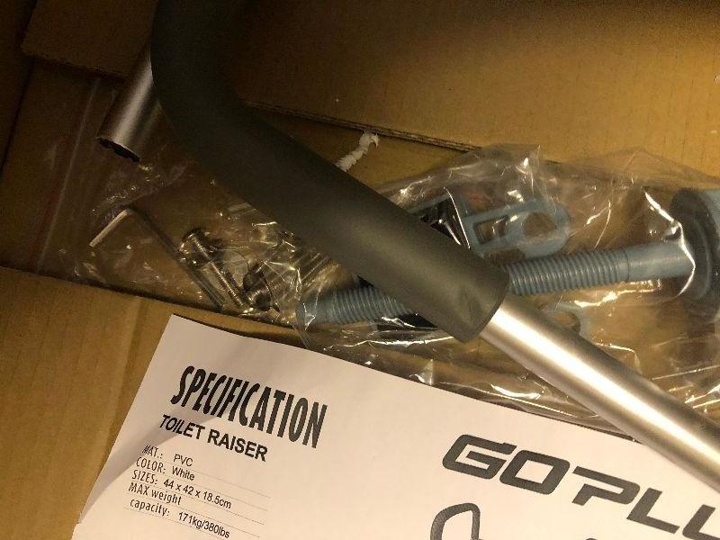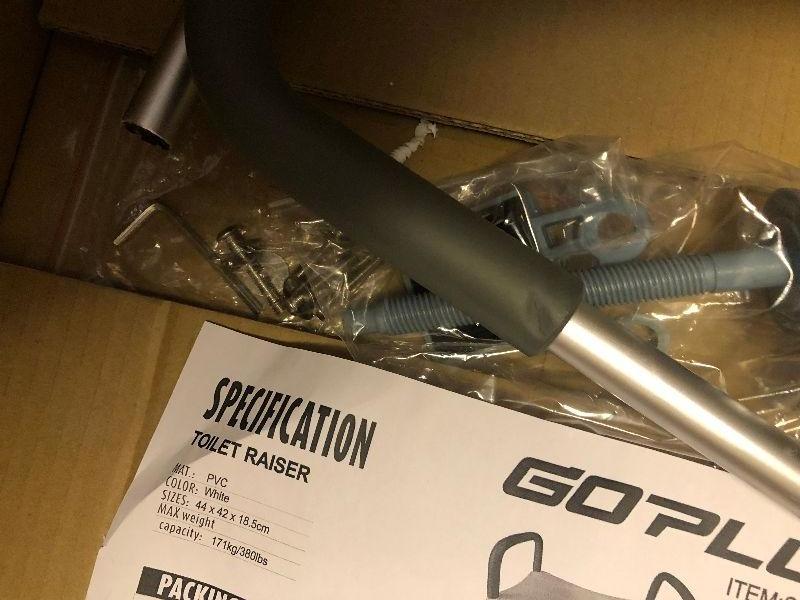 Toilet extender, new in box. Manual included. There is hardware included, but cannot guarantee all there.