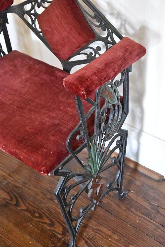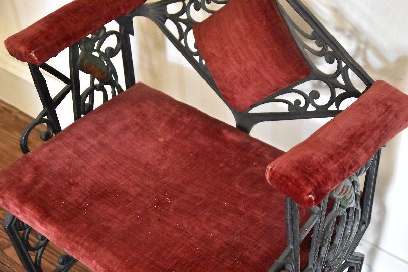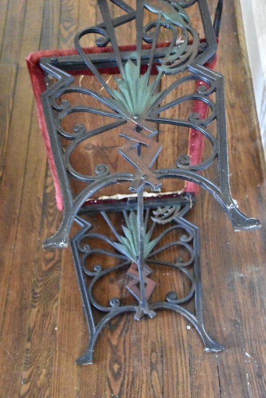 L Lot 123: Bird of Paradise Cast Iron Bench w/ Side Arms and Diamond Back