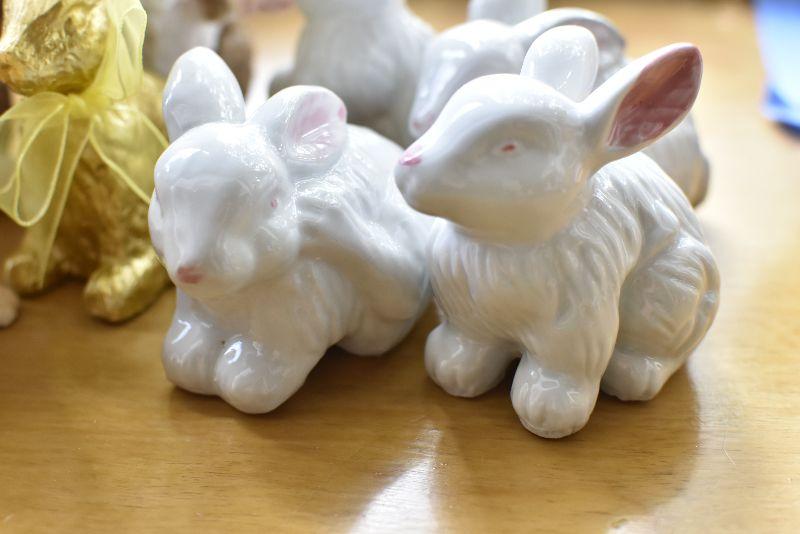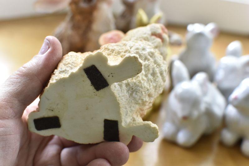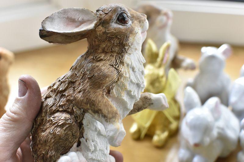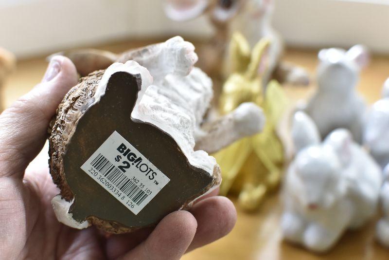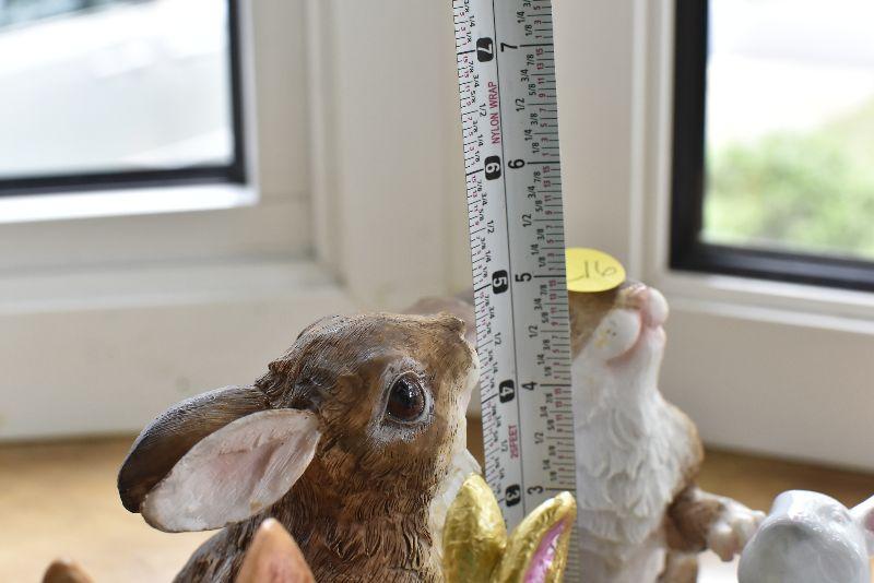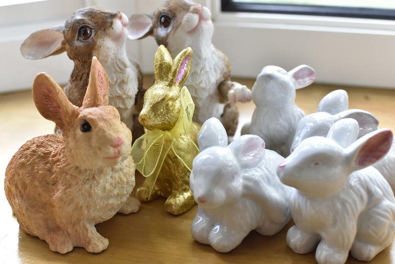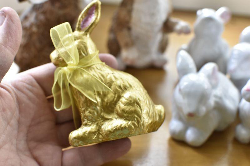 Cute bunny decor, the gold wrapped, chocolate bunny is just for decor. Bring box for moving.