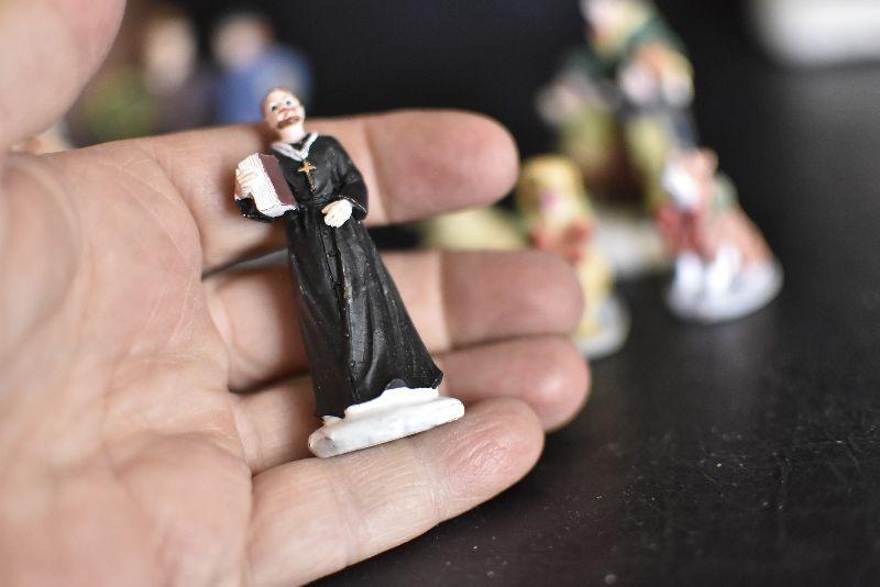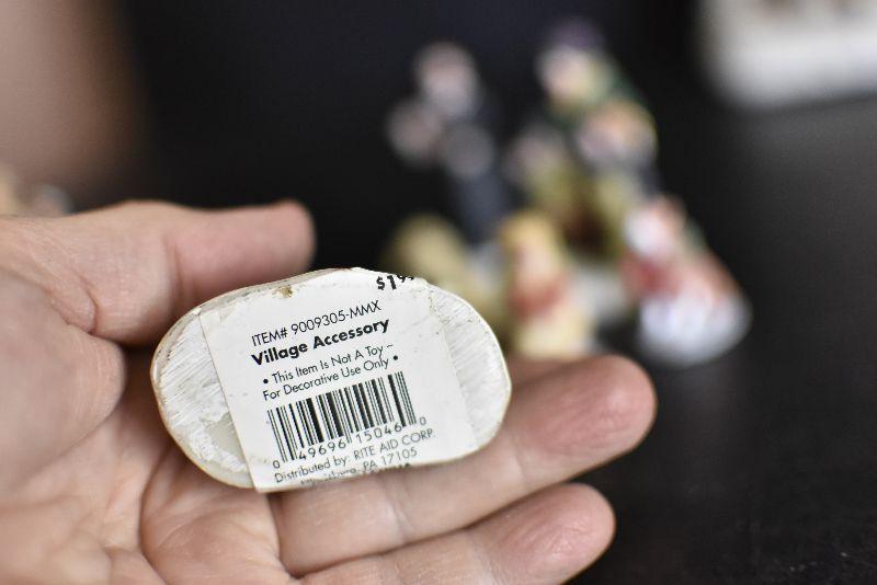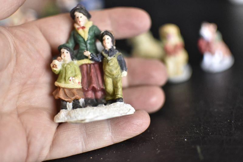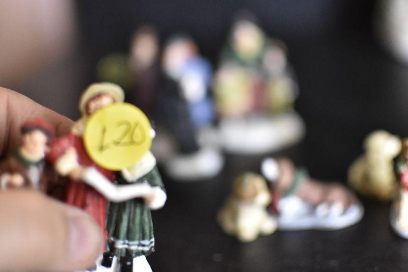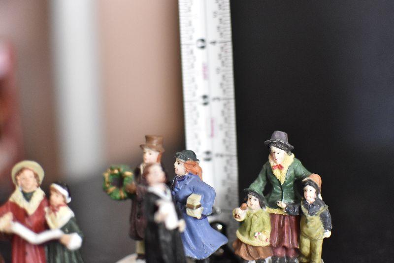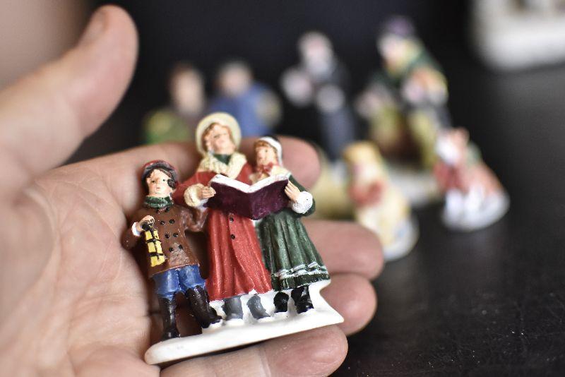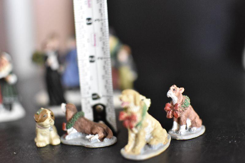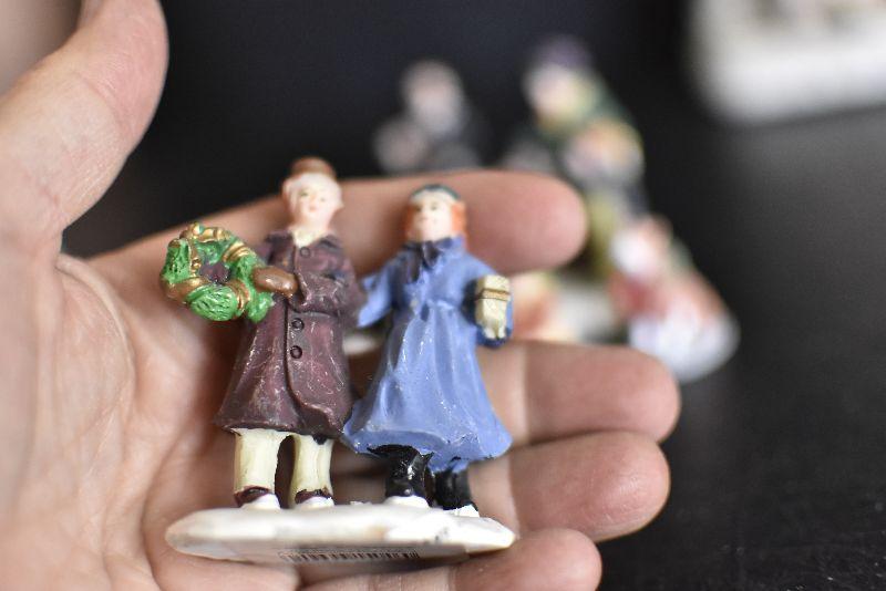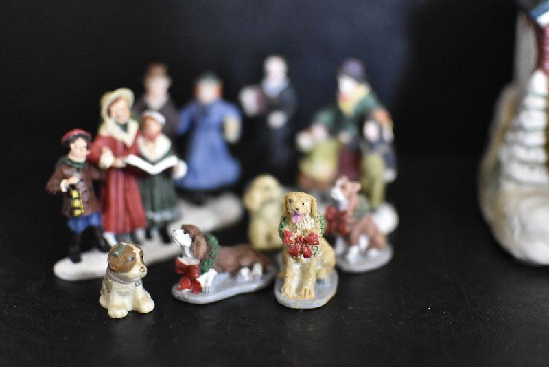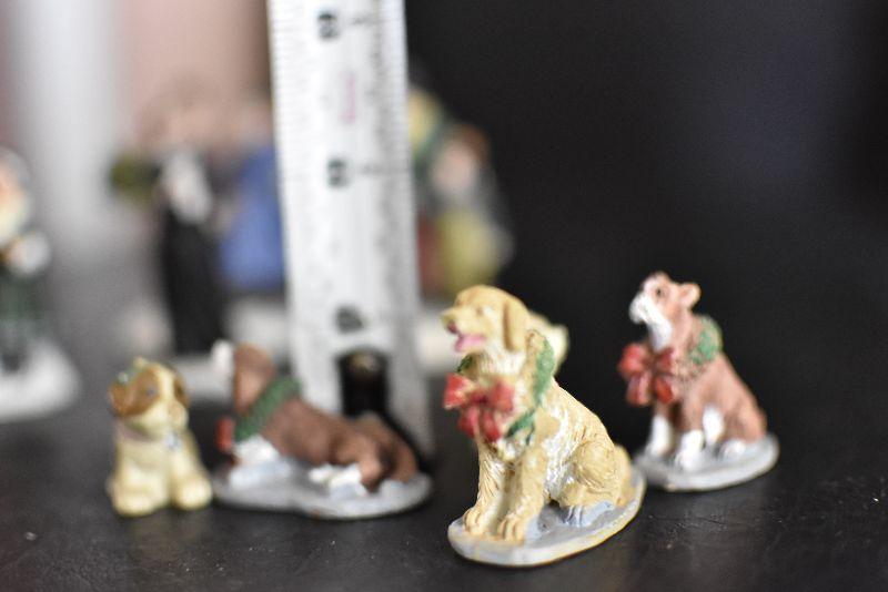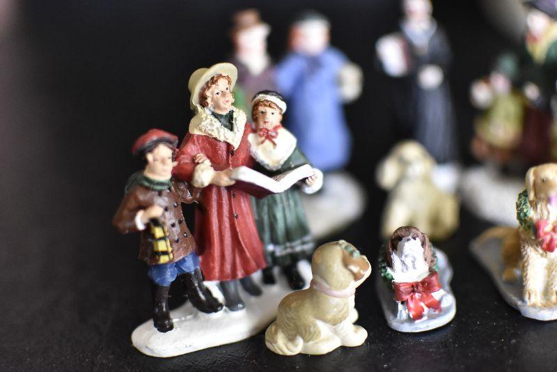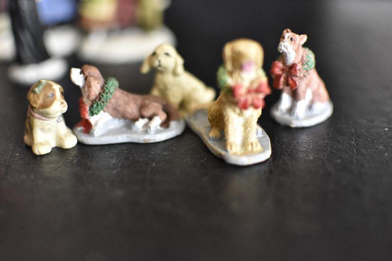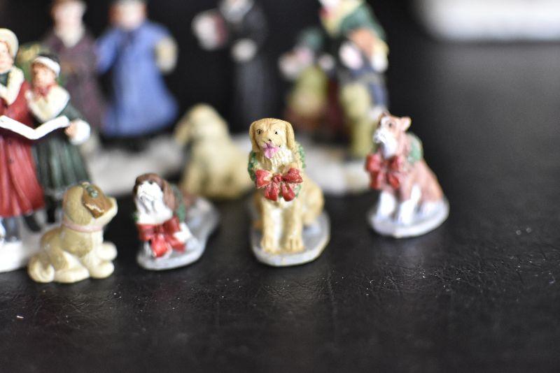 Carolers, dogs with ribbons and wreaths, and more for your Christmas Village. Bring box for moving.