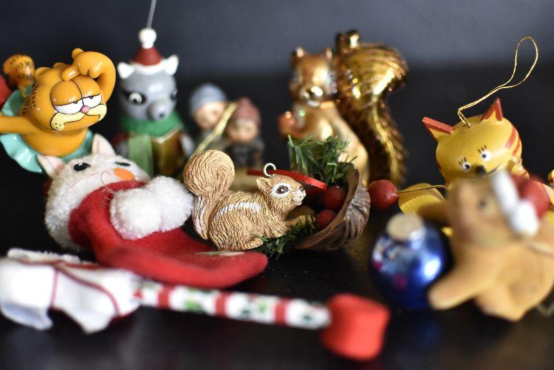Garfield the cat, racoon, squirrel and more Christmas animals.