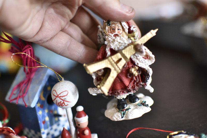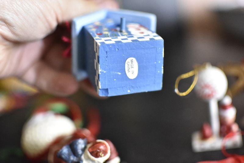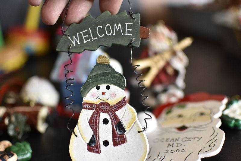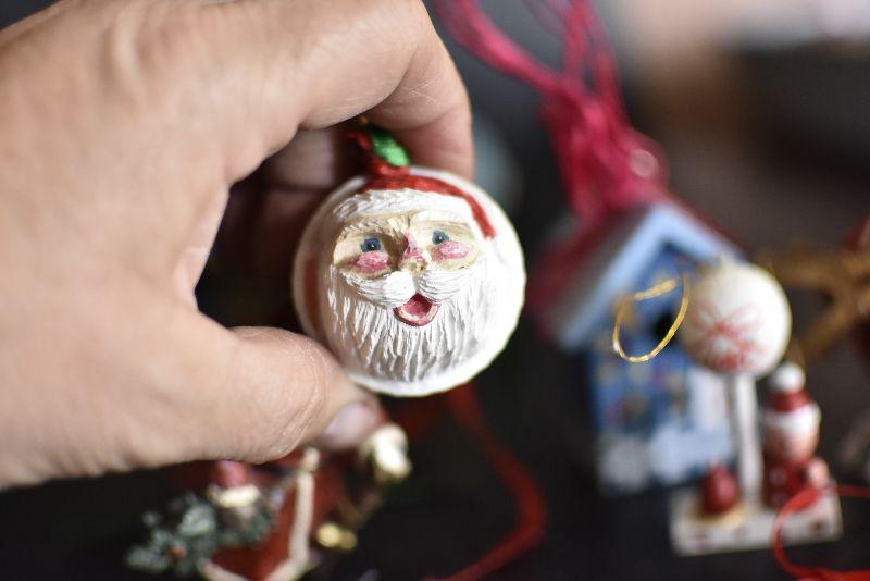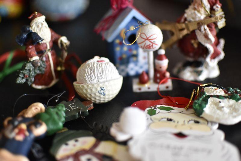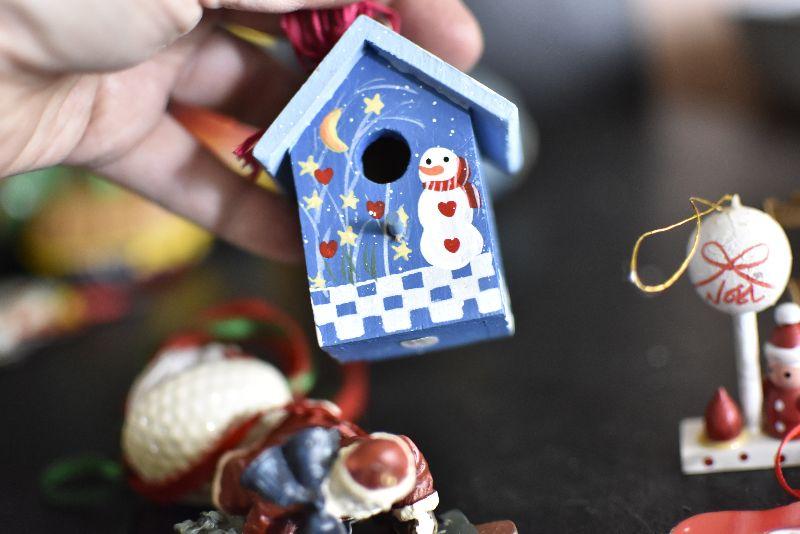 Santas, bird houses, snowman and more.