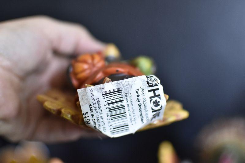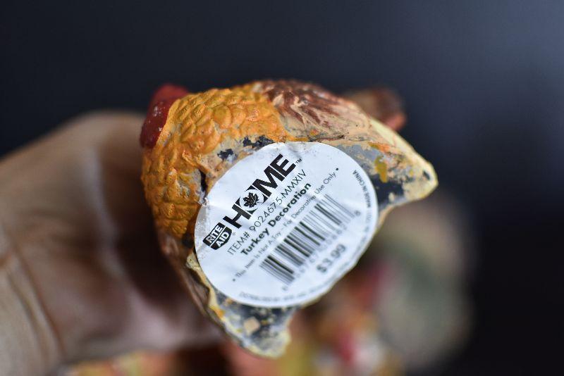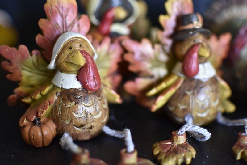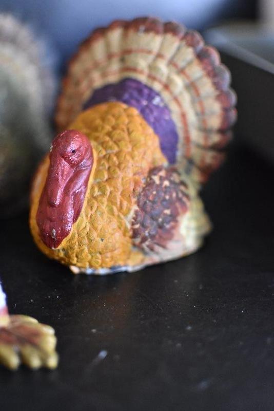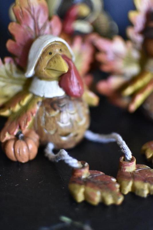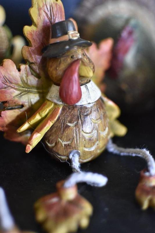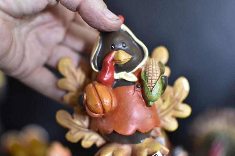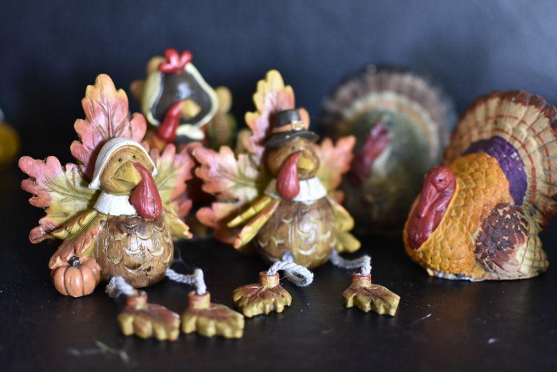 Gobble, gobble. Pilgrim turkeys to sit on your shelf, and more. Bring box for moving.