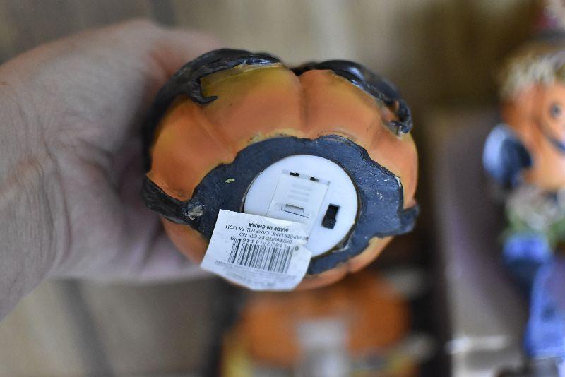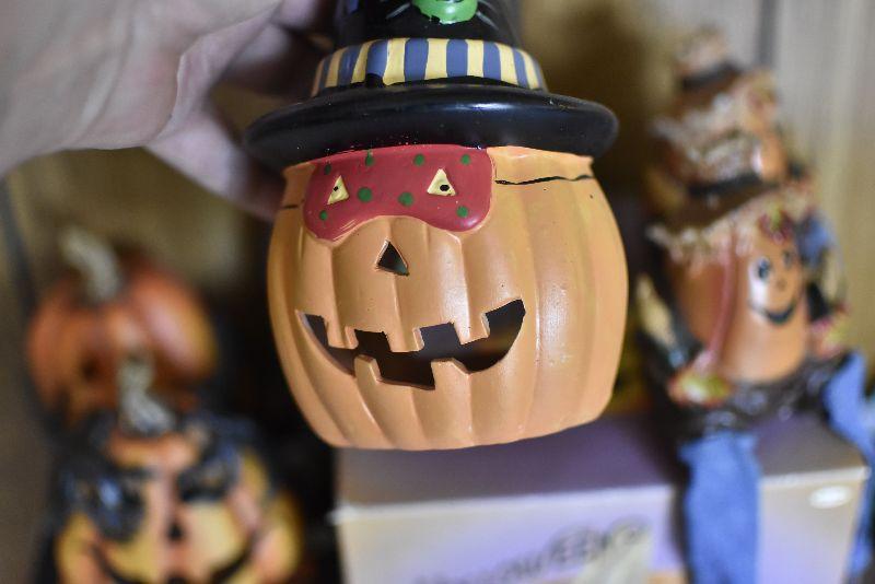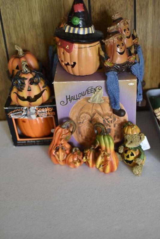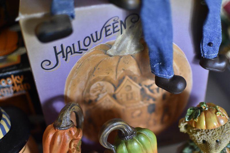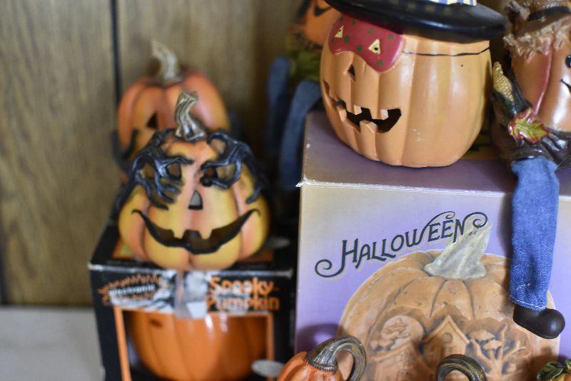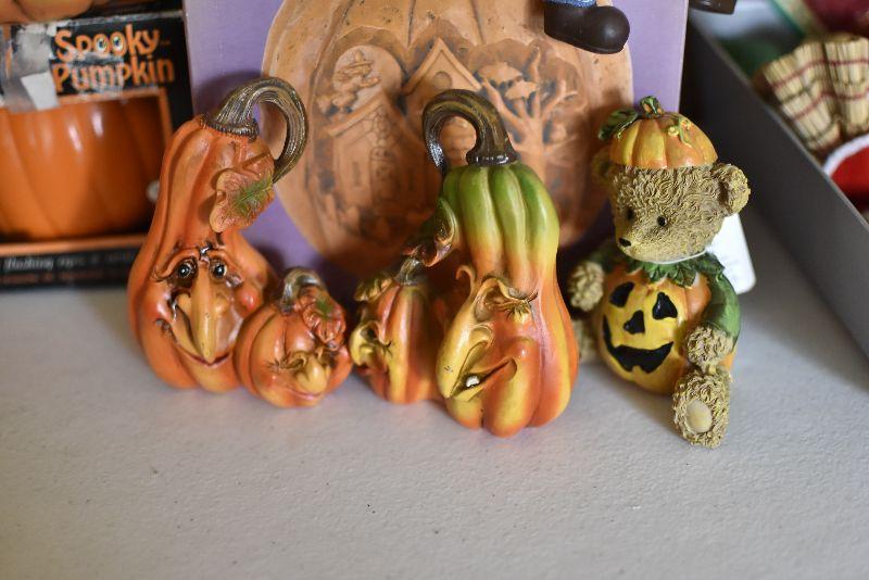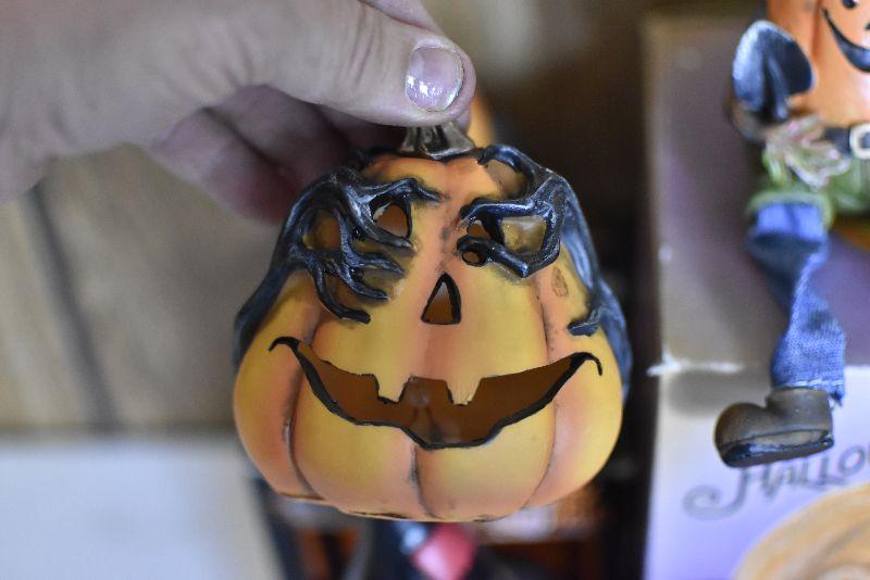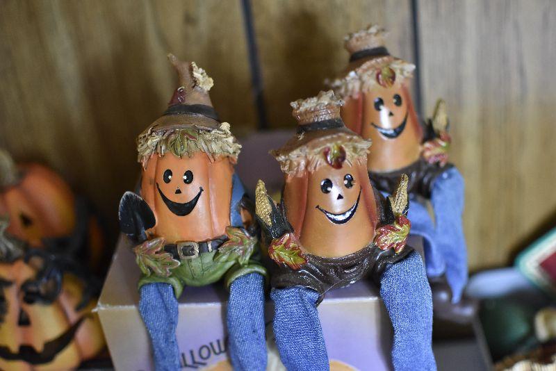 Country bumpkin pumpkins with dangling legs, light up jack o lanterns, and more. Bring box for moving.