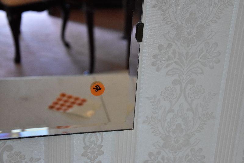 Large wall mirror with beveled edges. No damage. Must remove from wall. Bring help to move.