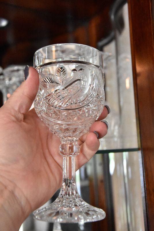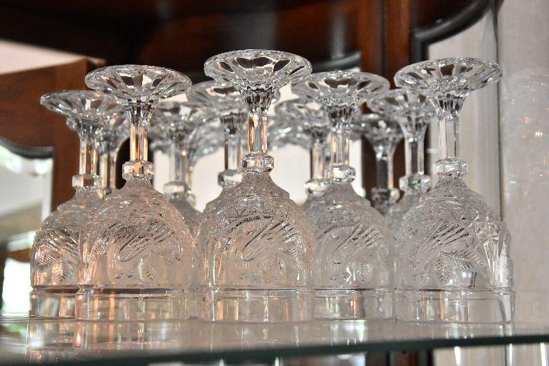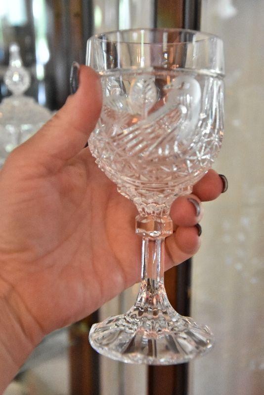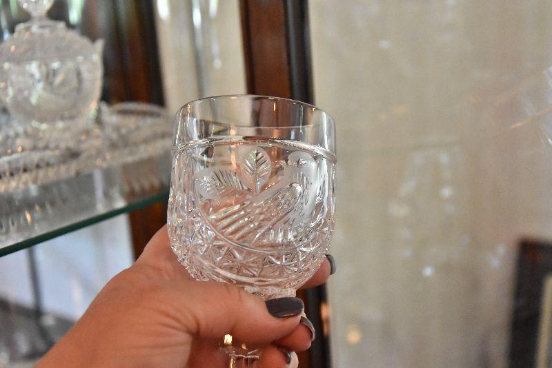 Beautiful crystal stemware by Hofbauer, with birds. No chips. Bring box for moving.