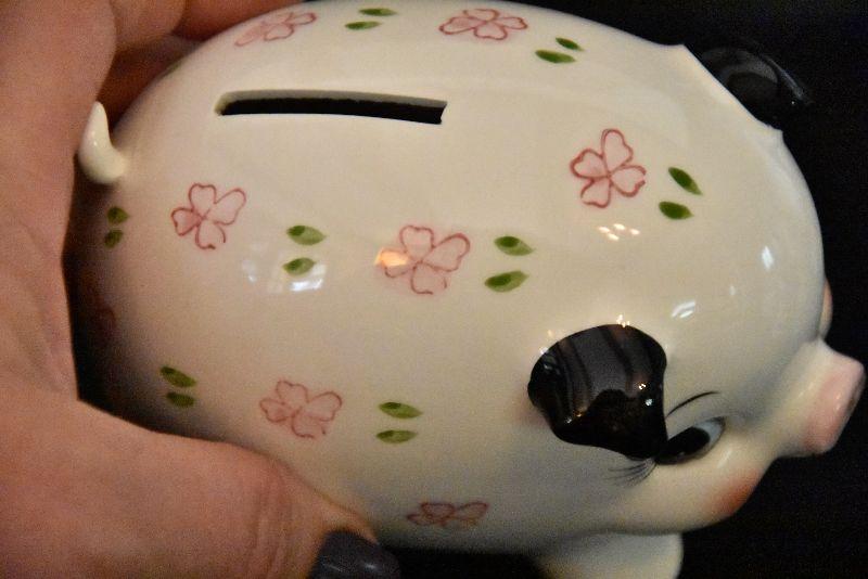 Pretty piggy bank, but he is empty. Take him home and fill him up.