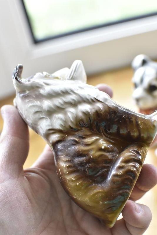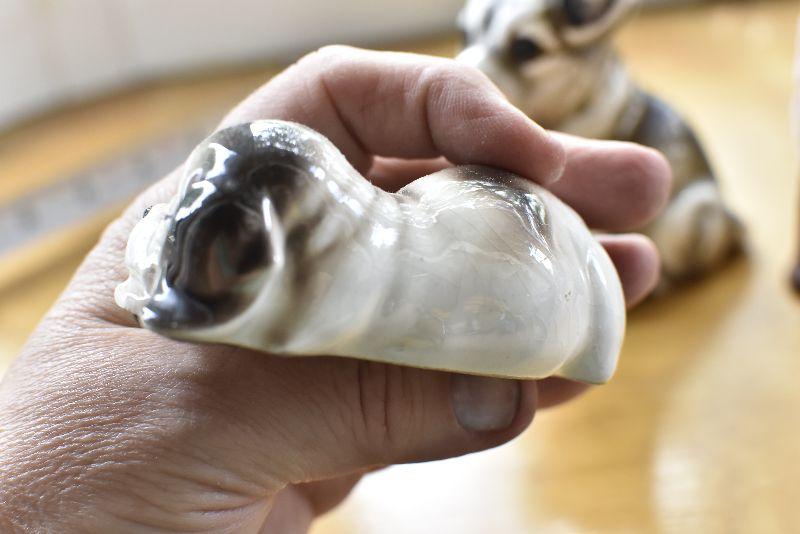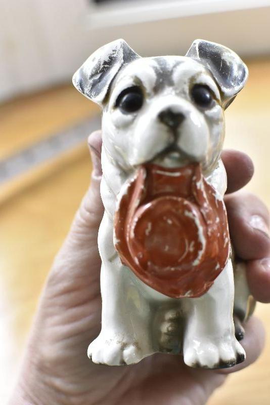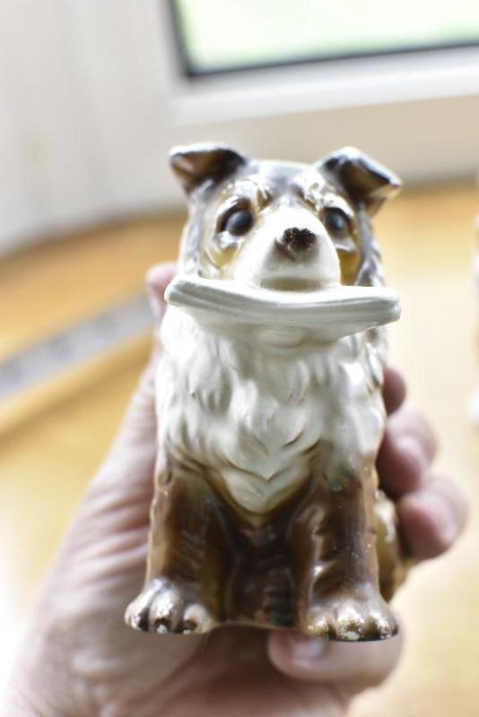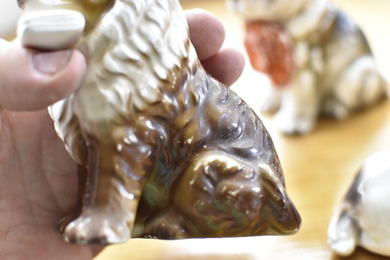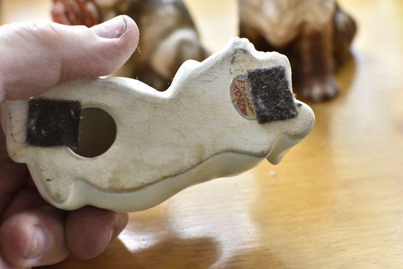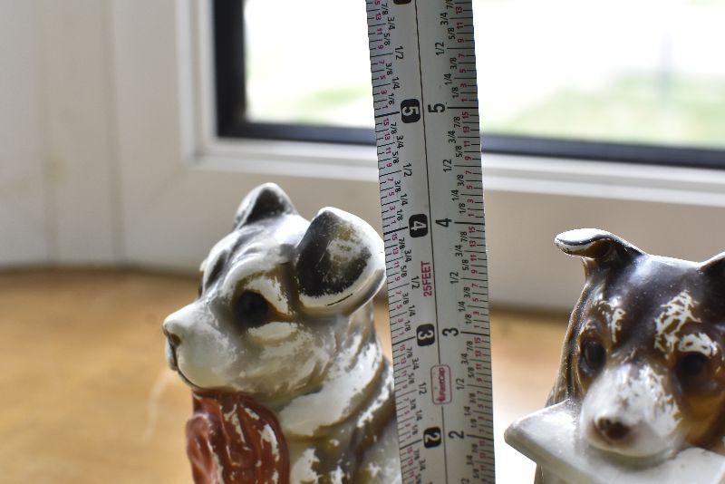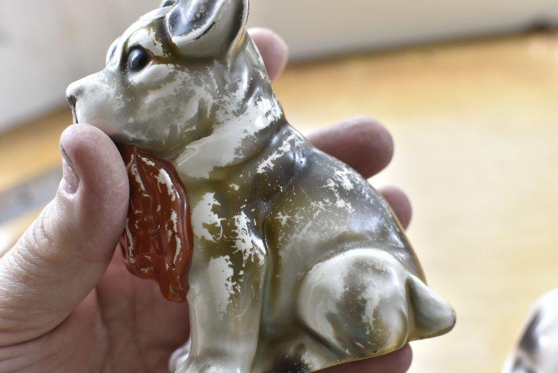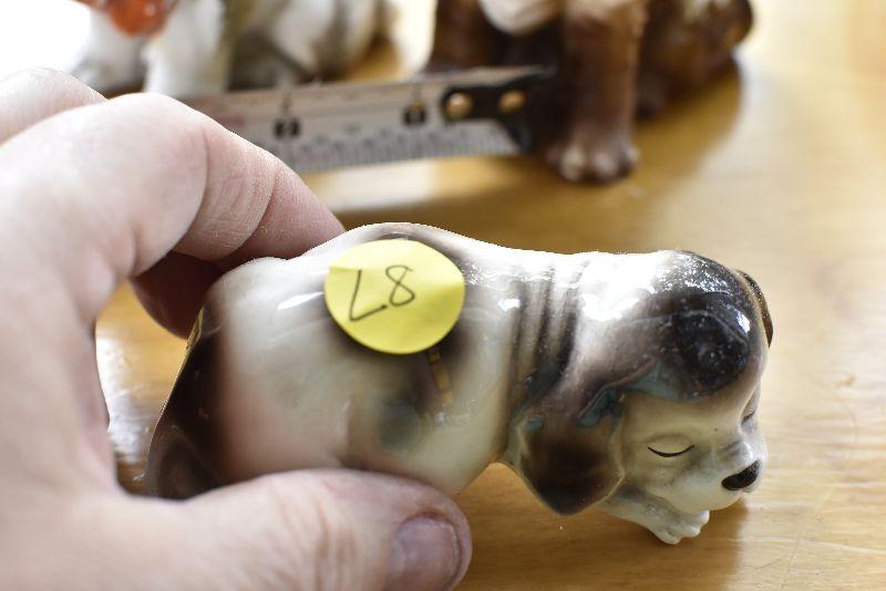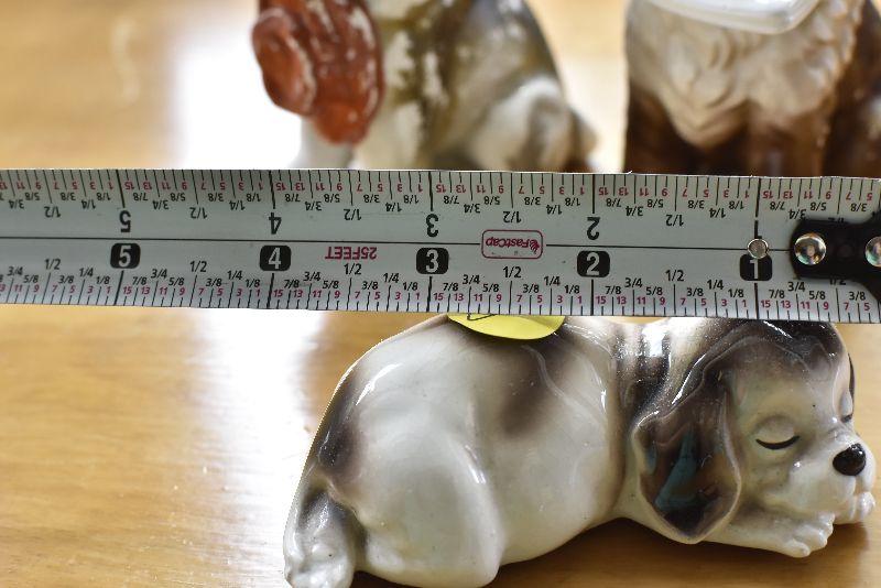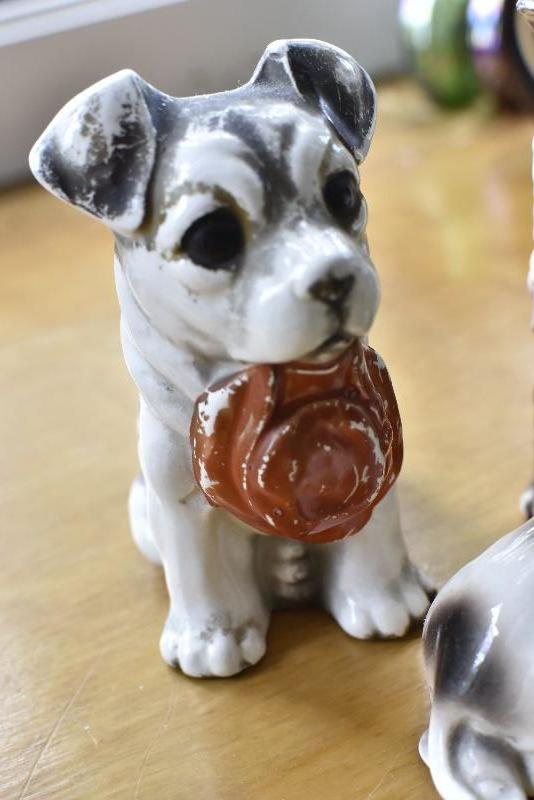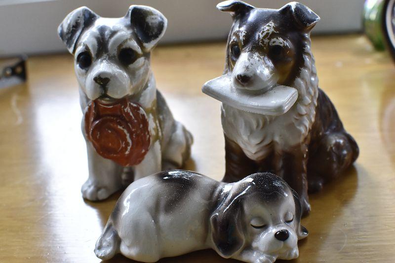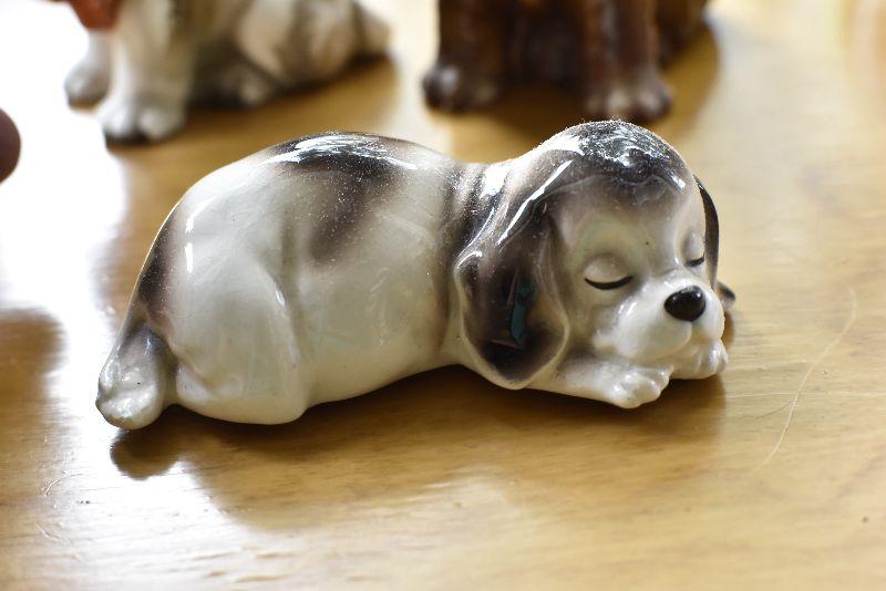 Sleeping puppy by Enesco and two dogs fetching things. Wear noted.