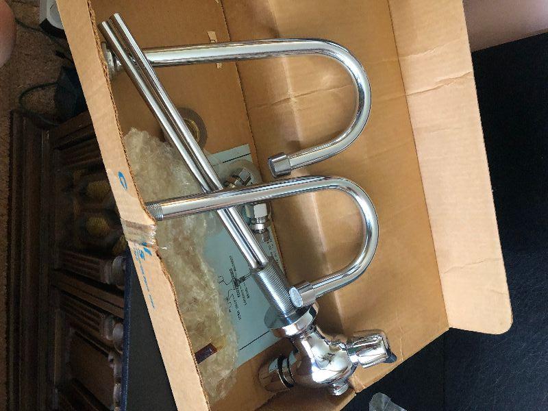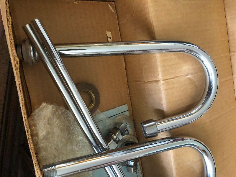 New in box, chrome plated faucet.