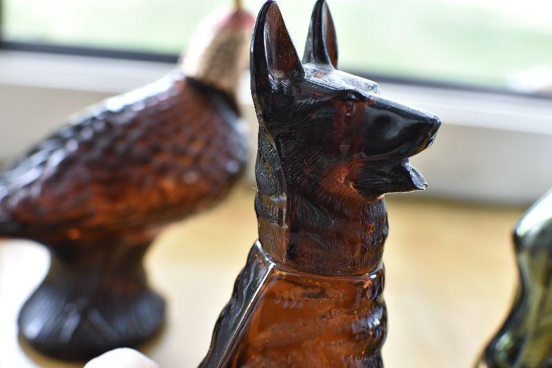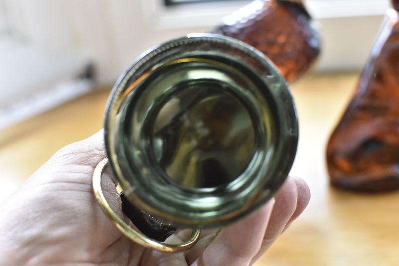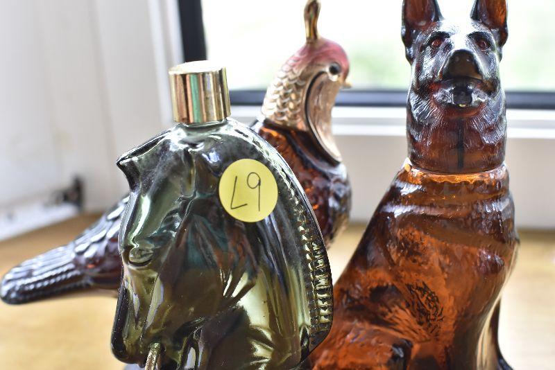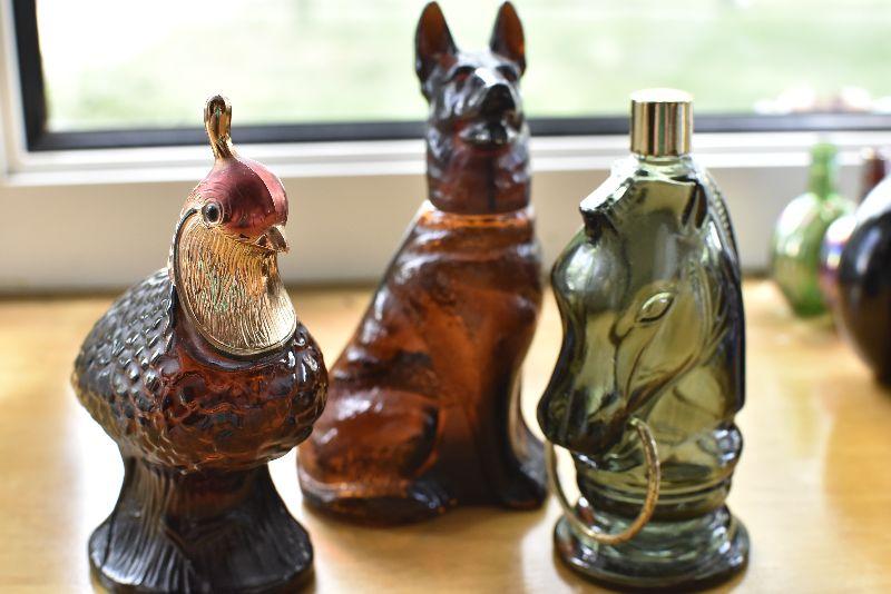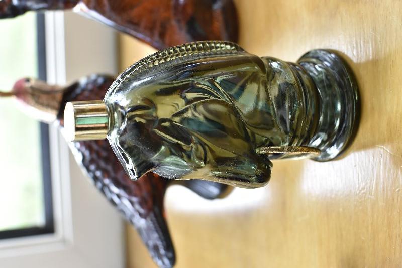 Decanters for cologne and aftershave. The horsehead has no markings.