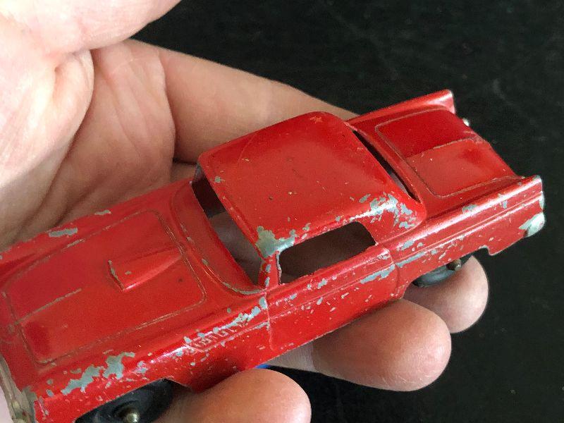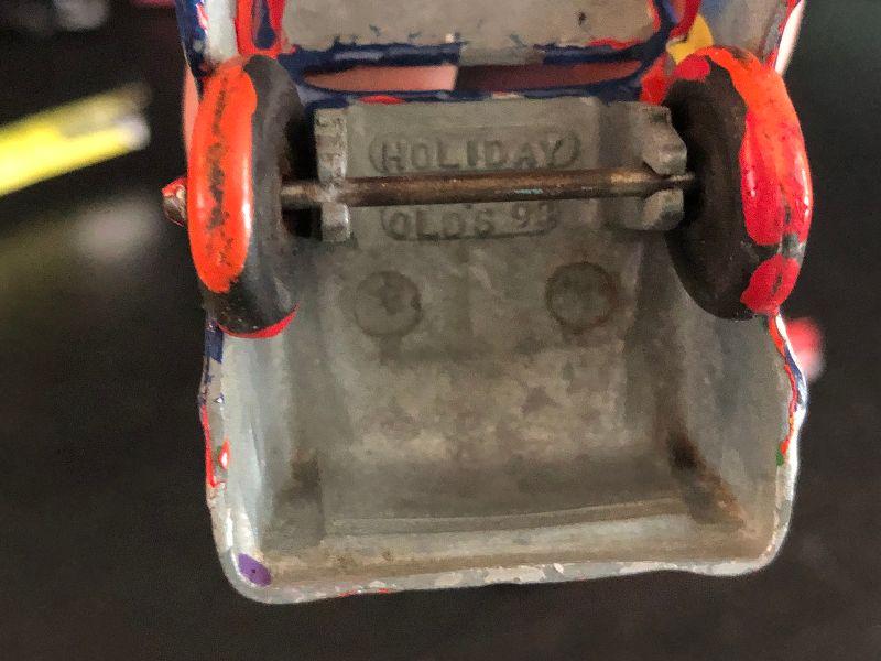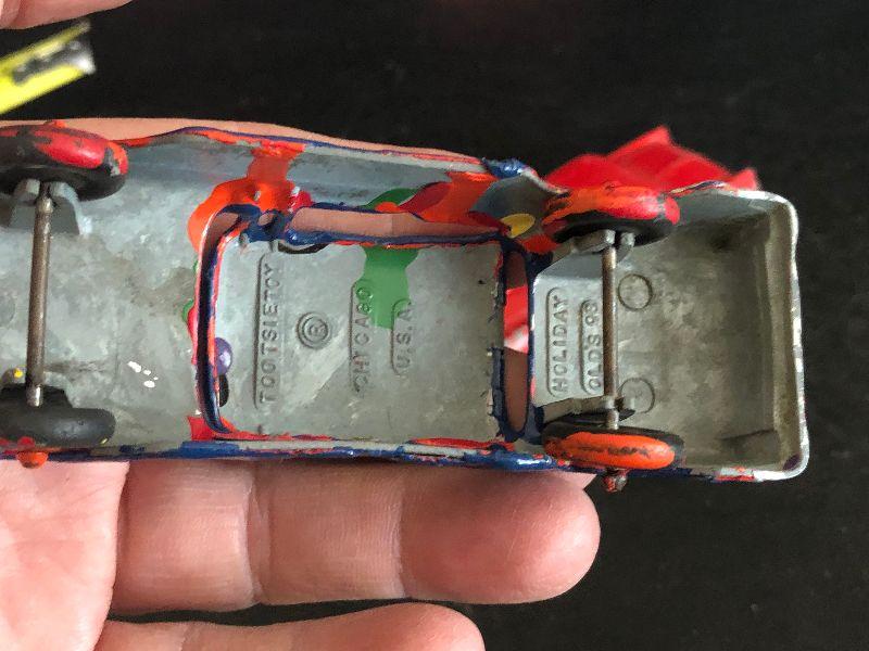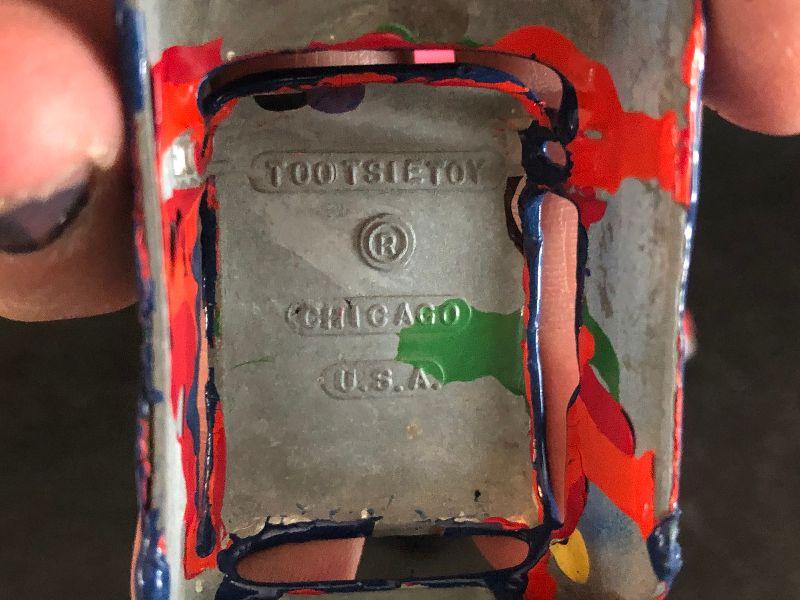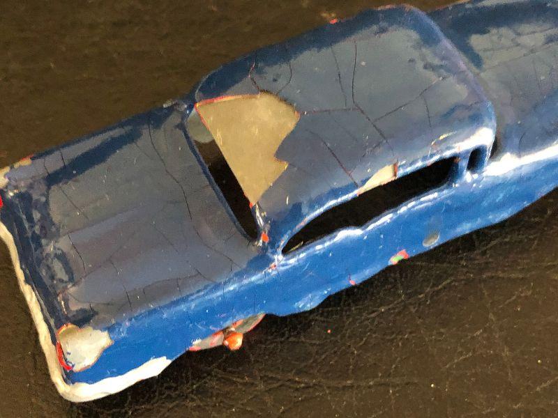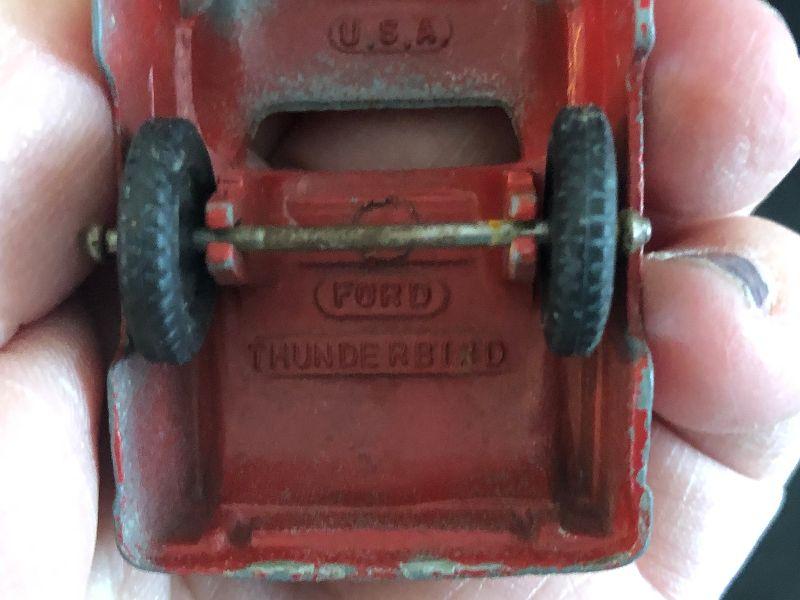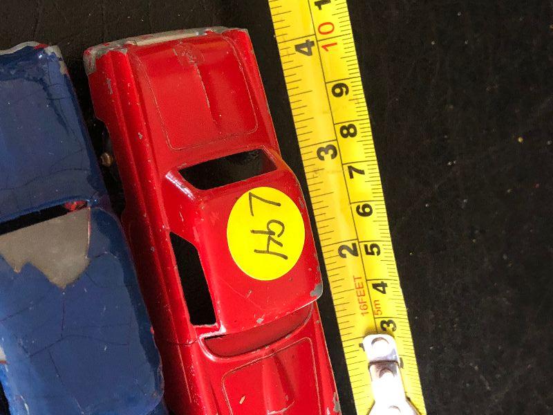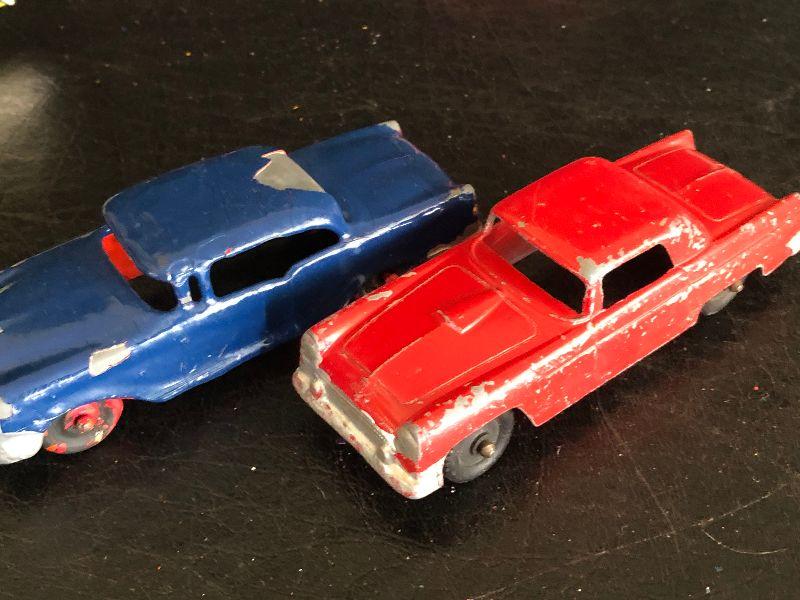 Thunderbird and an Oldsmobile, vintage metal cars by Tootsie Toys.