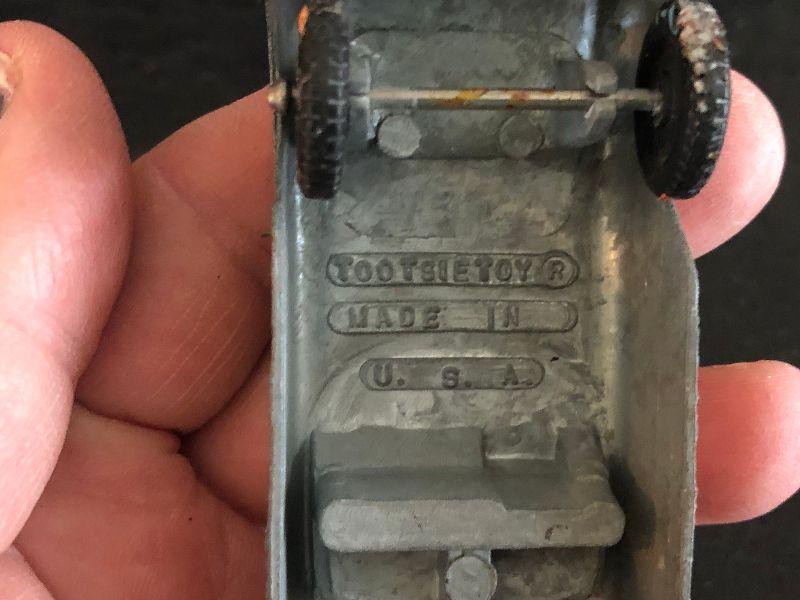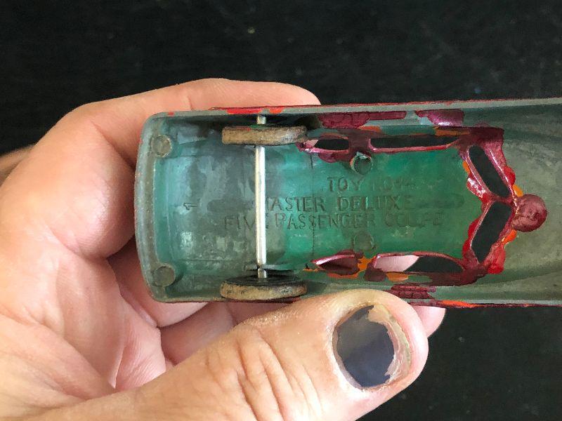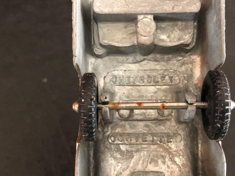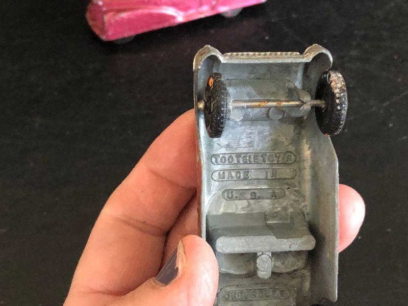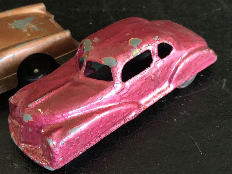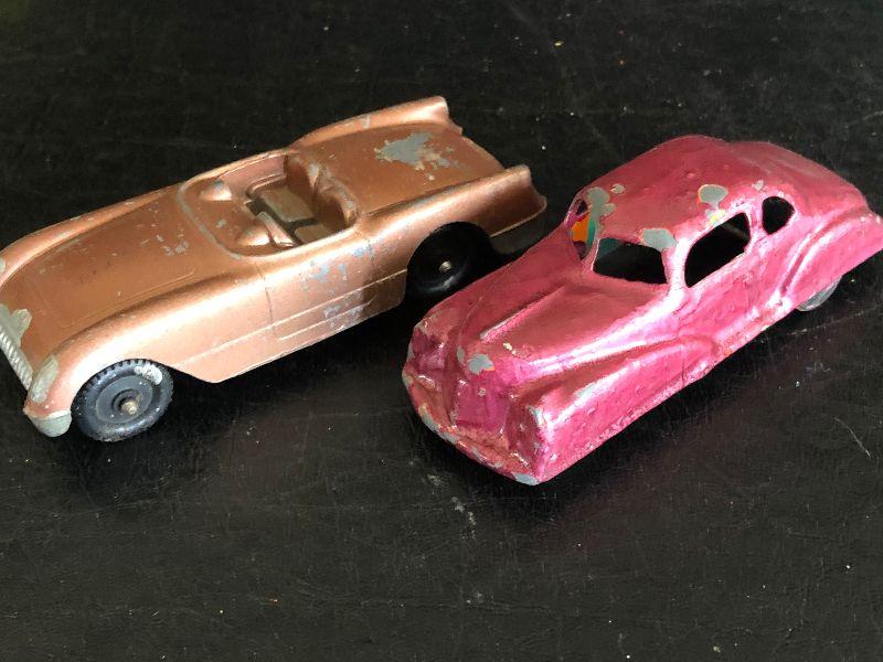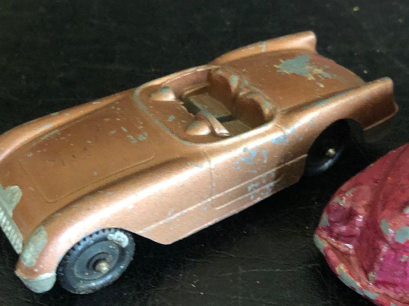 Tootsie Toy Corvette and a Tootsie Toy Coupe. Paint loss.