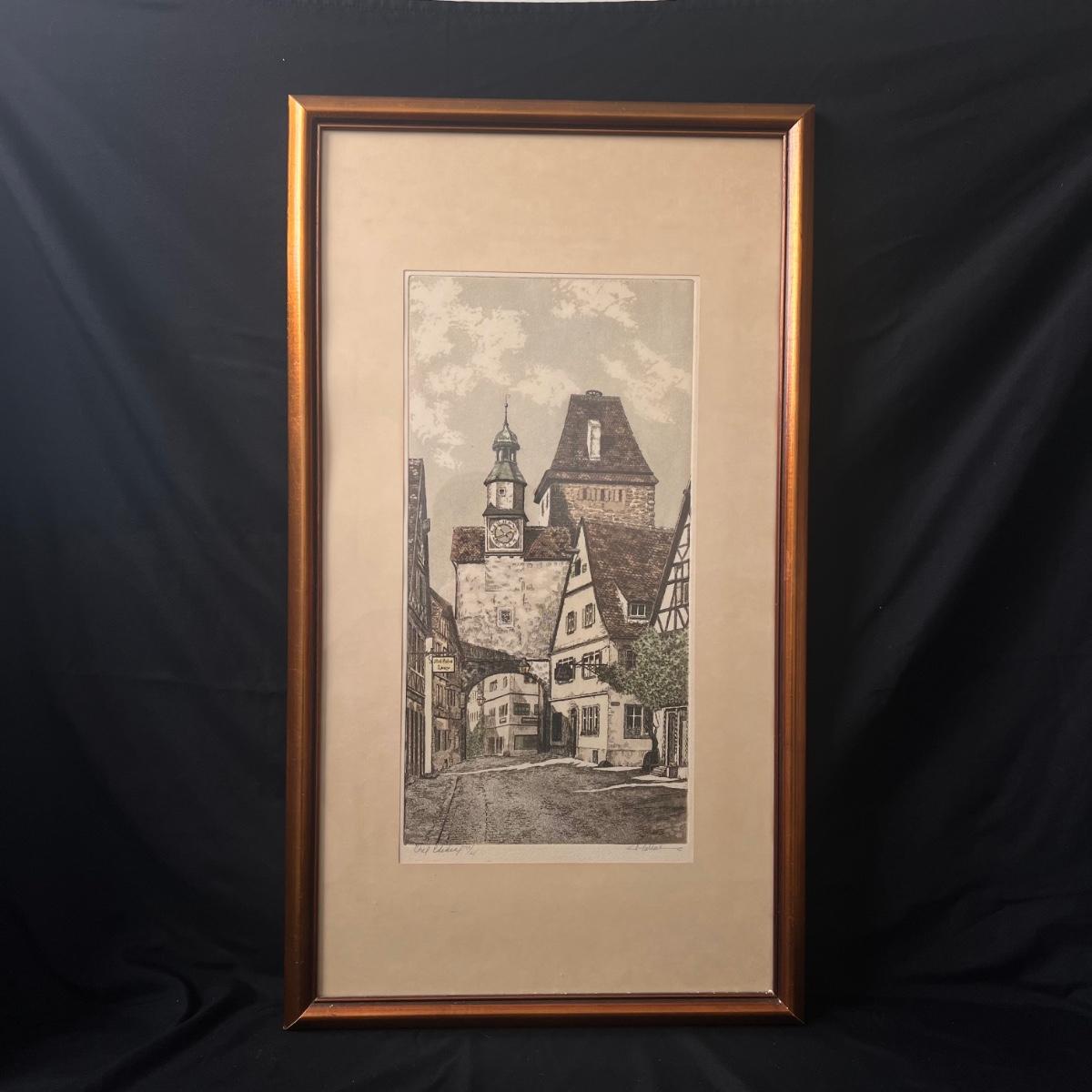 This art print appears to be signed by L. Mariae. It is double matted and placed in a wooden frame with a glass top. It measures 15.5” x 27.5”H. Shipping available. Shipping can be costly. We suggest contacting our preferred local shipping provider, Postage Express, with dimensions and getting an estimate before bidding: (828) 255-9250 or shipping@postageexpressnc.com.
