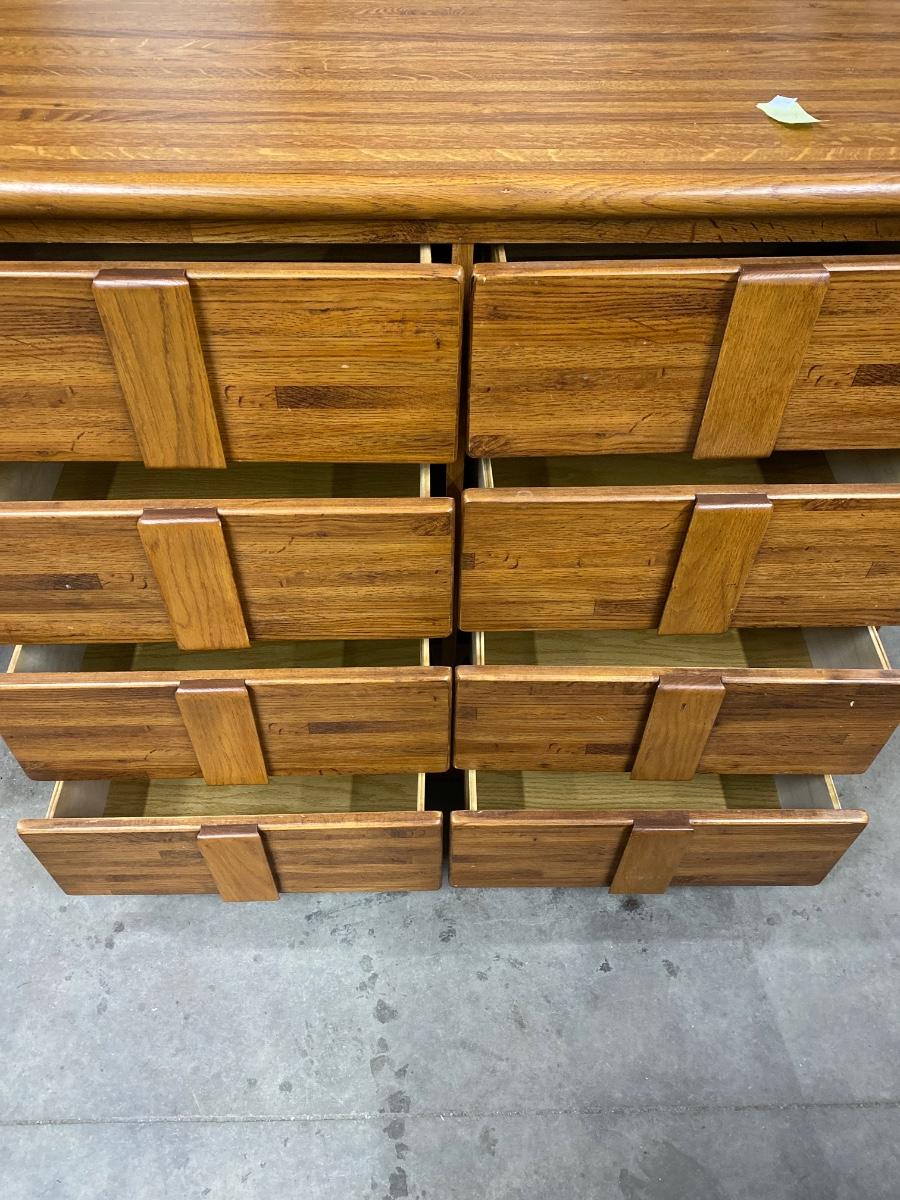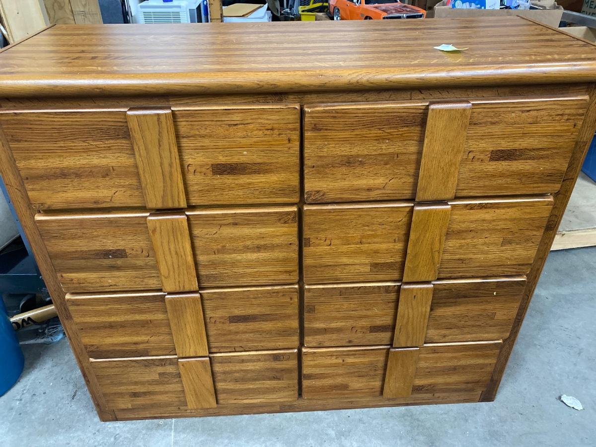 L1 Eight drawer dresser, 47 inches wide, 18 1/4 inches deep, 38 1/2 inches tall.