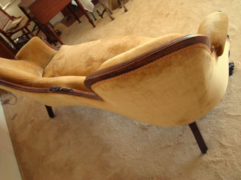 Fantastic piece of antique parlor furniture that measures 70'' wide at the arms and the the highest point of the back is 36'' tall. Please note the white area of the seat is not a stain, just the way the fabric is being hit by the light.