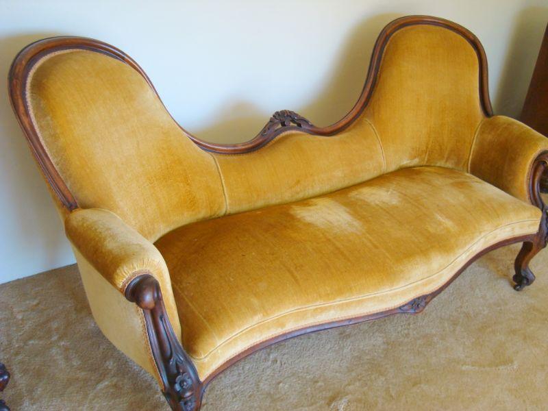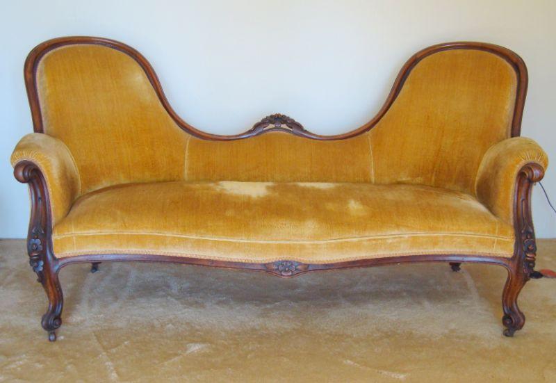 L102 - Antique Mustard Double Spoonback Parlor Sofa